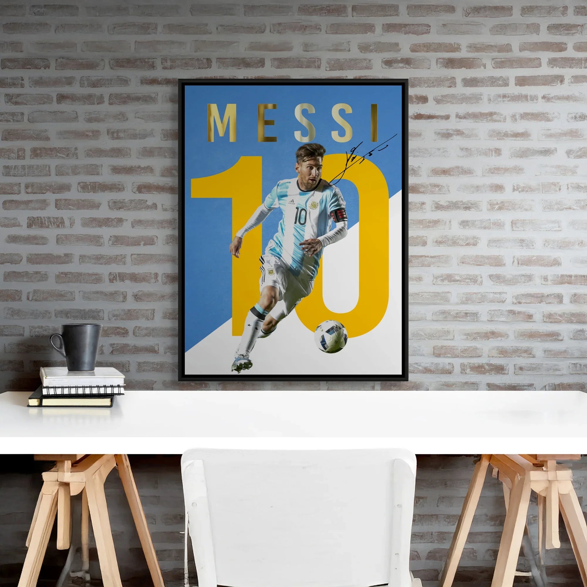 احتفل بعظمة ليونيل ميسي مع هذه اللوحة الجدارية الرائعة، المُزينة بورق معدني حقيقي على شكل أوراق غولف. قطعة لا غنى عنها لعشاق كرة القدم، فهي تُضفي حيويةً وإلهامًا على غرف اللعب، وغرف النوم، والمكاتب، والصالات الرياضية.