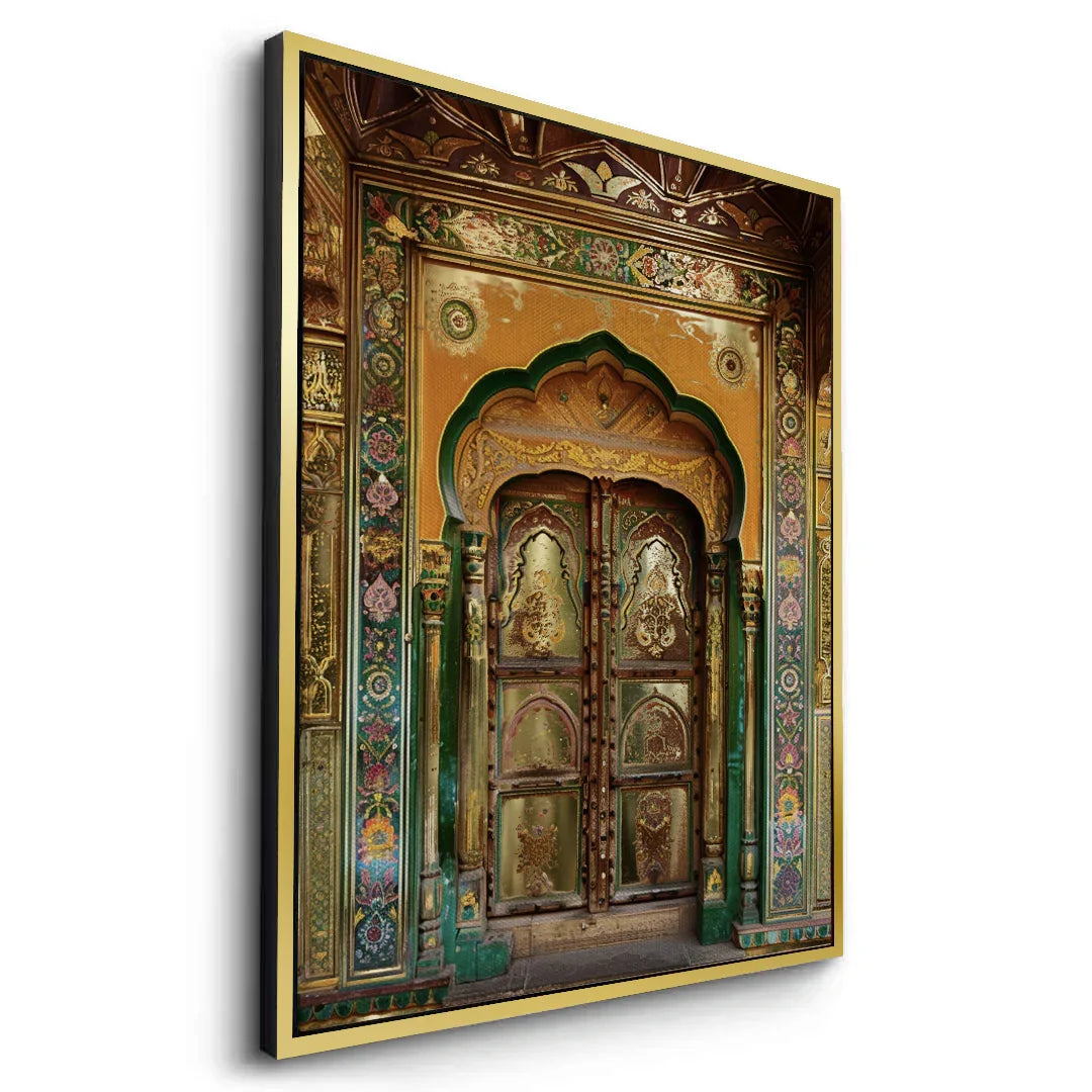 احتفل بعظمة العمارة الهندية مع هذا العمل الفني الآسر لبوابة اللوتس، المزين برقائق ذهبية حقيقية. مزيجٌ خالد من التراث الثقافي والفخامة الراقية، يضفي عمقًا وأناقةً على أي مساحة معيشة.
