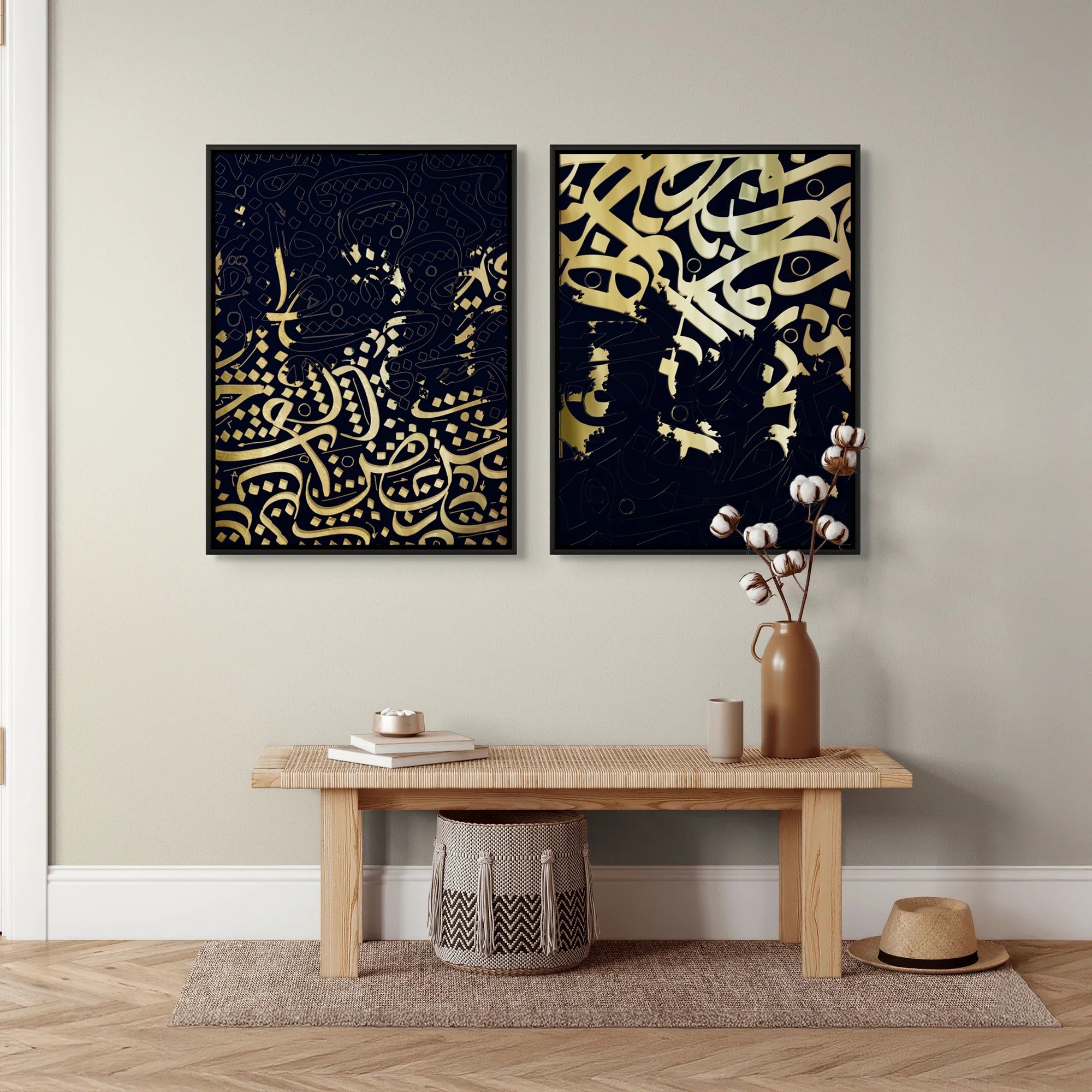 احتفل بجمال الرقص الصوفي وفن الخط العربي المتقن، معززًا بورق الذهب الحقيقي. مزيجٌ من التراث والأناقة، مثالي لأي غرفة في منزلك.