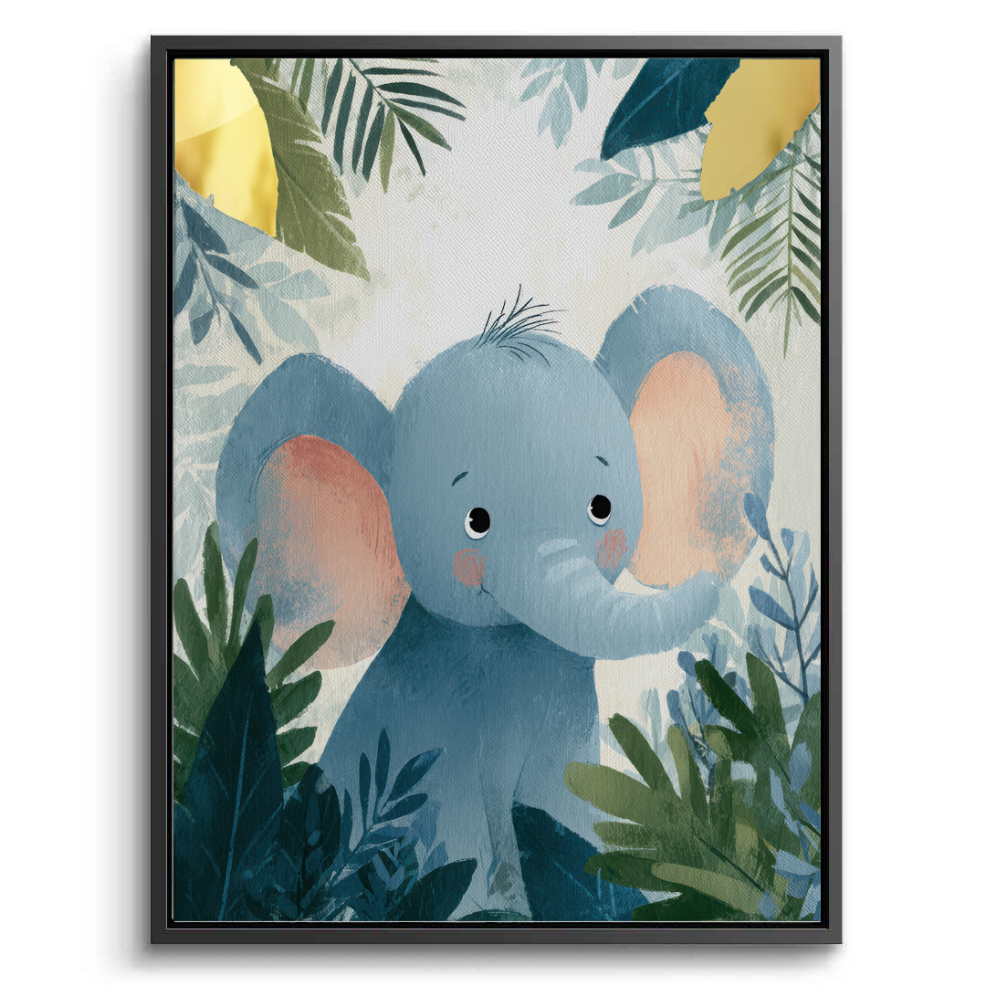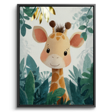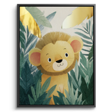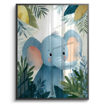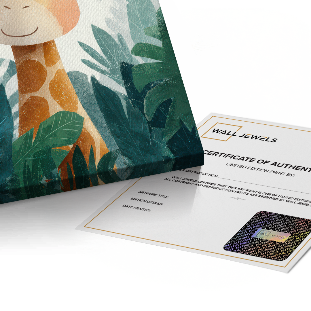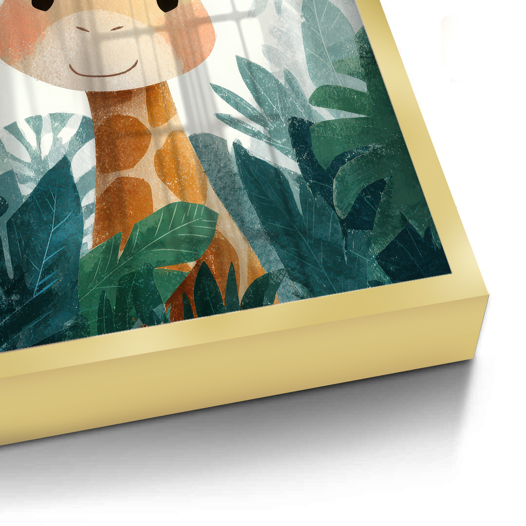 This adorable kids’ art set features a smiling giraffe, gentle elephant, and cheerful lion peeking through lush jungle leaves. With soft painted tones, it brings a playful safari charm to nurseries, playrooms, or children’s bedrooms.