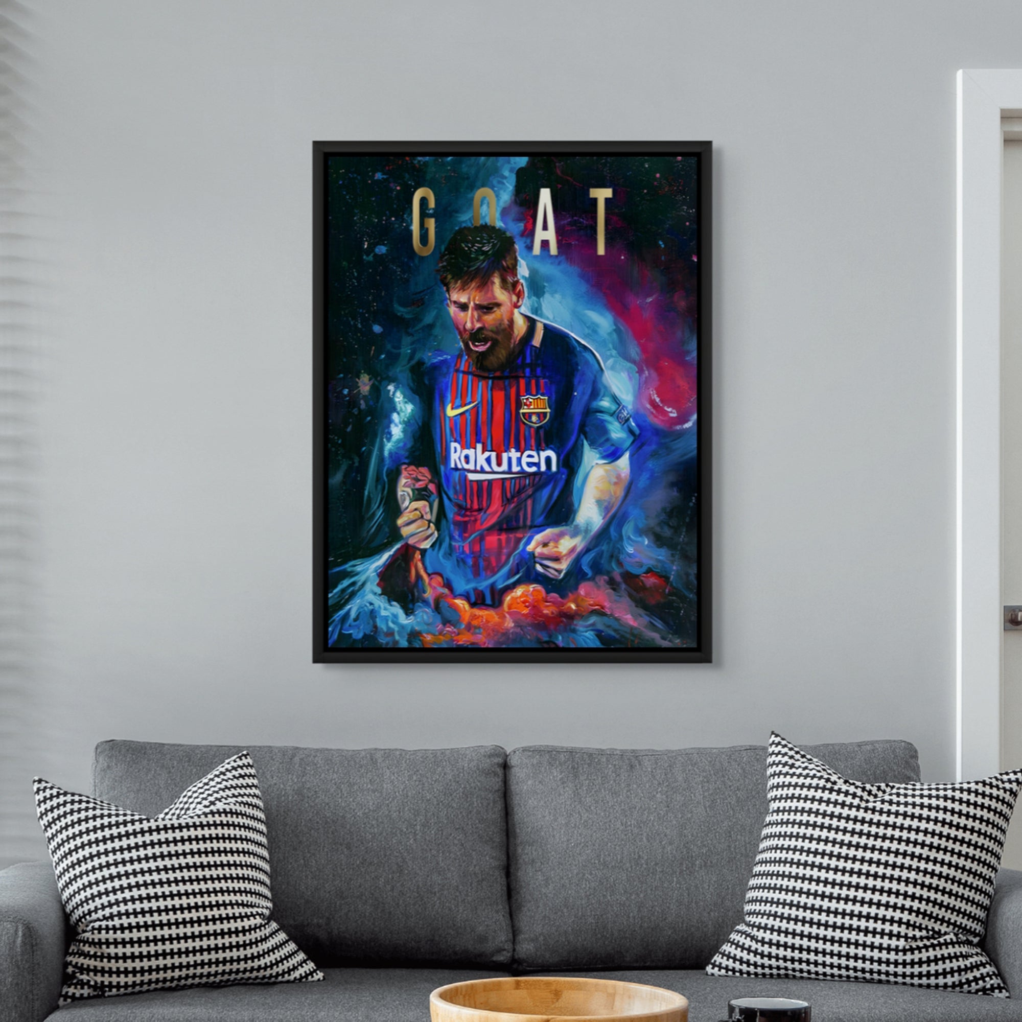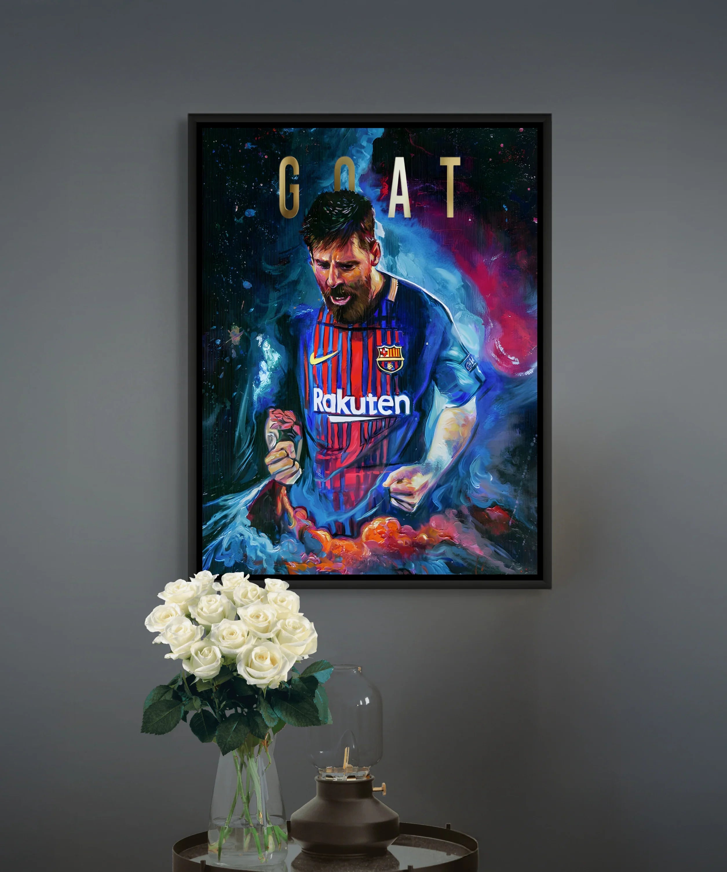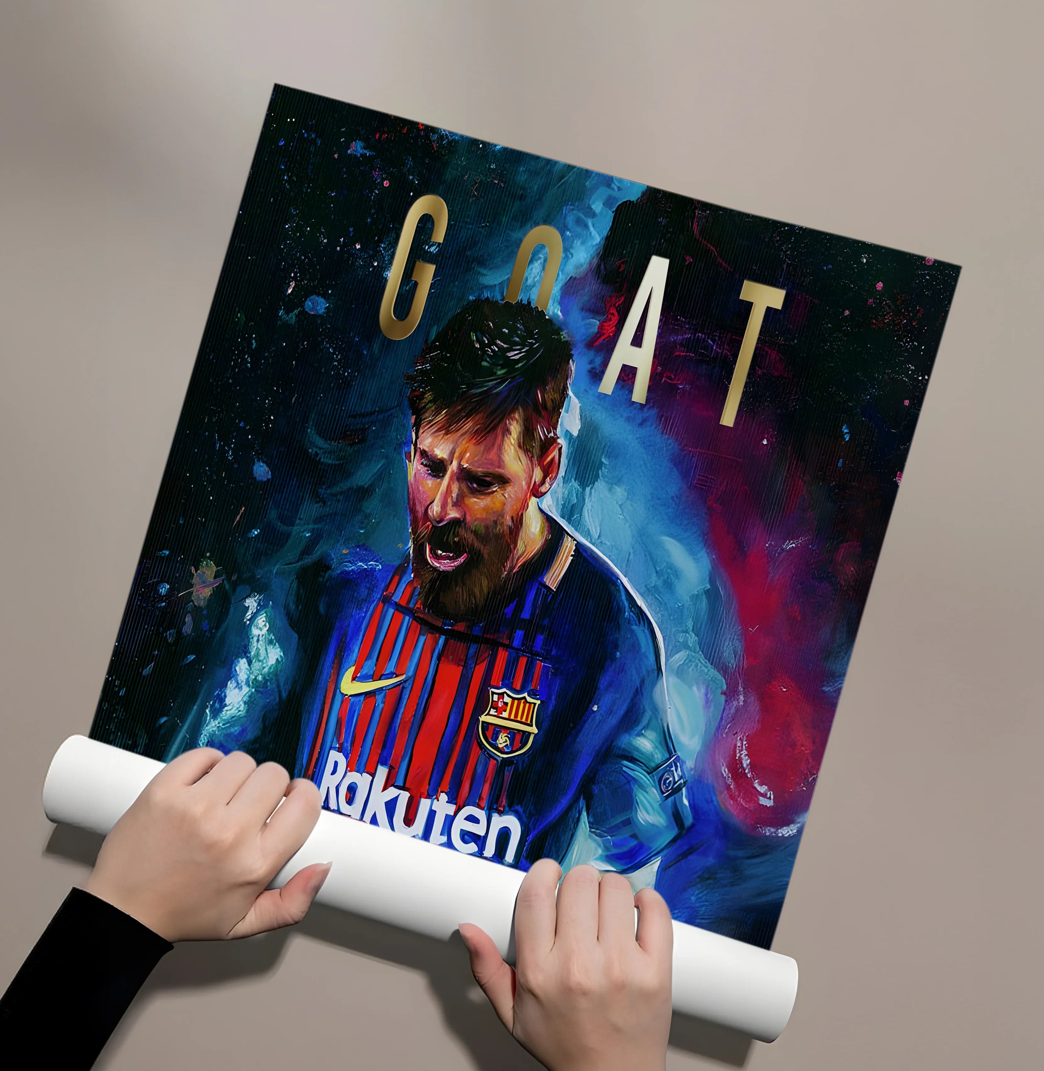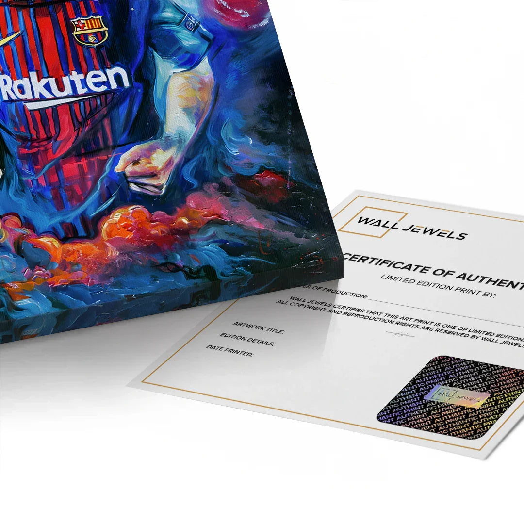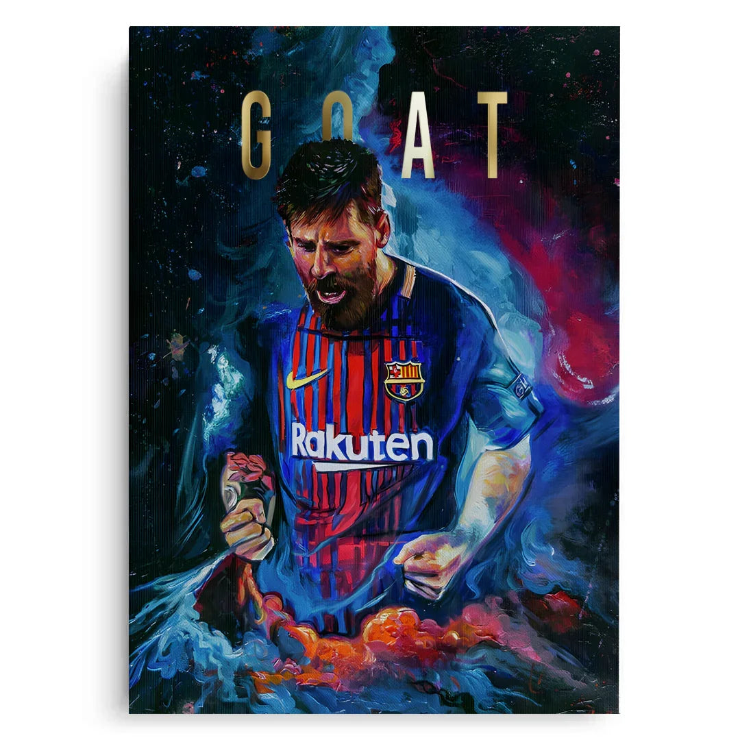 احتفل بعظمة ليونيل ميسي مع هذه اللوحة الجدارية الرائعة، المُزينة بورق معدني حقيقي على شكل أوراق غولف. قطعة لا غنى عنها لعشاق كرة القدم، فهي تُضفي حيويةً وإلهامًا على غرف اللعب، وغرف النوم، والمكاتب، والصالات الرياضية.