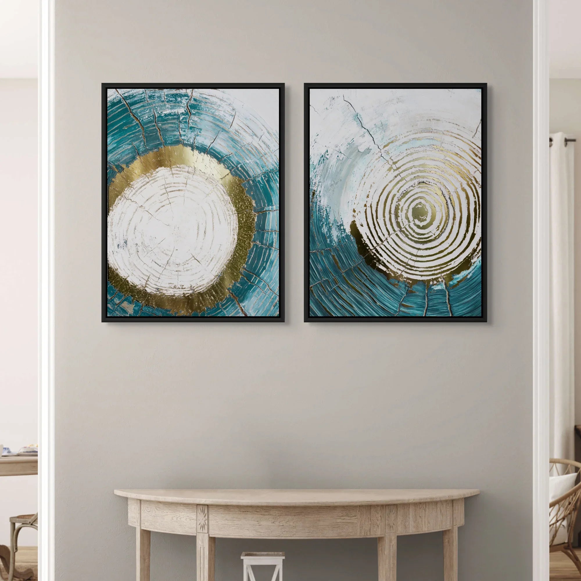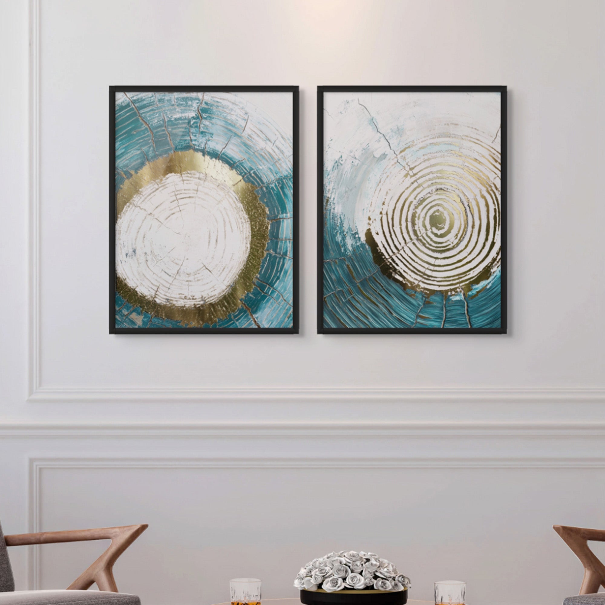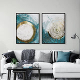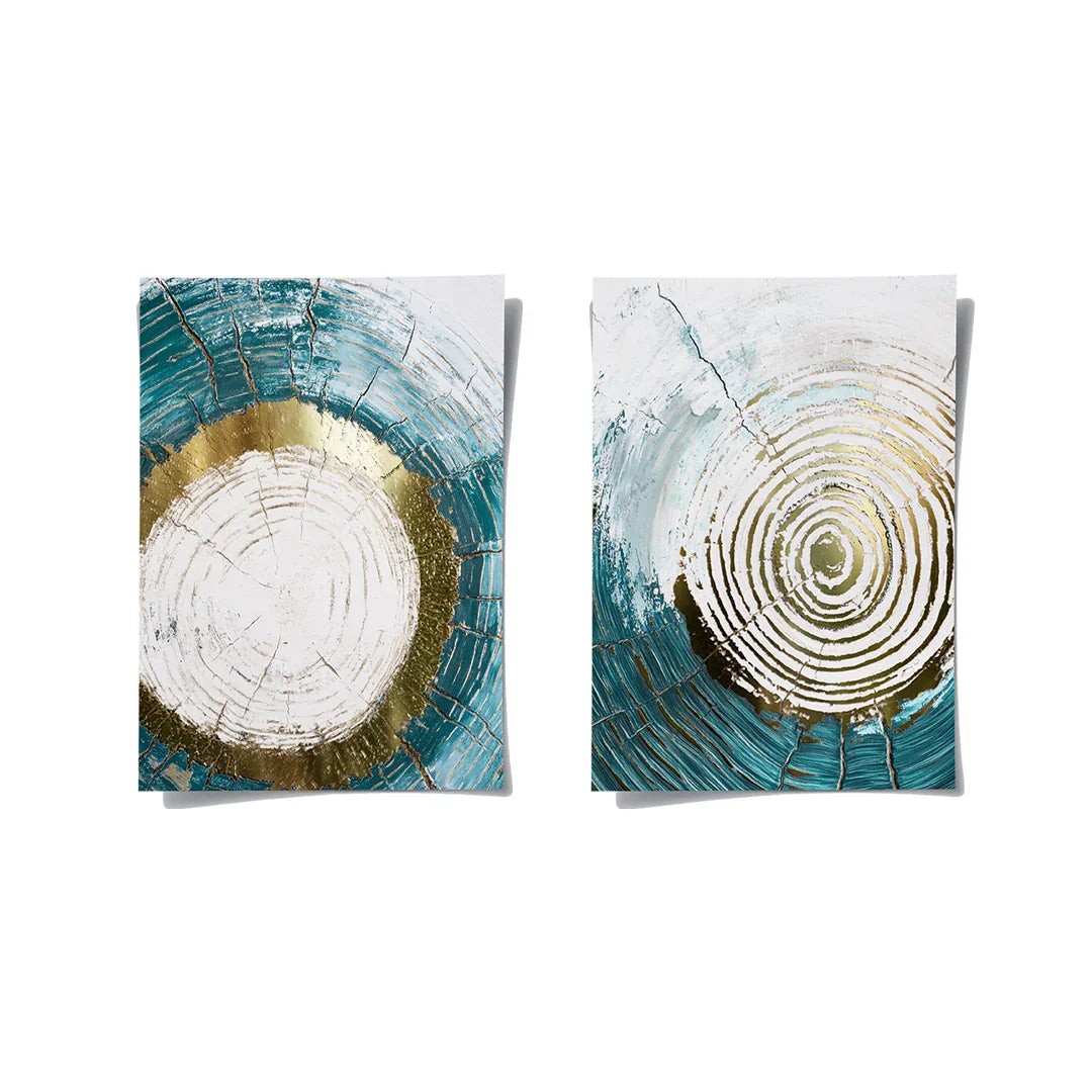 هذه المجموعة التجريدية اللافتة تجمع بين درجات الأزرق الداكن مع لمسات وردية وتفاصيل ذهبية معدنية. مثالية لغرف المعيشة العصرية، أو الممرات، أو المكاتب الإبداعية، فهي تضفي لمسة جريئة ومتوازنة على الديكورات الداخلية المعاصرة.