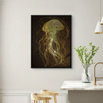 يتميز هذا العمل الفني تحت الماء بسمكة رافين أنيقة تُنيرها أشعة الشمس، مع بقع ذهبية تُضفي أناقةً مميزة. مثالية للحمامات والممرات وغرف المعيشة العصرية، تُضفي هذه القطعة عمقًا وحركةً محيطيةً هادئةً على مساحتك.