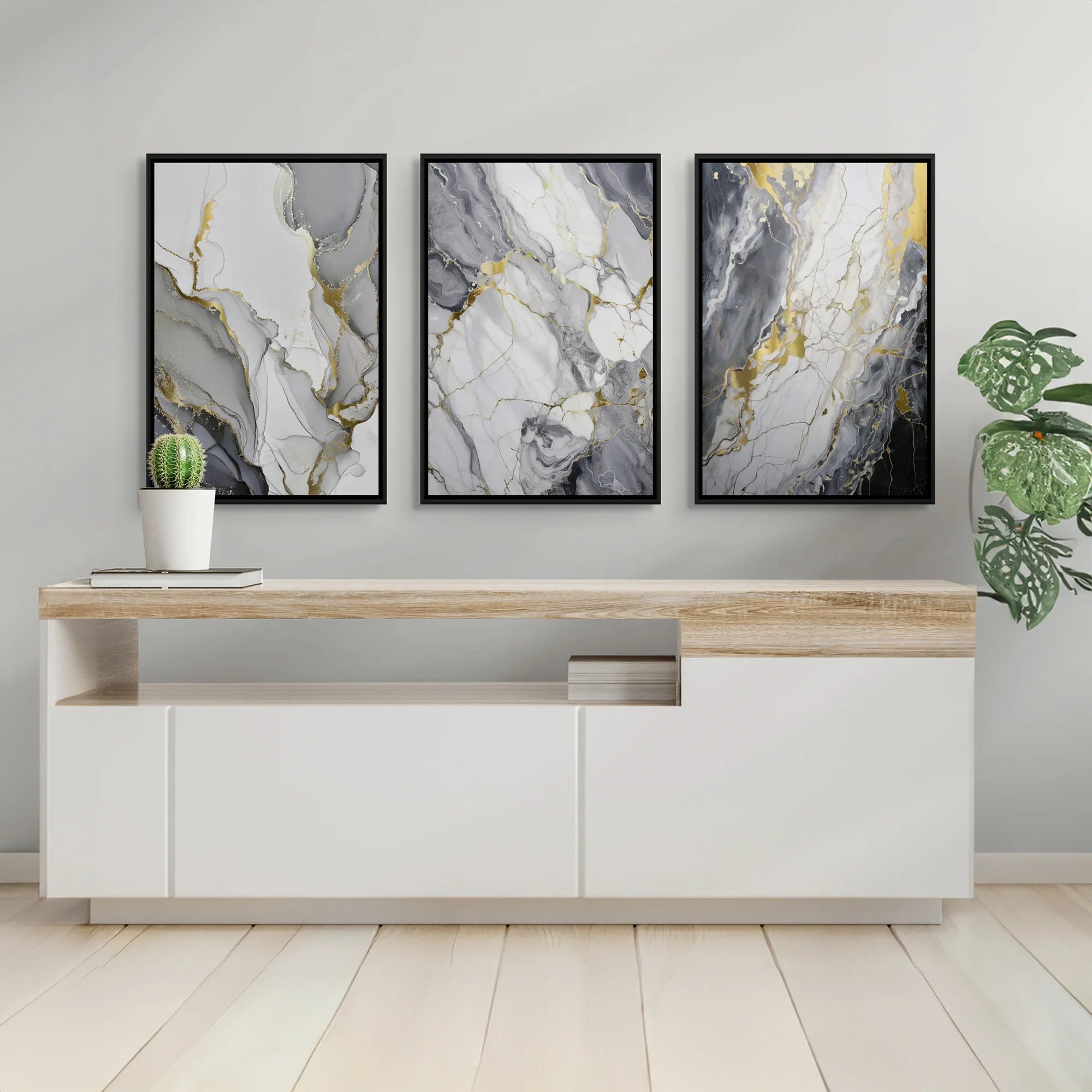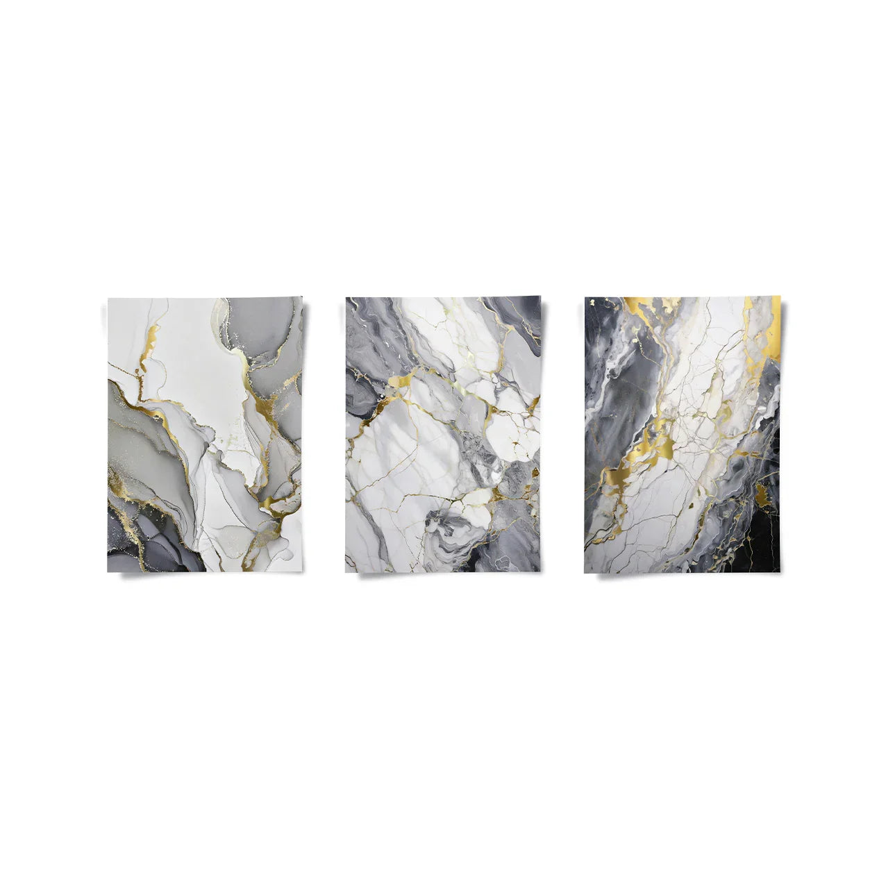 This striking marble-inspired trio features swirling grey tones and brilliant gold veining.