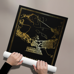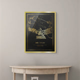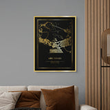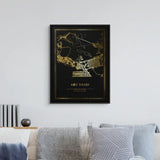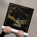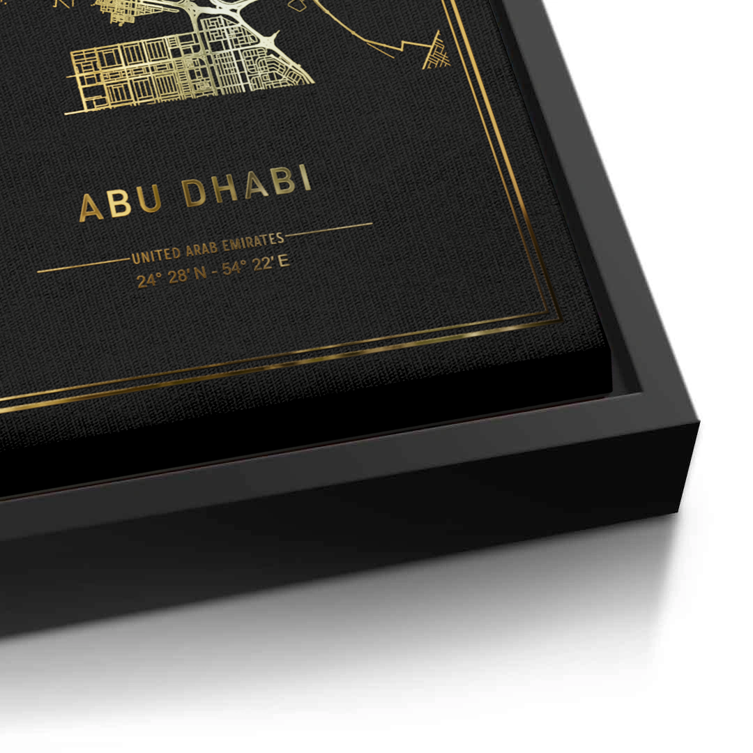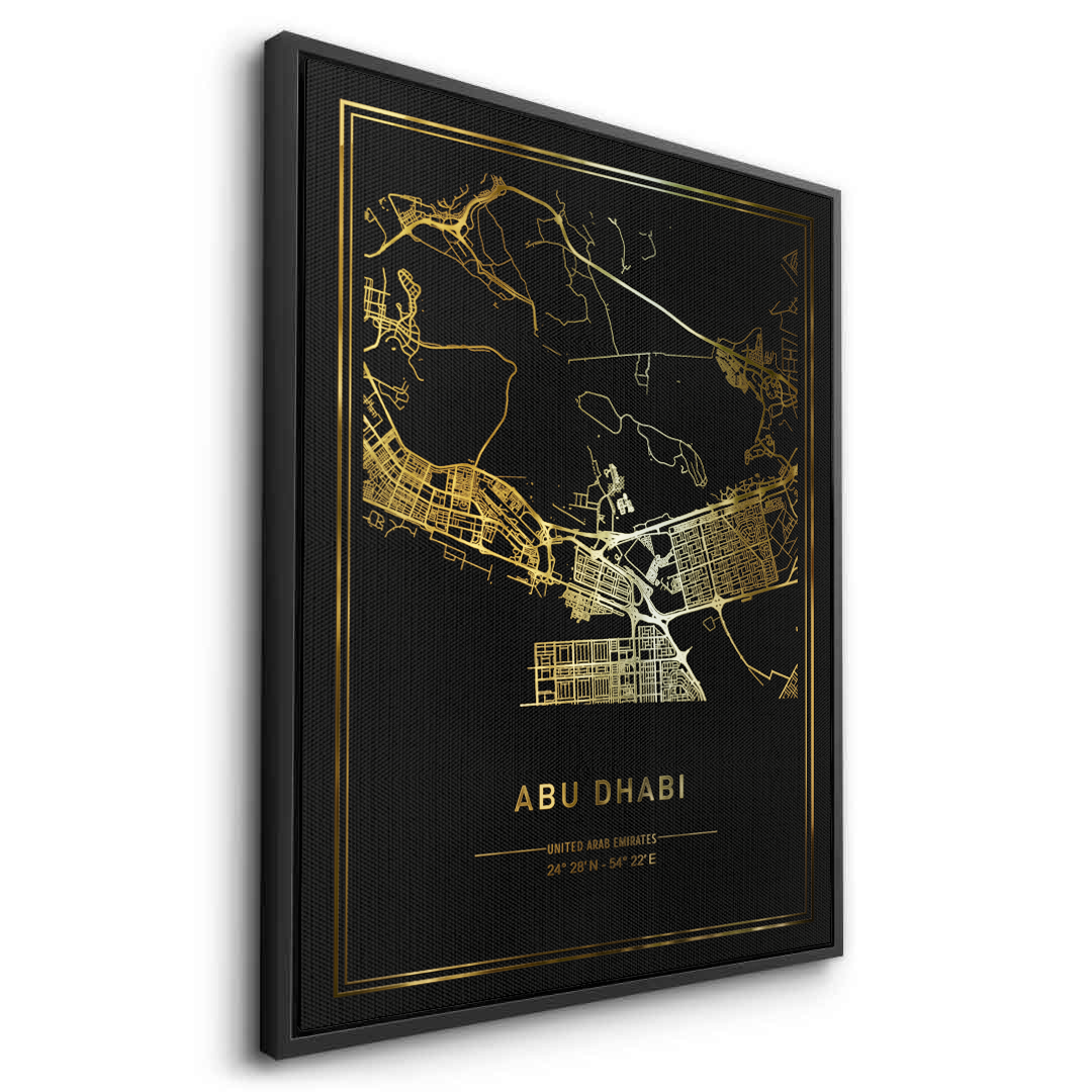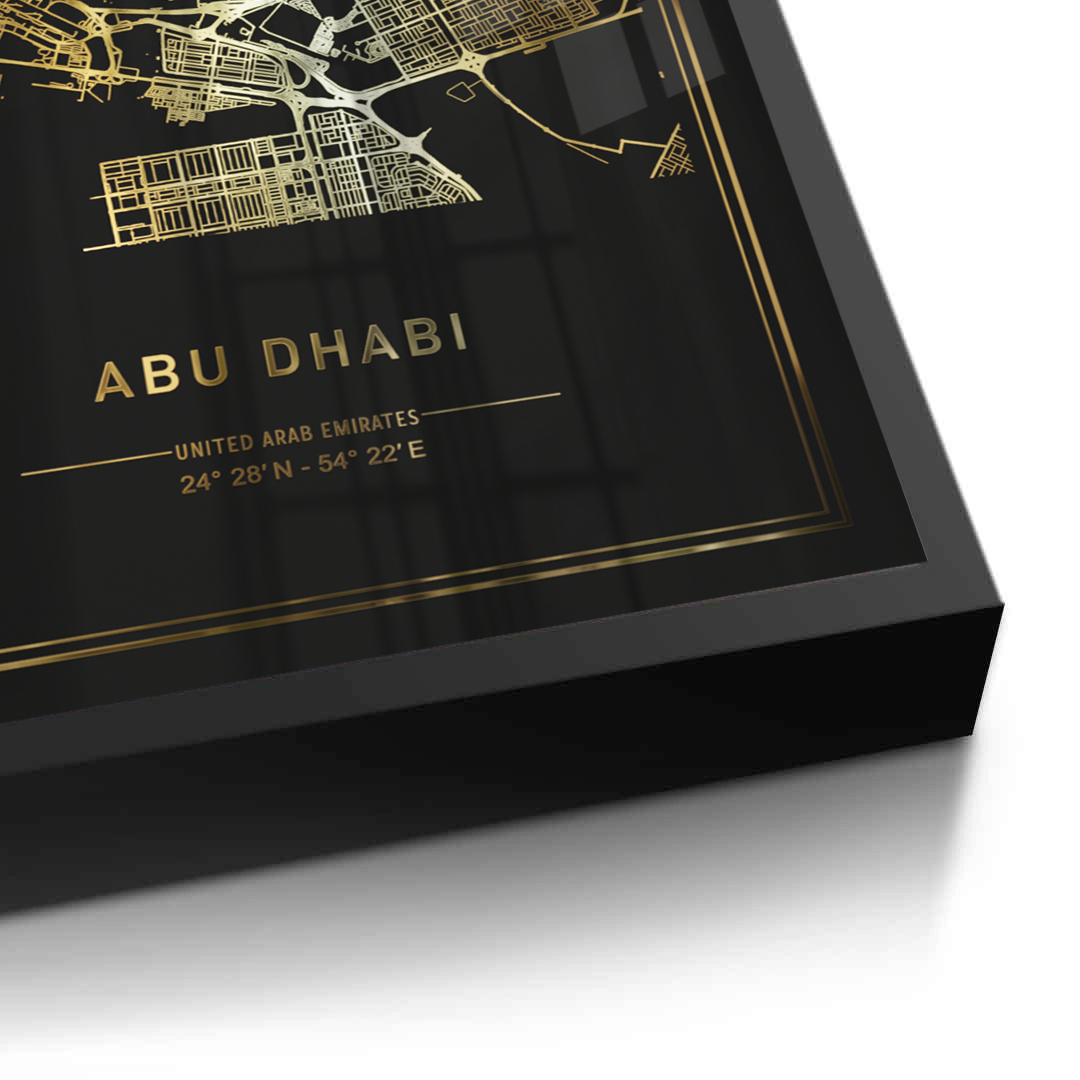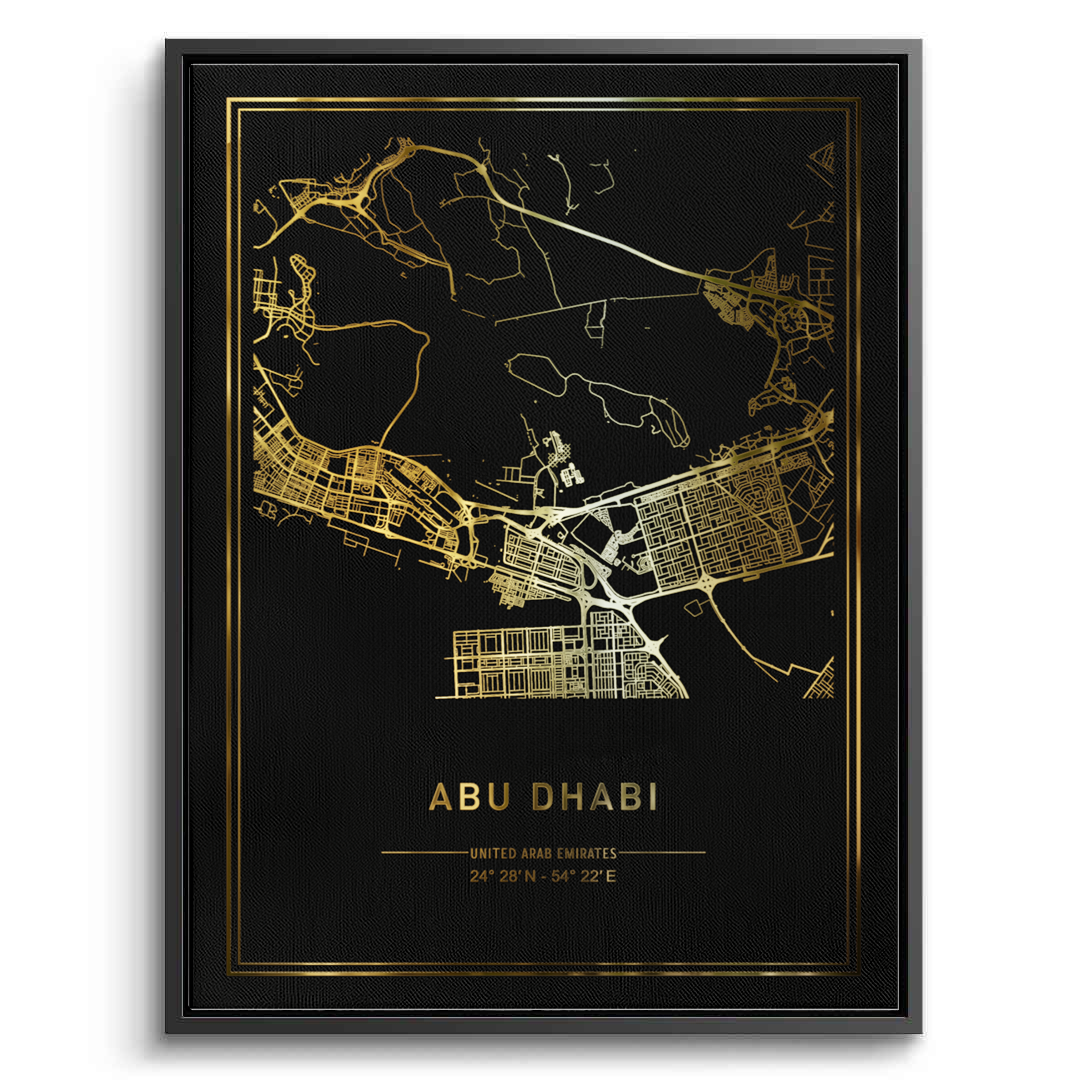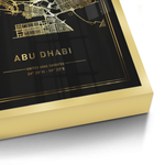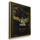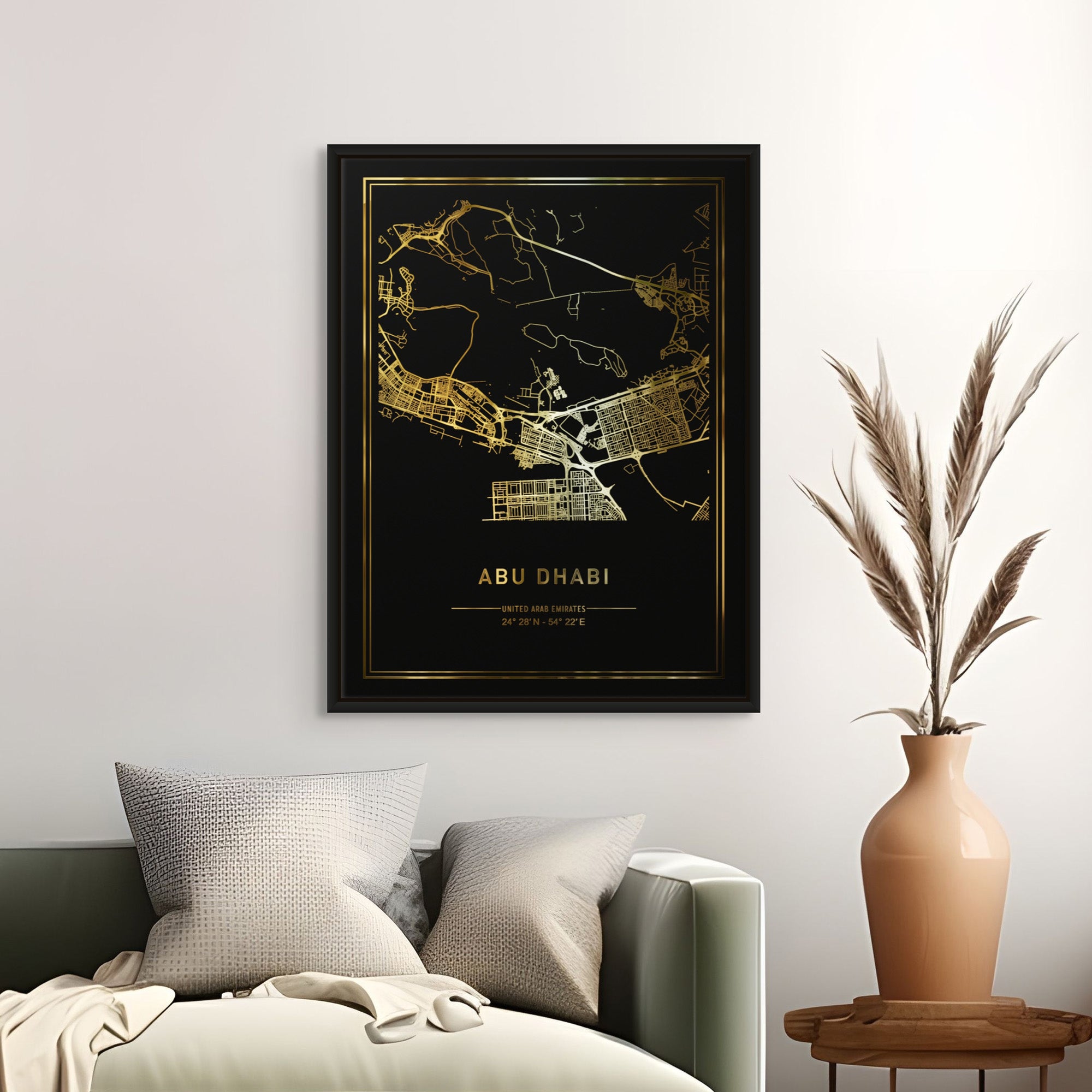 A striking gold foiled city map artwork of Abu Dhabi, United Arab Emirates, capturing its unique layout in bold detail. Perfect for offices, airports, hotels, corporate spaces, or modern homes, it celebrates the Emirates’ spirit and appeals to UAE art lovers.