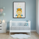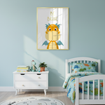 This gold-foiled “Be Brave” artwork features a friendly yellow dragon with teal wings, spreading a message of courage and confidence. Perfect for nurseries or playrooms, it brings a fun, uplifting vibe to any little adventurer’s space.