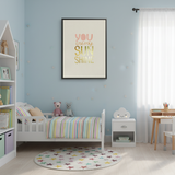 This gold-foiled wall art features the uplifting phrase “You Are My Sunshine” in soft pastel tones. With its warm glow and cheerful typography, it adds a loving, positive touch to kids’ rooms or nurseries.