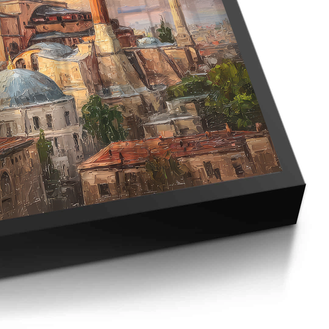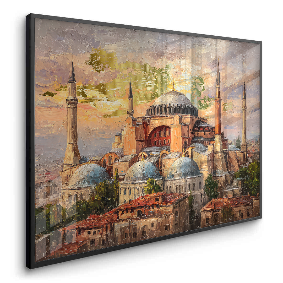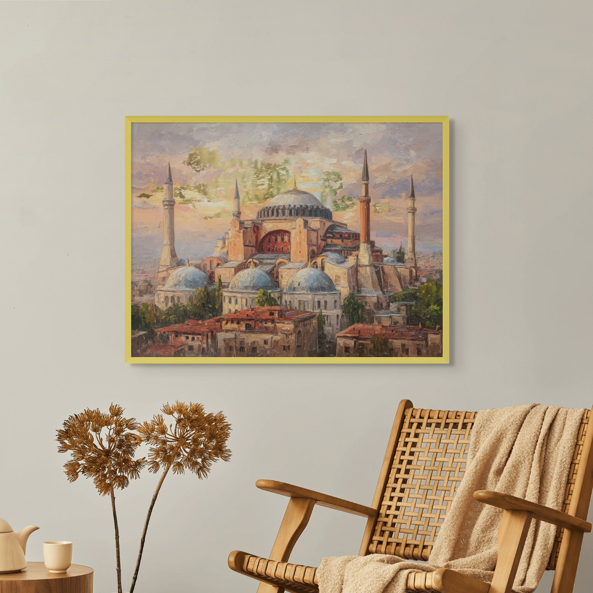 A gold-foiled depiction of Istanbul’s Hagia Sophia, glowing beneath a radiant sunset sky. This timeless artwork celebrates history and architecture, making it a stunning addition to living rooms, offices, or homes styled with cultural elegance.