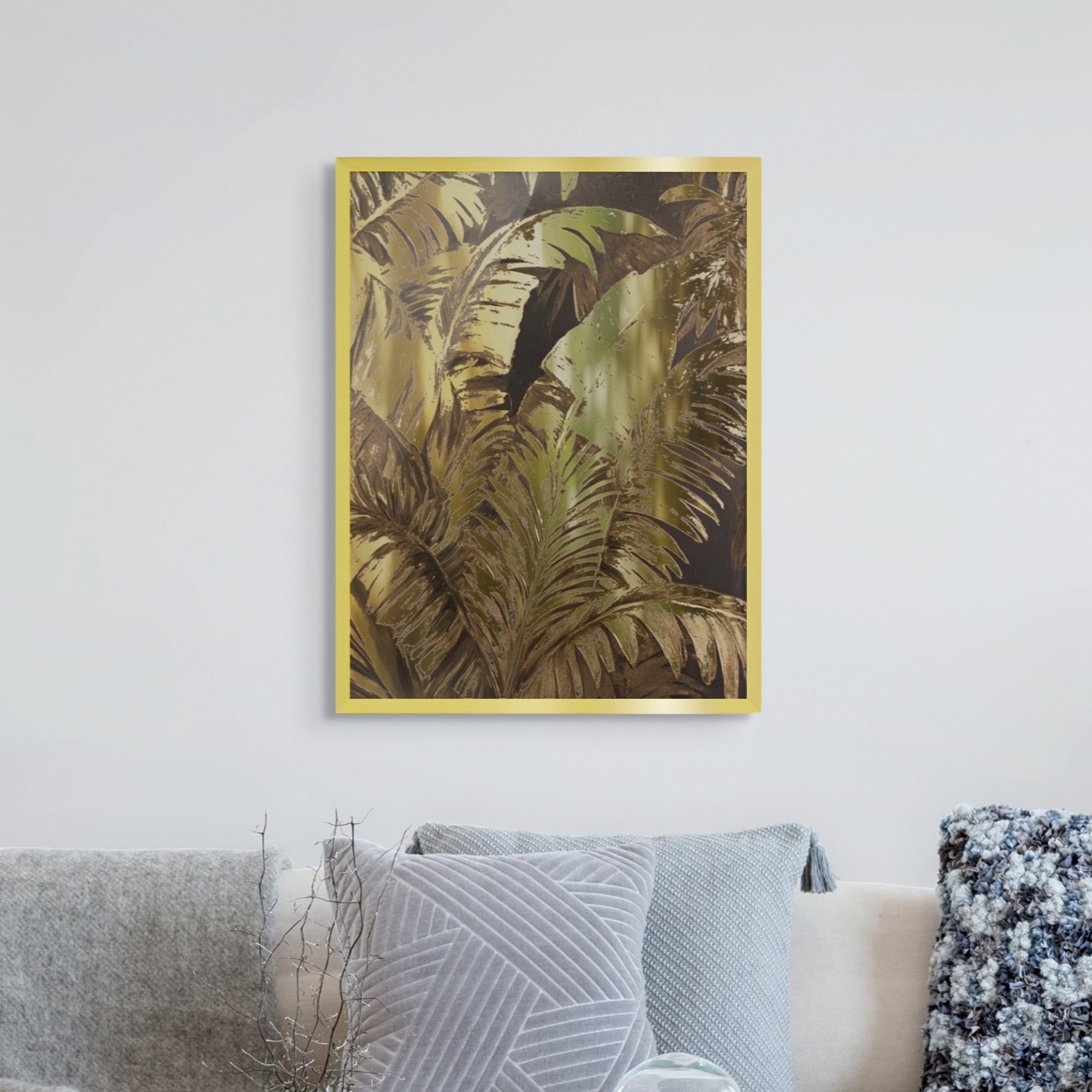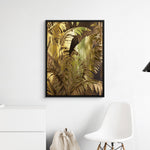 Bold tropical leaves rendered in radiant gold tones bring a sense of lush luxury to any space. Perfect for statement walls, upscale lounges, or contemporary hallways—adds richness and botanical flair to dark or moody interiors.