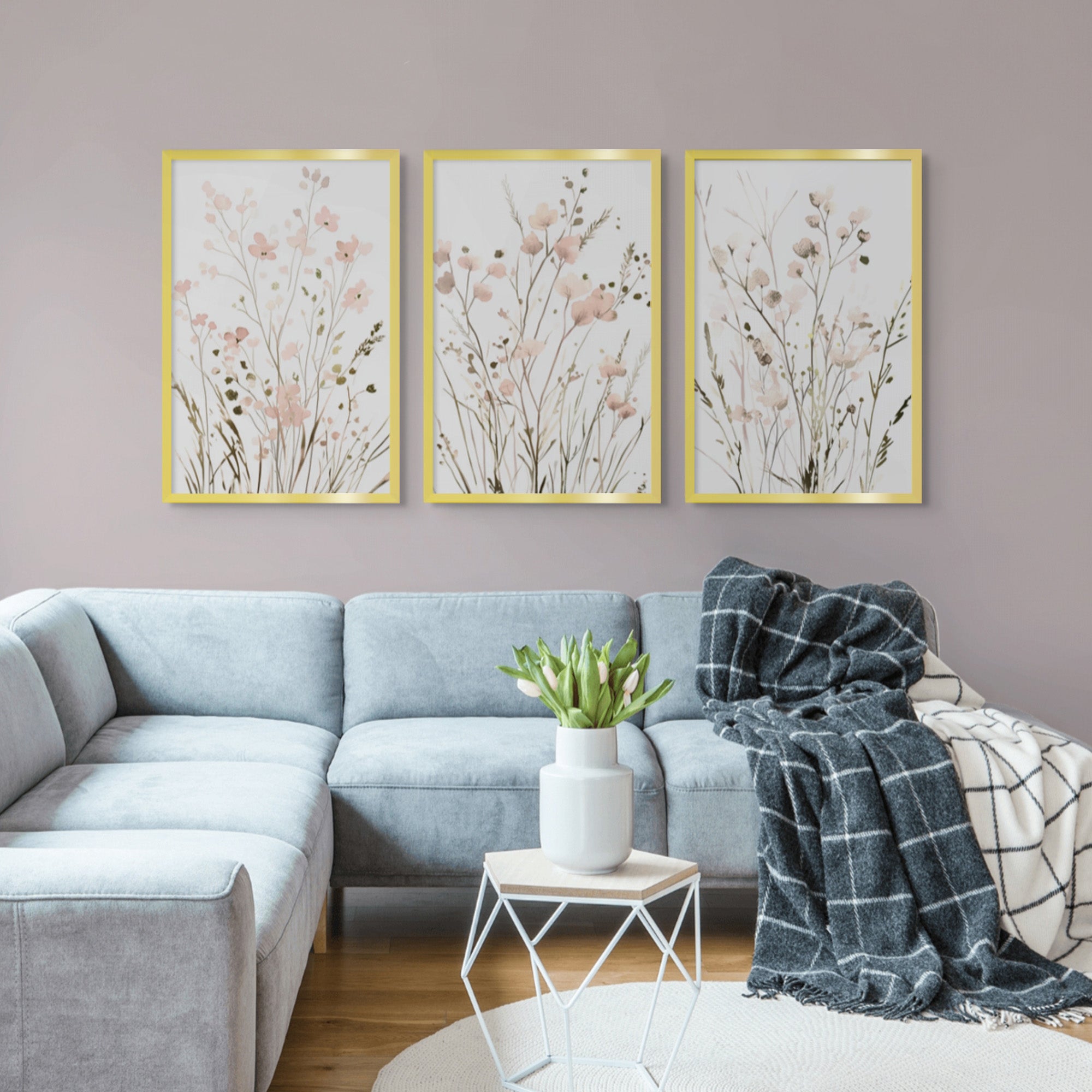 A soft bouquet of wildflowers in blush and golden tones, this artwork brings botanical charm to serene spaces. Ideal for bedrooms, nurseries, or creative corners, it radiates calm, elegance, and a gentle connection to nature.