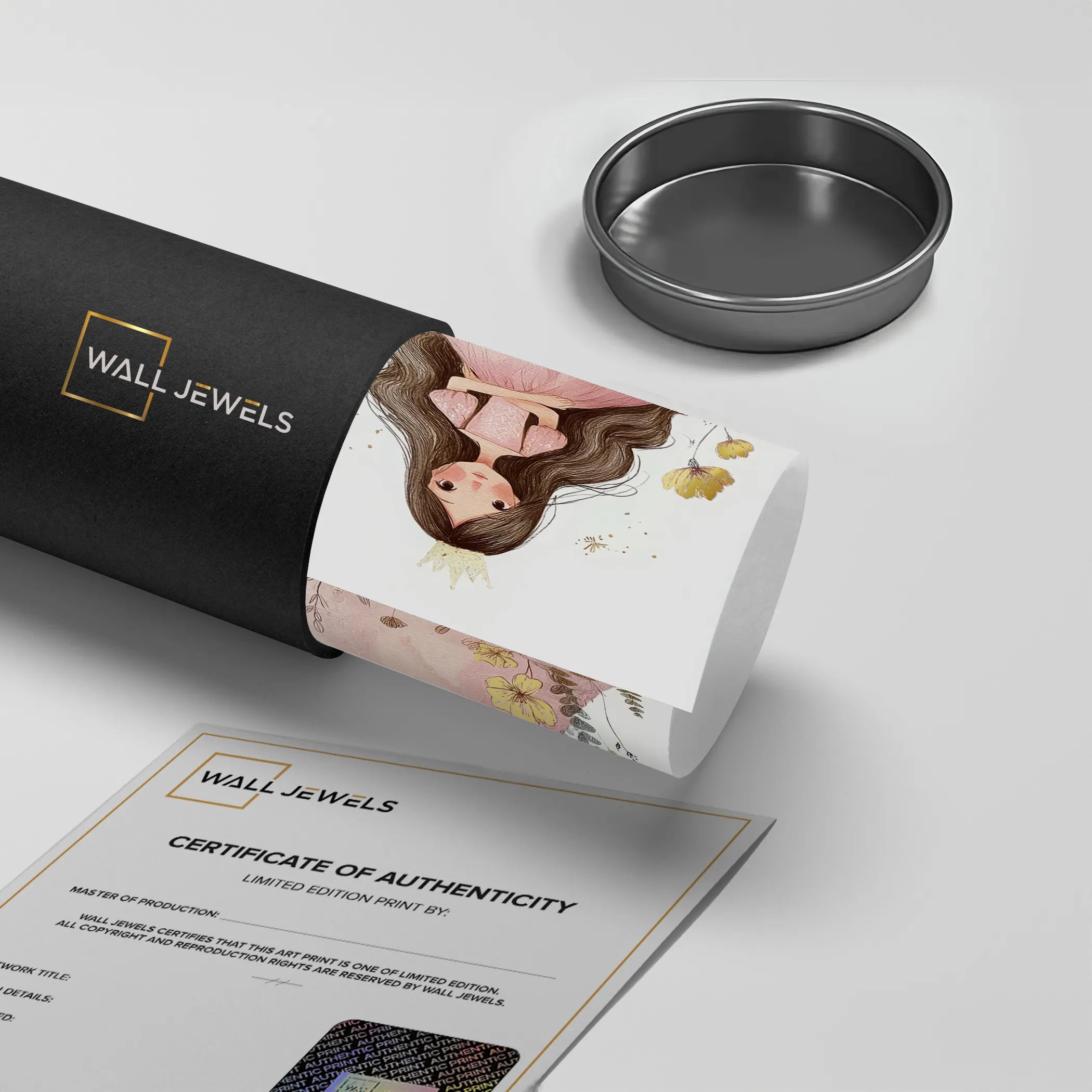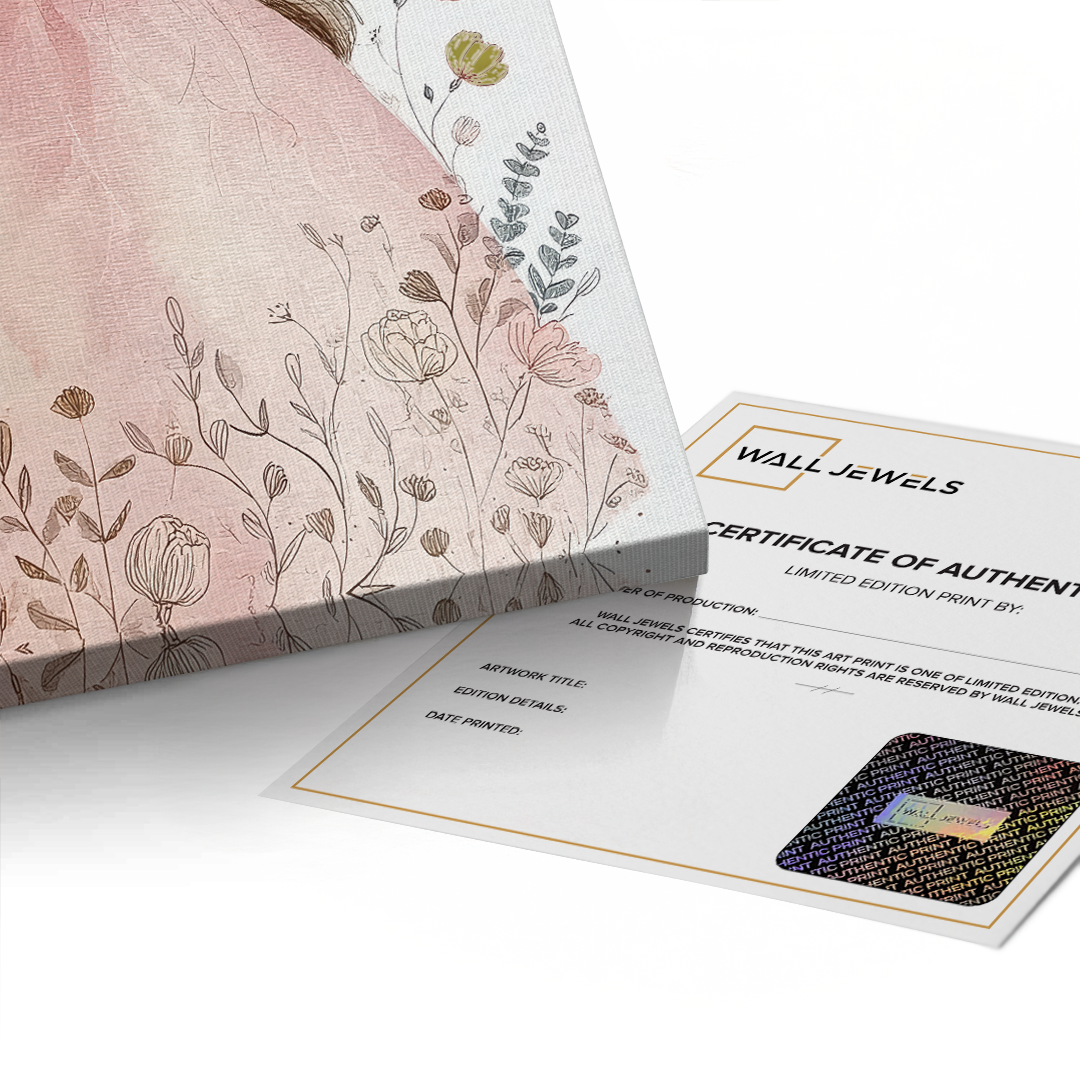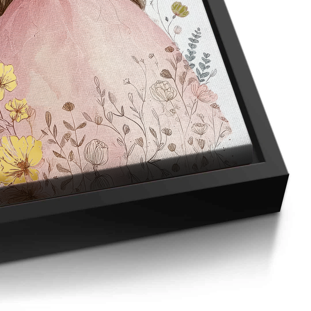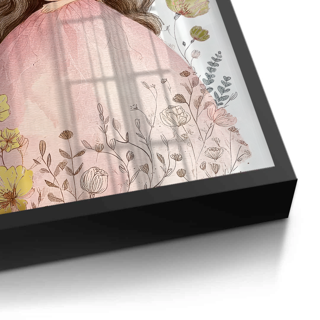 This gold-foiled artwork captures a sweet princess in her flowing blush gown, surrounded by whimsical blooms. With soft pink and golden tones, it brings a dreamy fairytale charm to nurseries, playrooms, or little girls’ royal spaces.