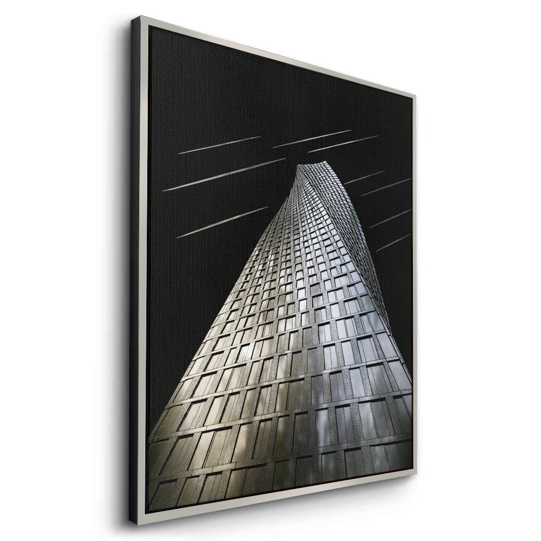 A silver-foiled depiction of Dubai’s iconic Cayan Tower, captured from a bold upward view. Its futuristic twisting design and clean monochrome style bring modern sophistication, perfect for luxury homes, offices, or contemporary interiors.