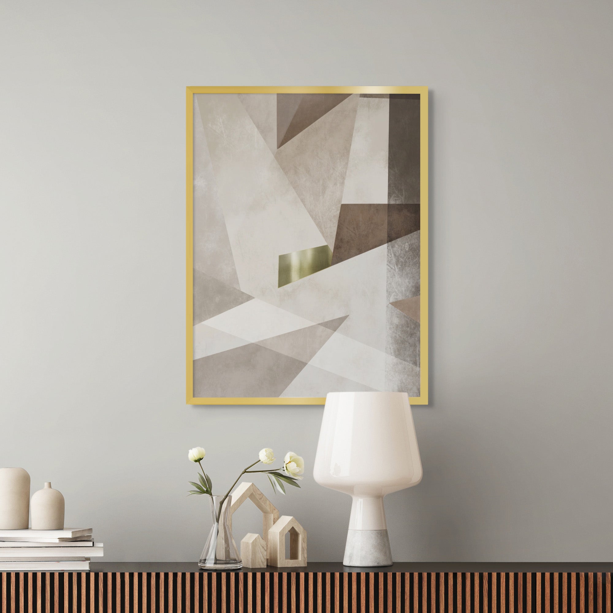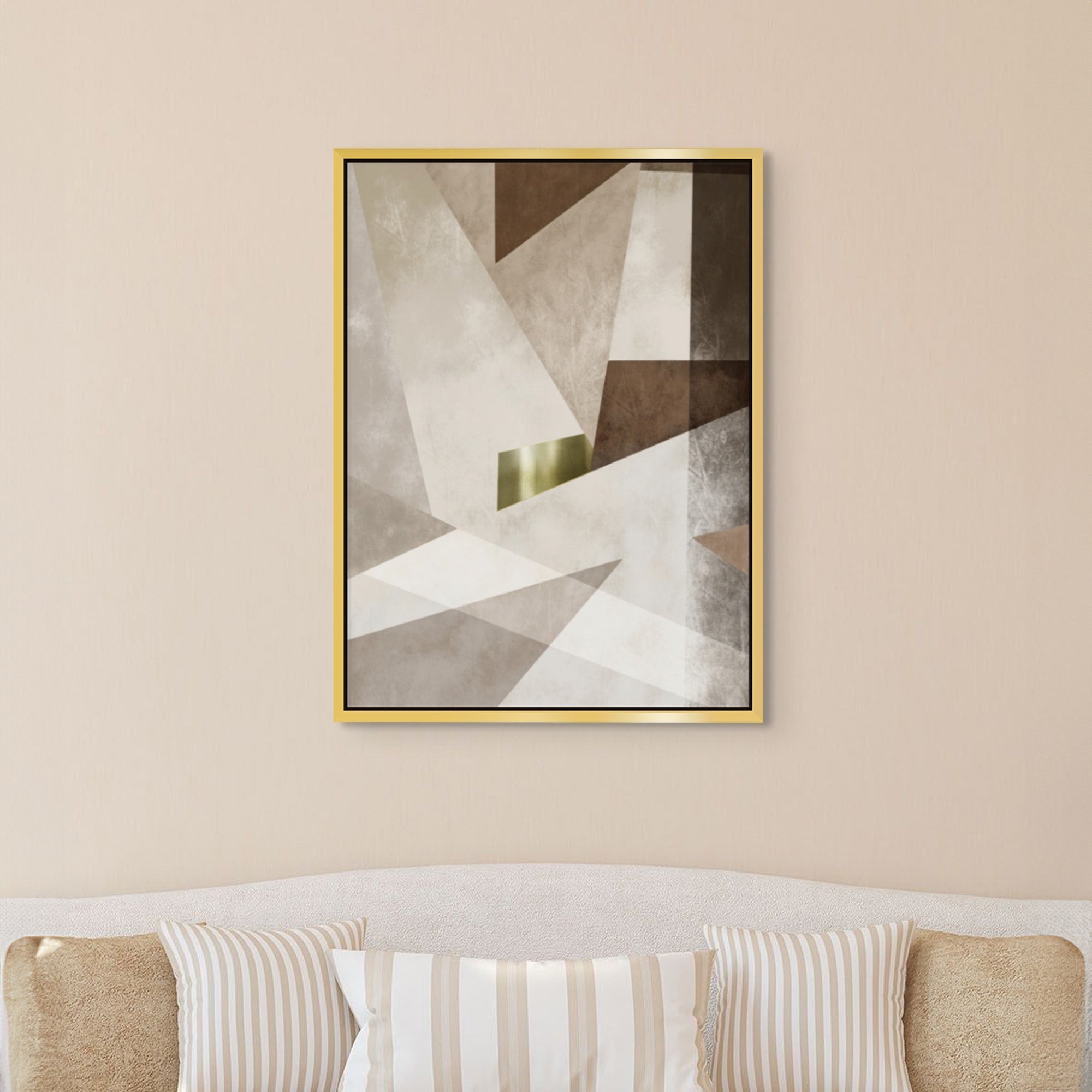 An abstract study in earth tones, Clay Fragments layers shades of beige, taupe, and brown with a gold-foiled highlight. Inspired by weathered surfaces and broken forms, it adds grounded warmth to modern, neutral-toned interiors.