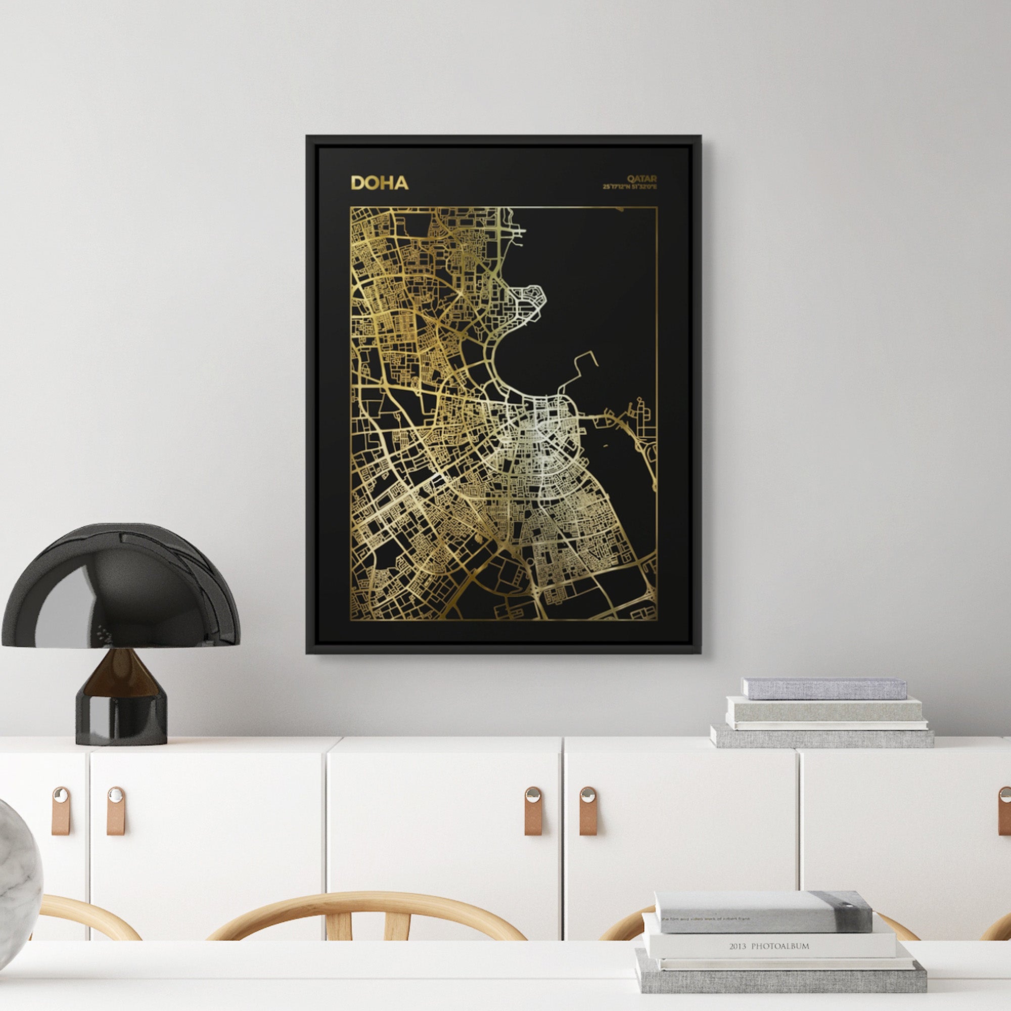 A striking gold foiled map artwork of Doha, Qatar, capturing the city’s intricate layout in bold contrast. Designed for those who admire the Gulf’s iconic cities, this piece suits homes, offices, corporate spaces, and makes a meaningful gift celebrating the spirit of the GCC.