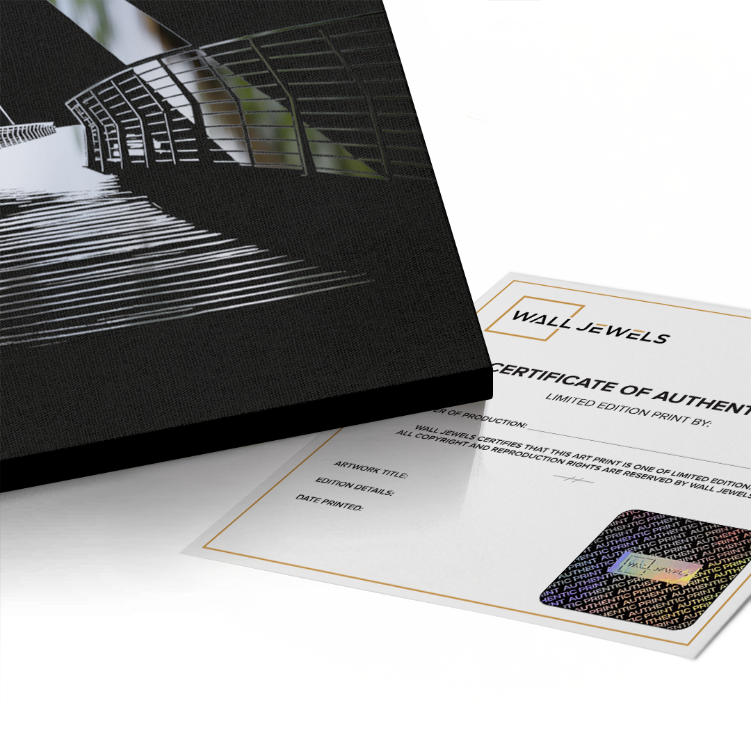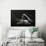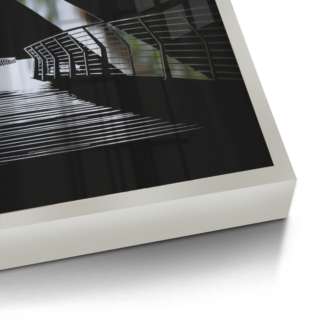 A dramatic silver-foiled perspective of Dubai’s iconic canal, symbolizing innovation and movement. Its bold monochrome style enhances modern interiors, making it a captivating centerpiece for offices, lounges, or architectural-inspired home spaces.