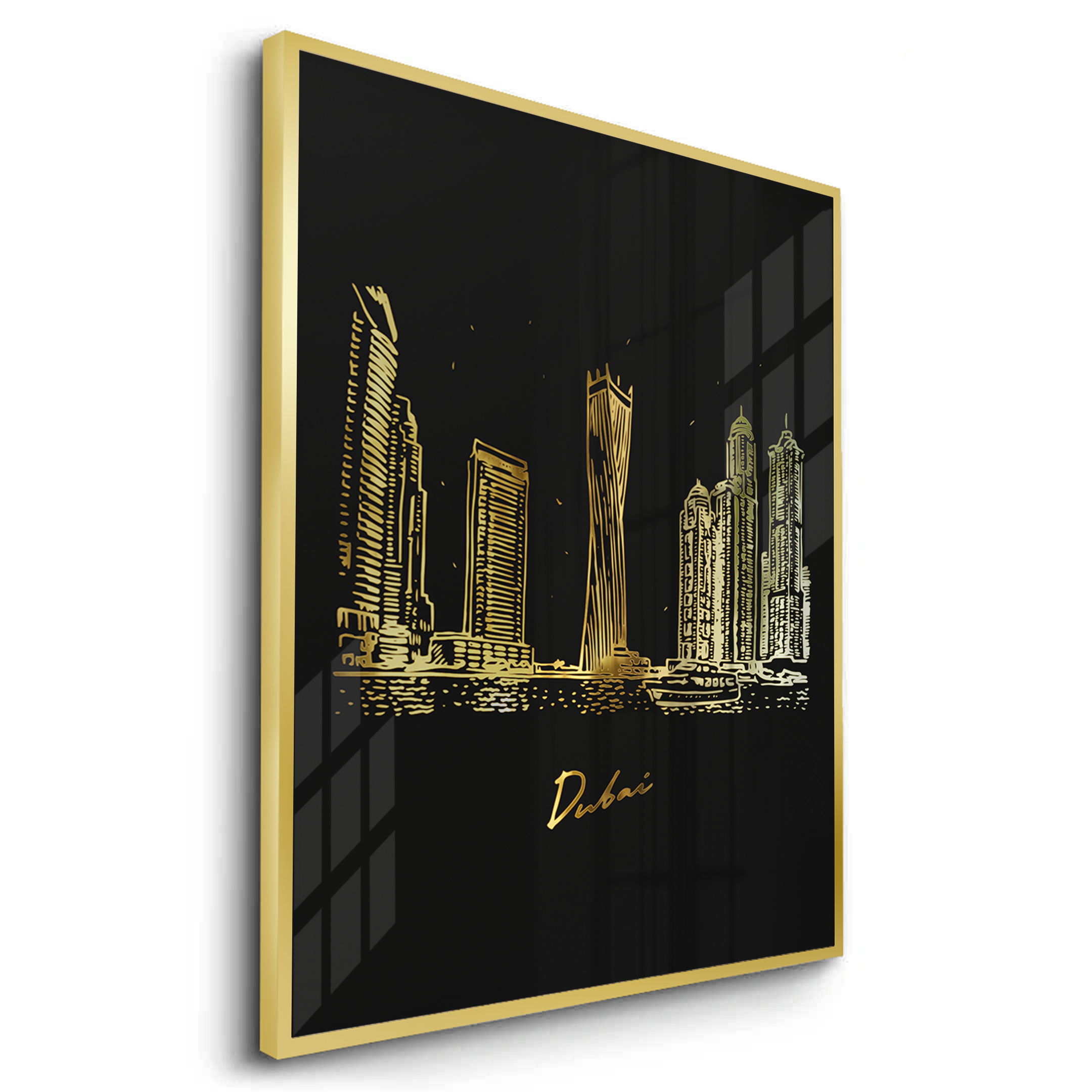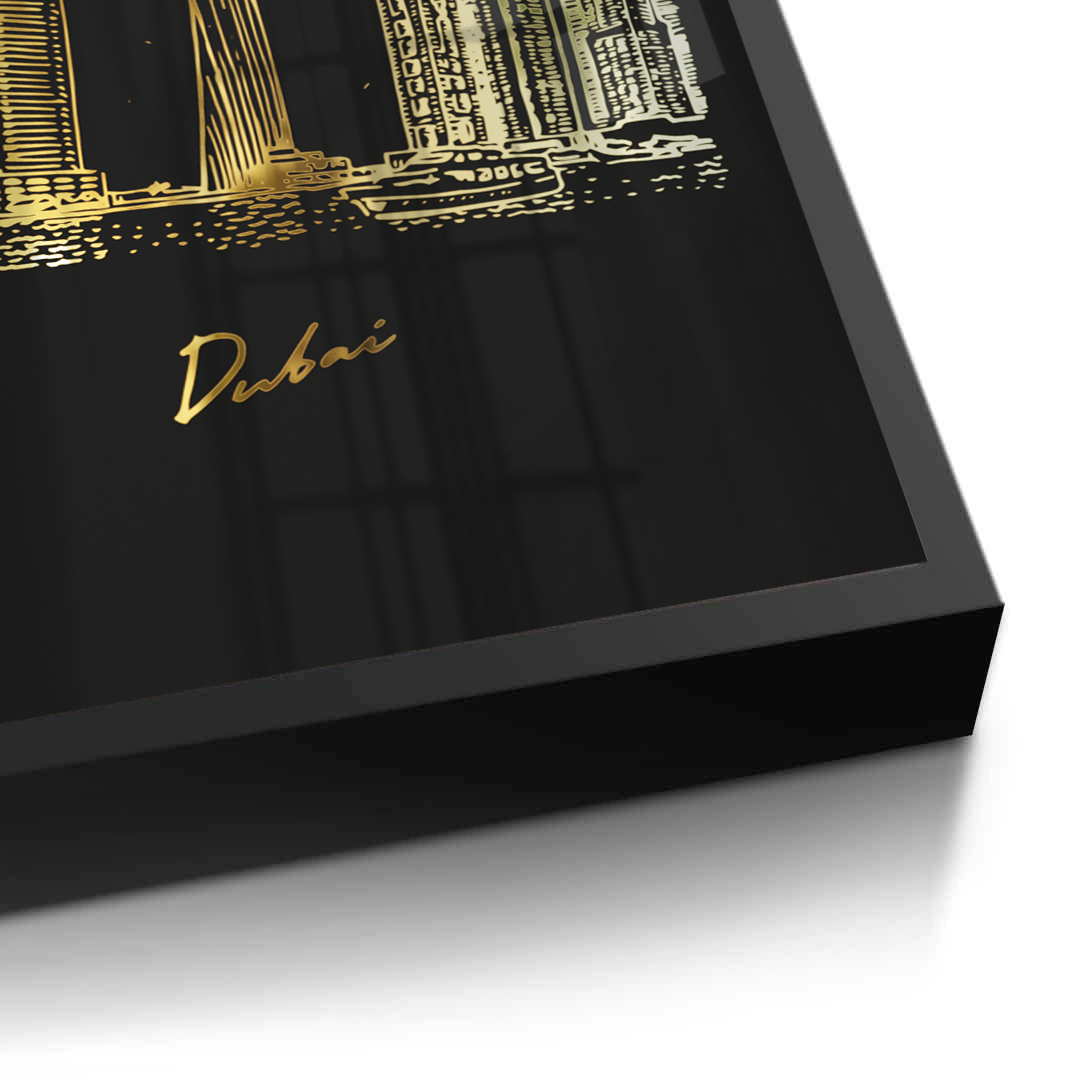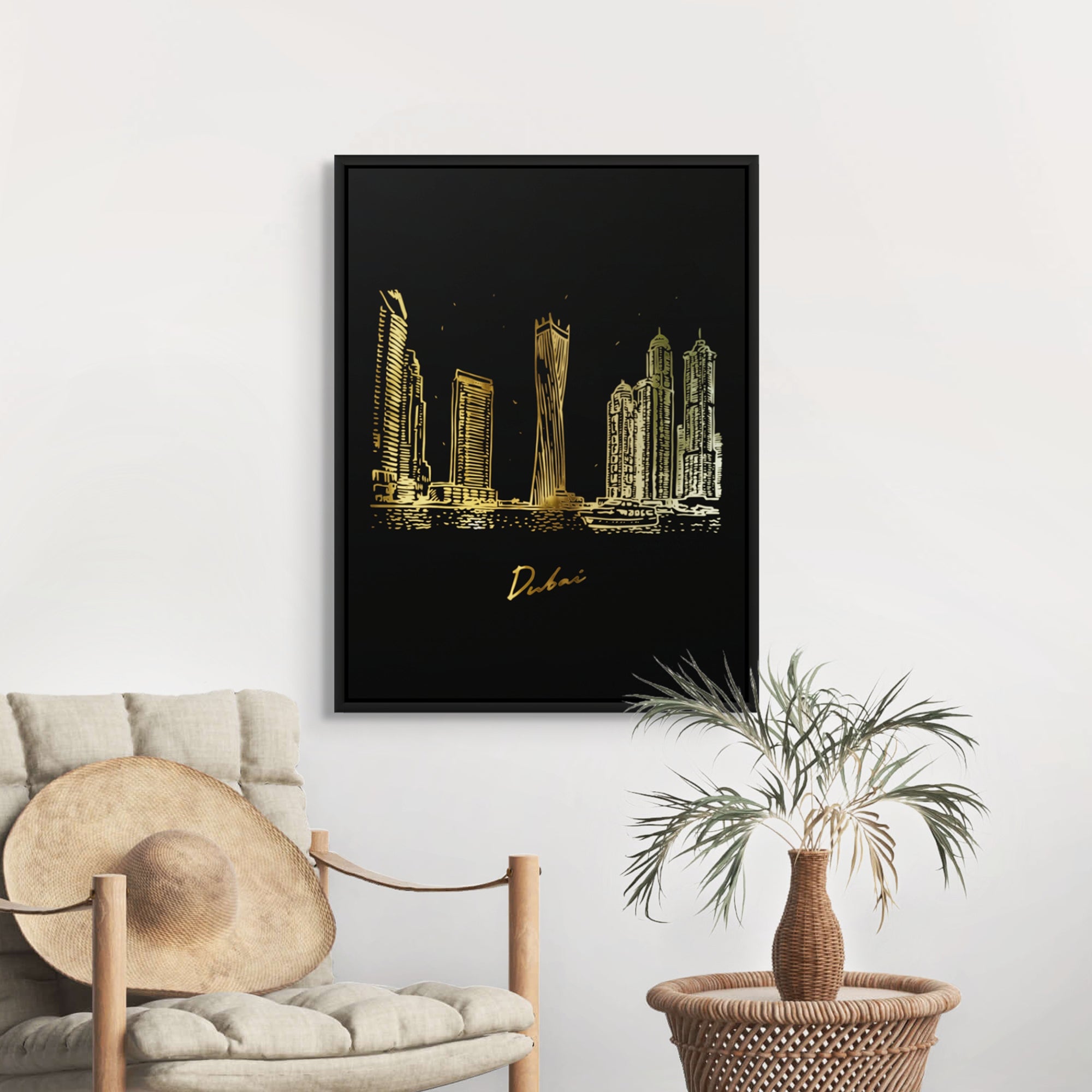 Featuring Dubai Marina’s iconic towers in radiant gold foil, this artwork blends modern architecture with luxury. A bold piece for contemporary homes, lounges, or offices celebrating Dubai’s architectural landmarks.