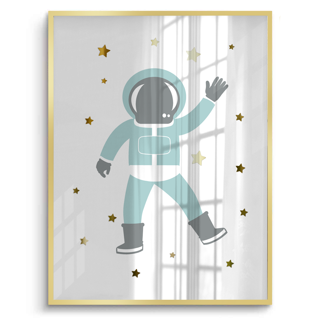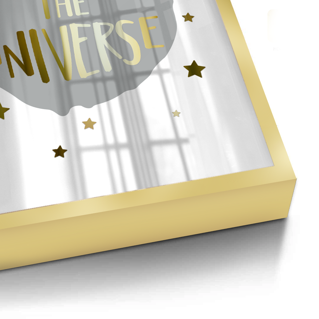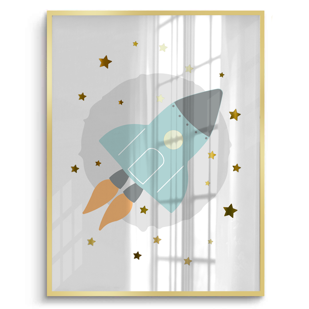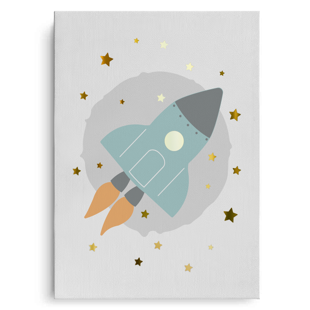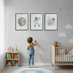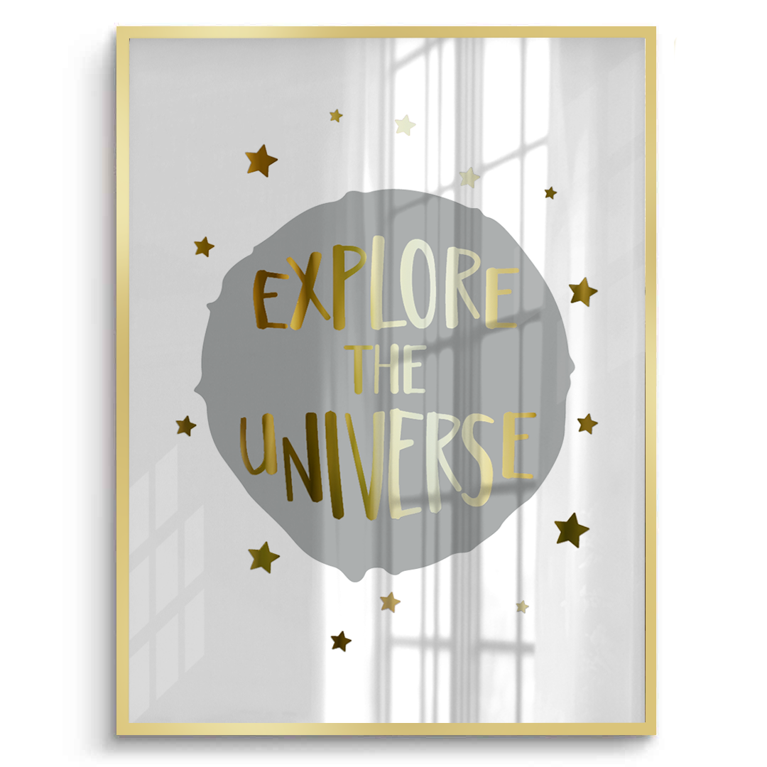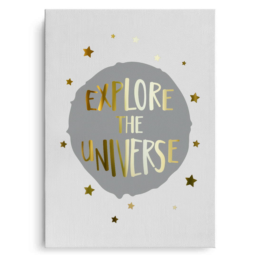 This adventurous gold foiled kids’ art set features a rocket, astronaut, and “Explore the Universe” design surrounded by golden stars. The shimmering gold foil details make it an exciting choice for nurseries, playrooms, or bedrooms.