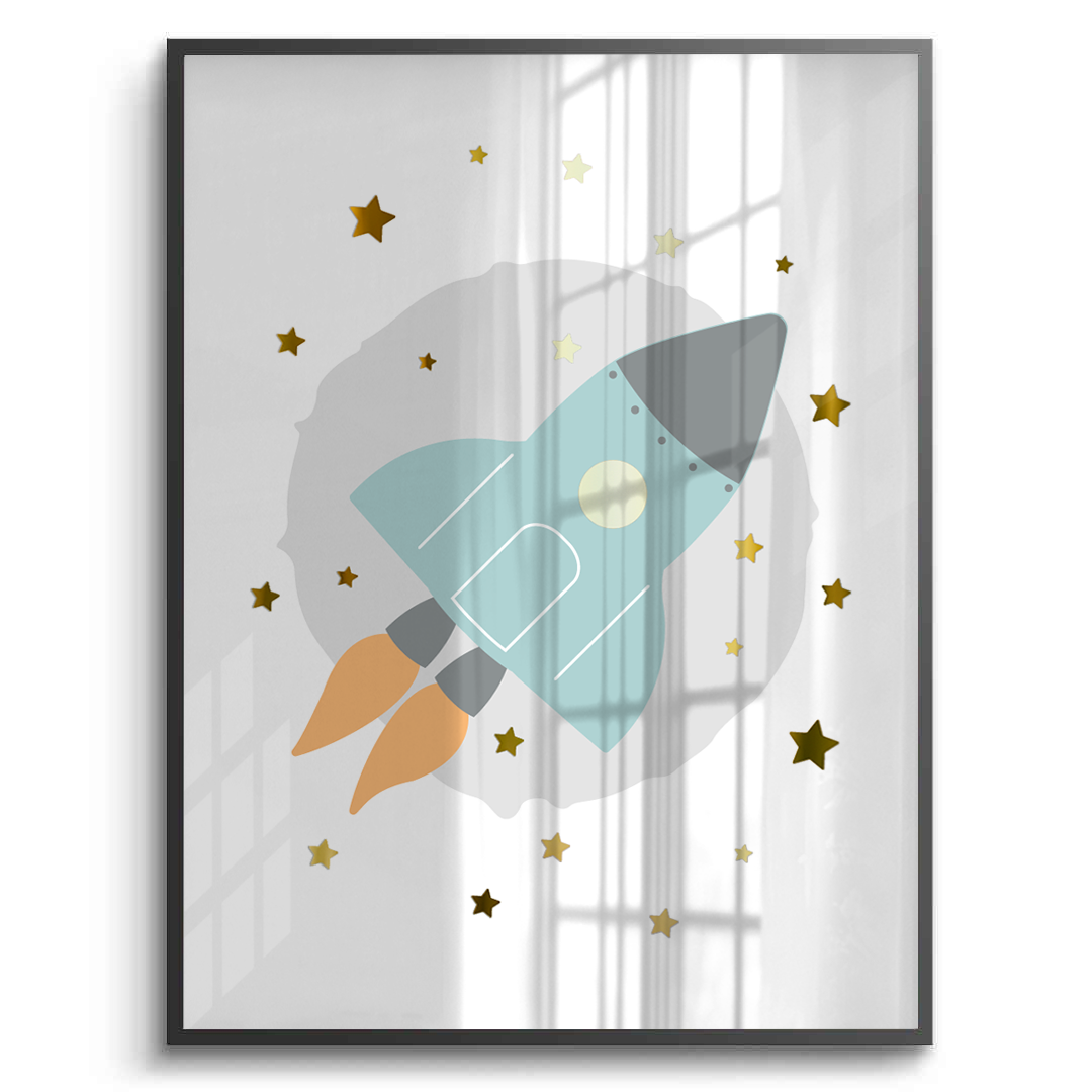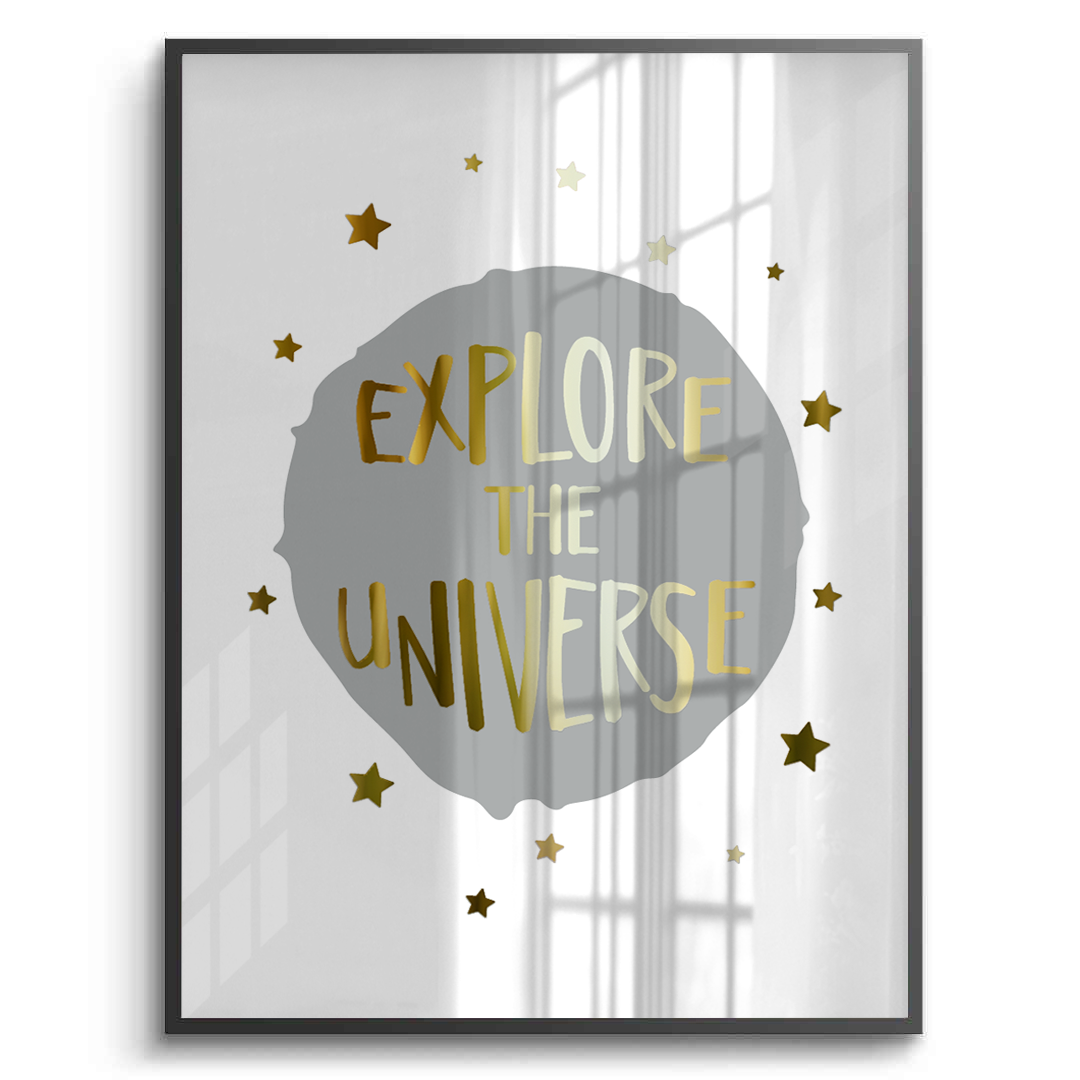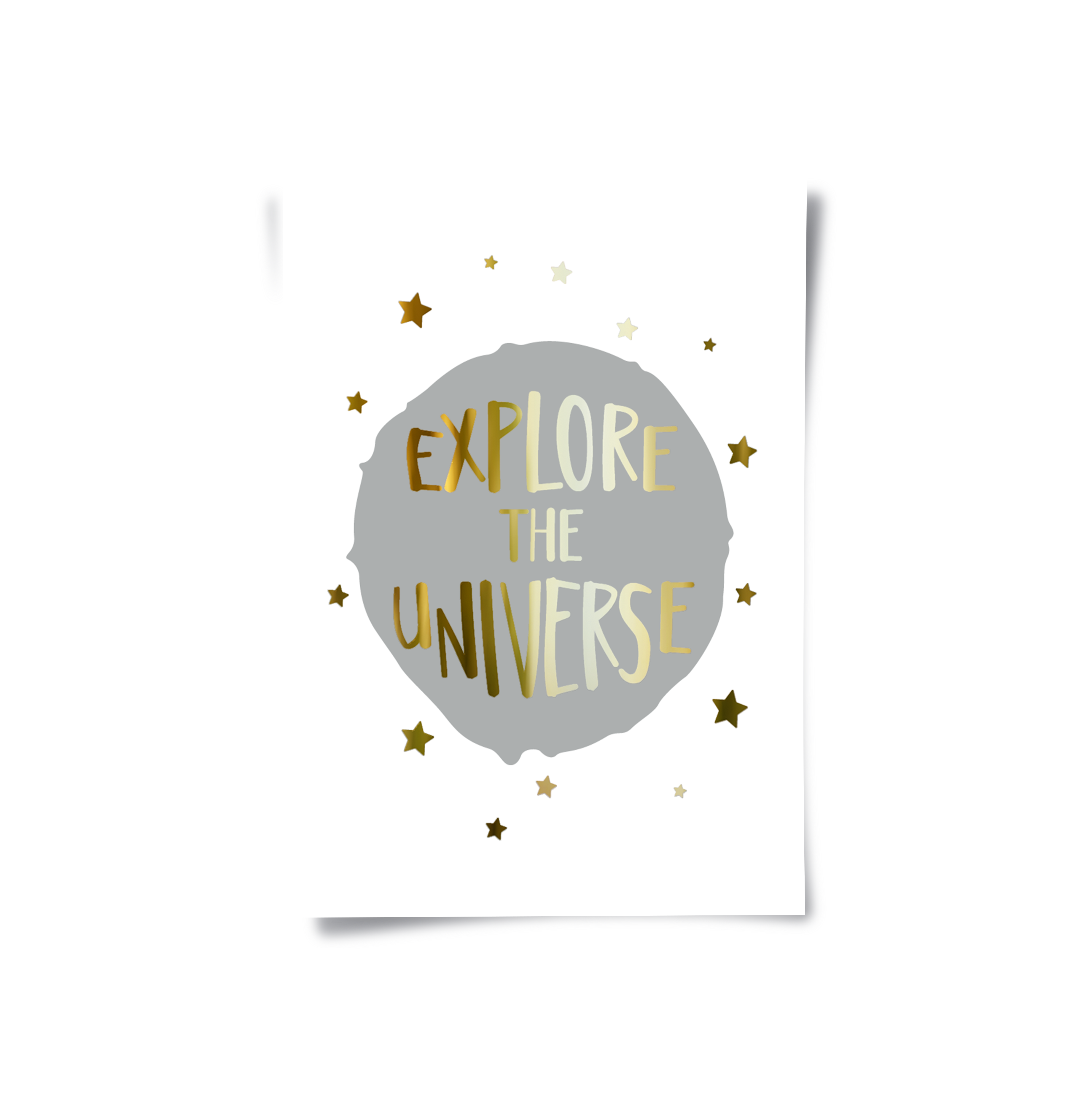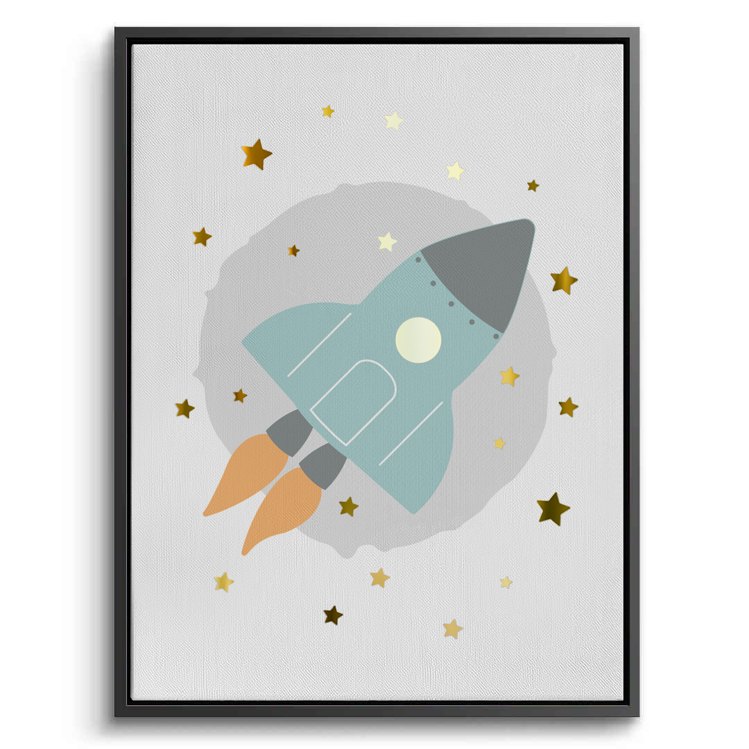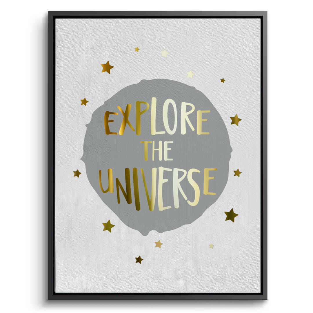 This adventurous gold foiled kids’ art set features a rocket, astronaut, and “Explore the Universe” design surrounded by golden stars. The shimmering gold foil details make it an exciting choice for nurseries, playrooms, or bedrooms.