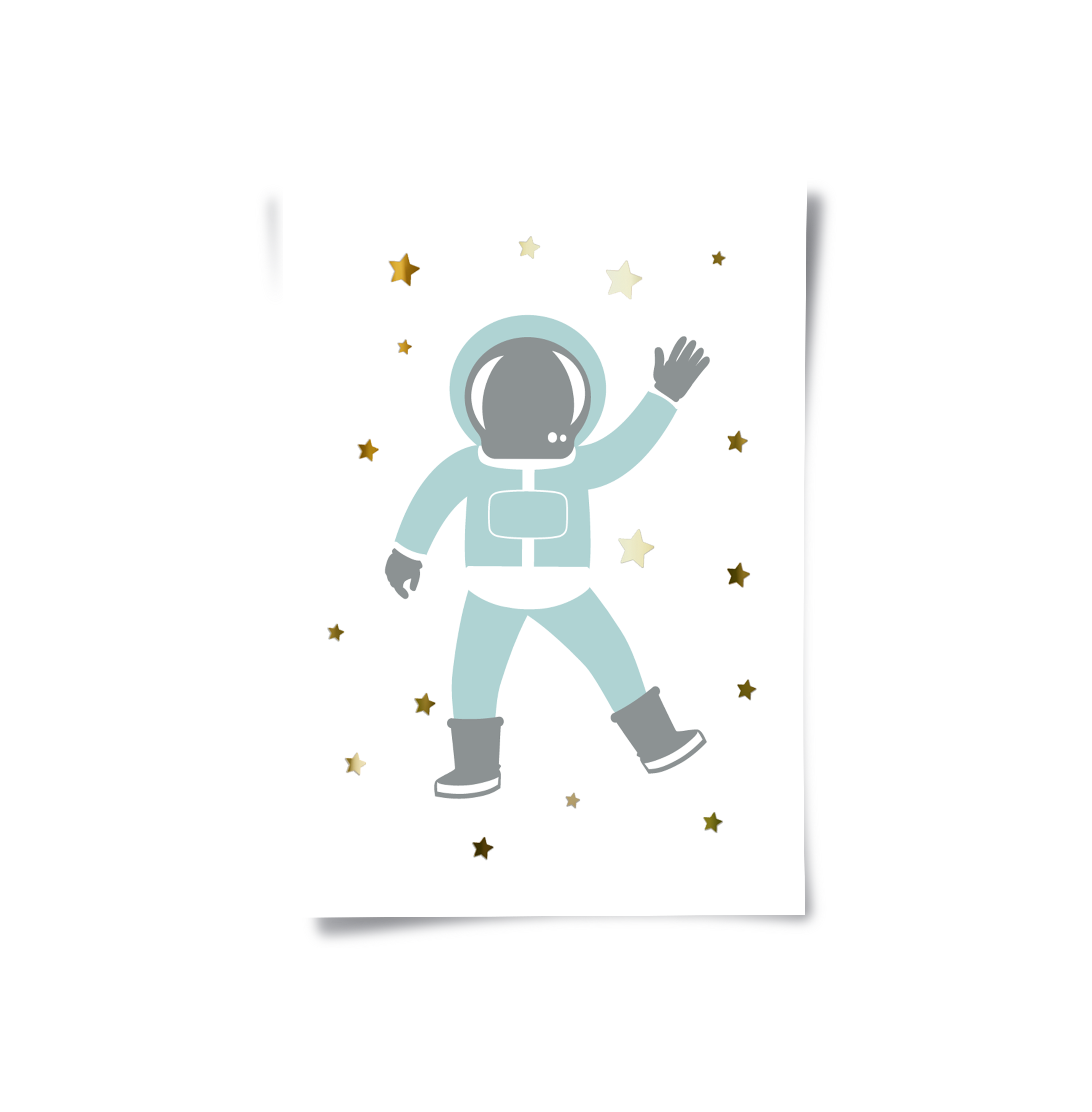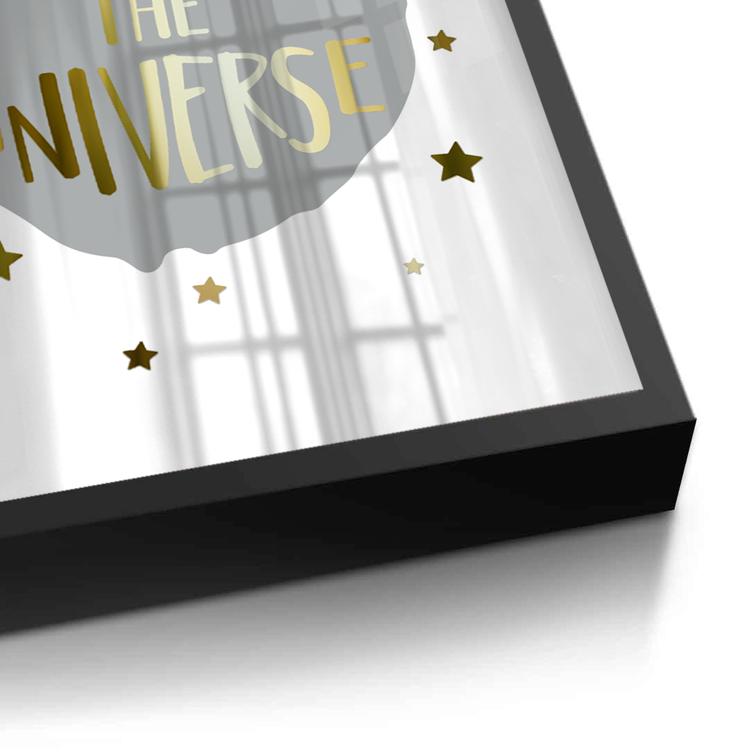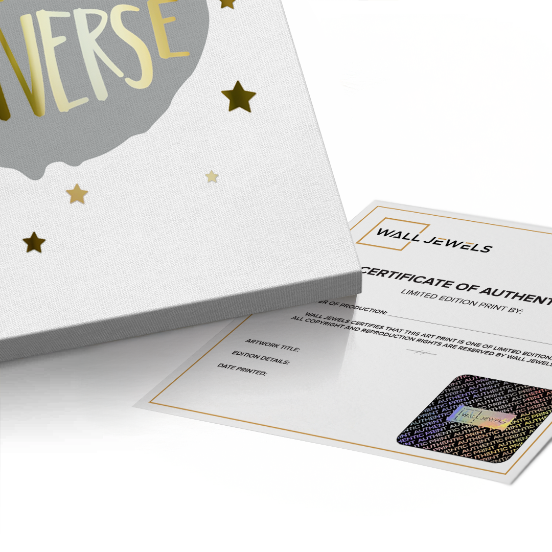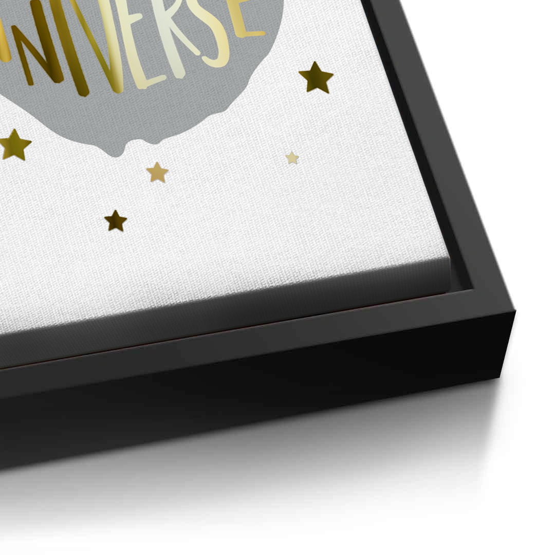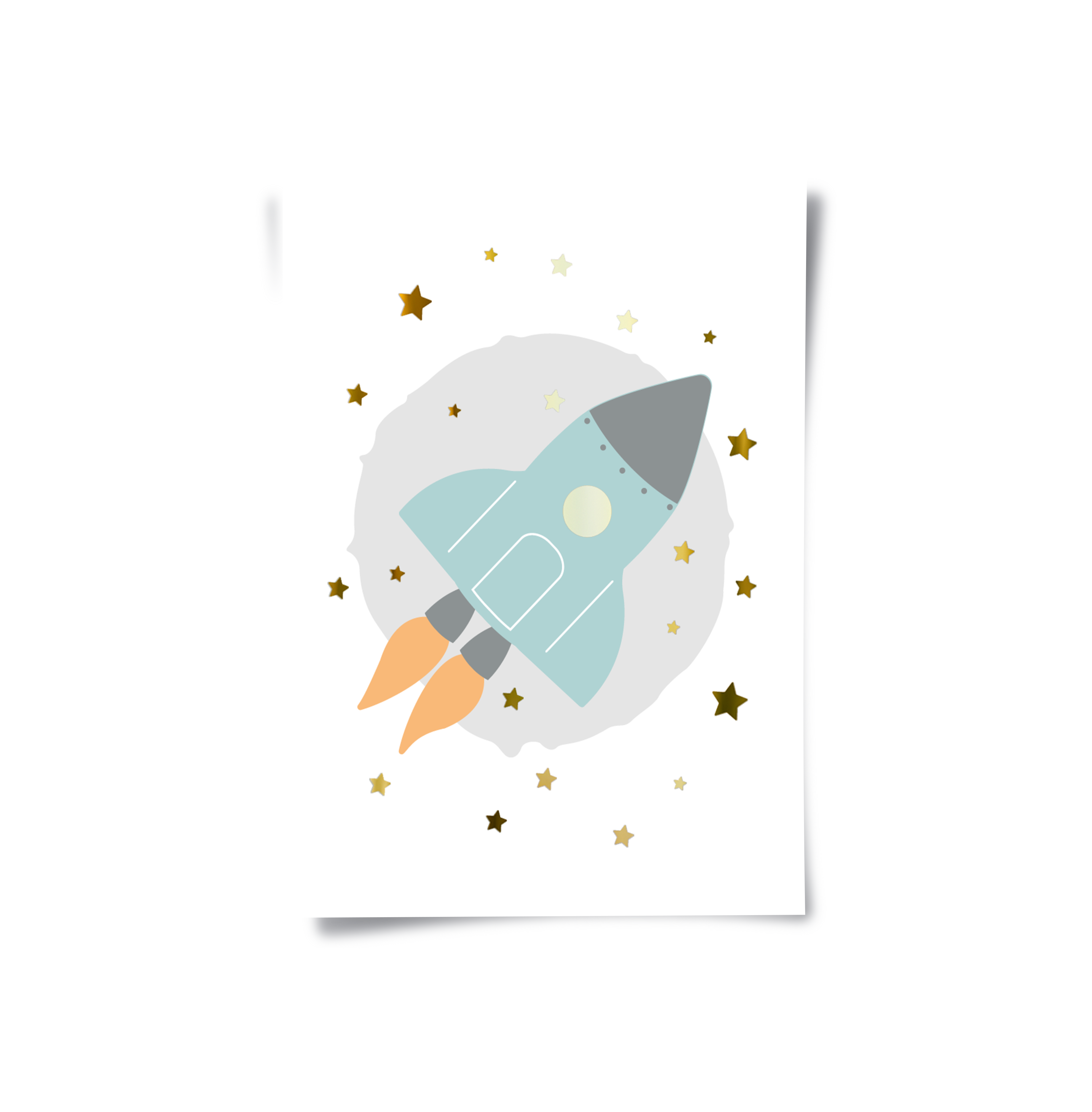 This adventurous gold foiled kids’ art set features a rocket, astronaut, and “Explore the Universe” design surrounded by golden stars. The shimmering gold foil details make it an exciting choice for nurseries, playrooms, or bedrooms.