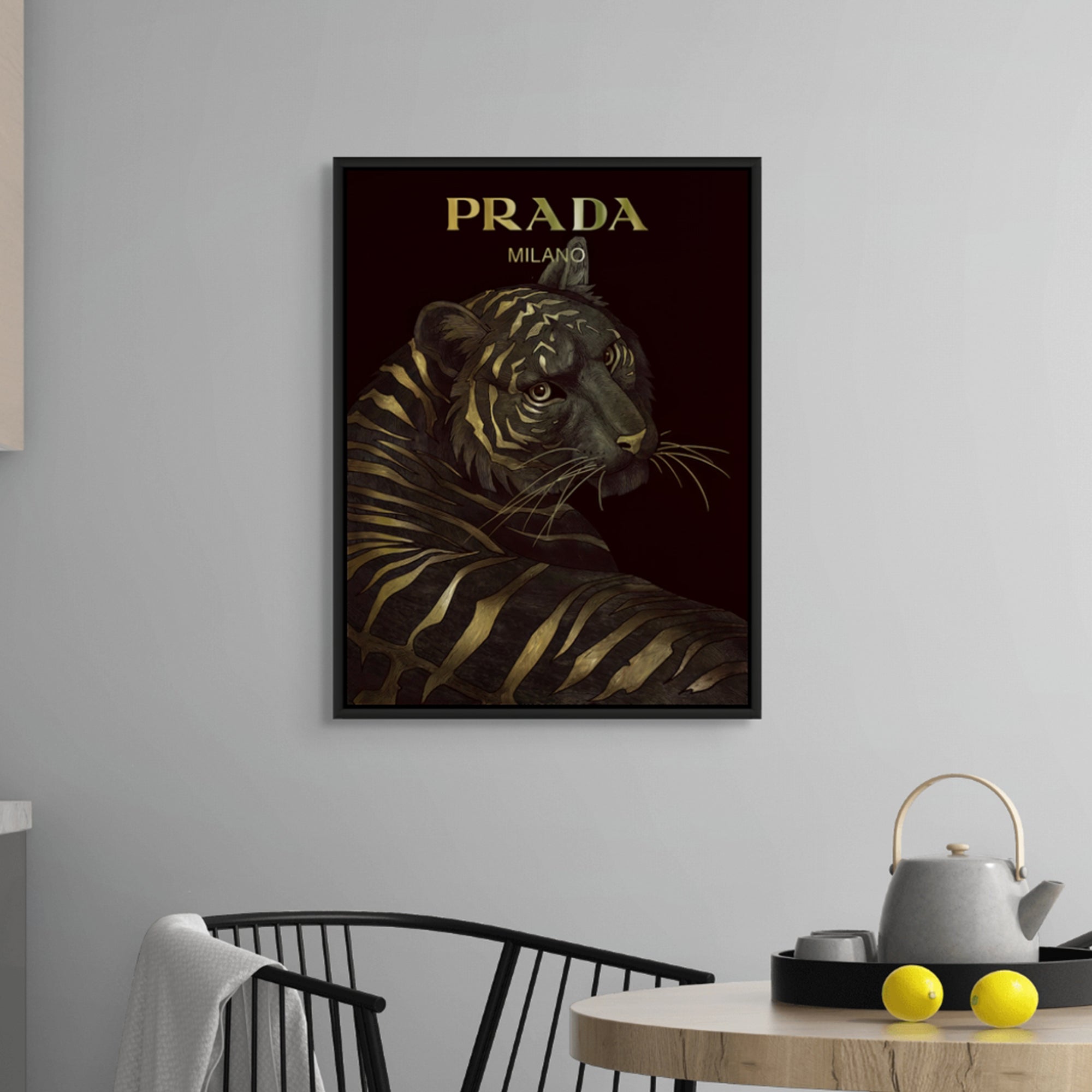 A powerful fusion of elegance and strength, this gold-foiled tiger artwork channels untamed spirit with high-fashion allure. Bold and regal, it brings a fierce, iconic edge to luxe spaces—perfect for lovers of Prada-inspired style.