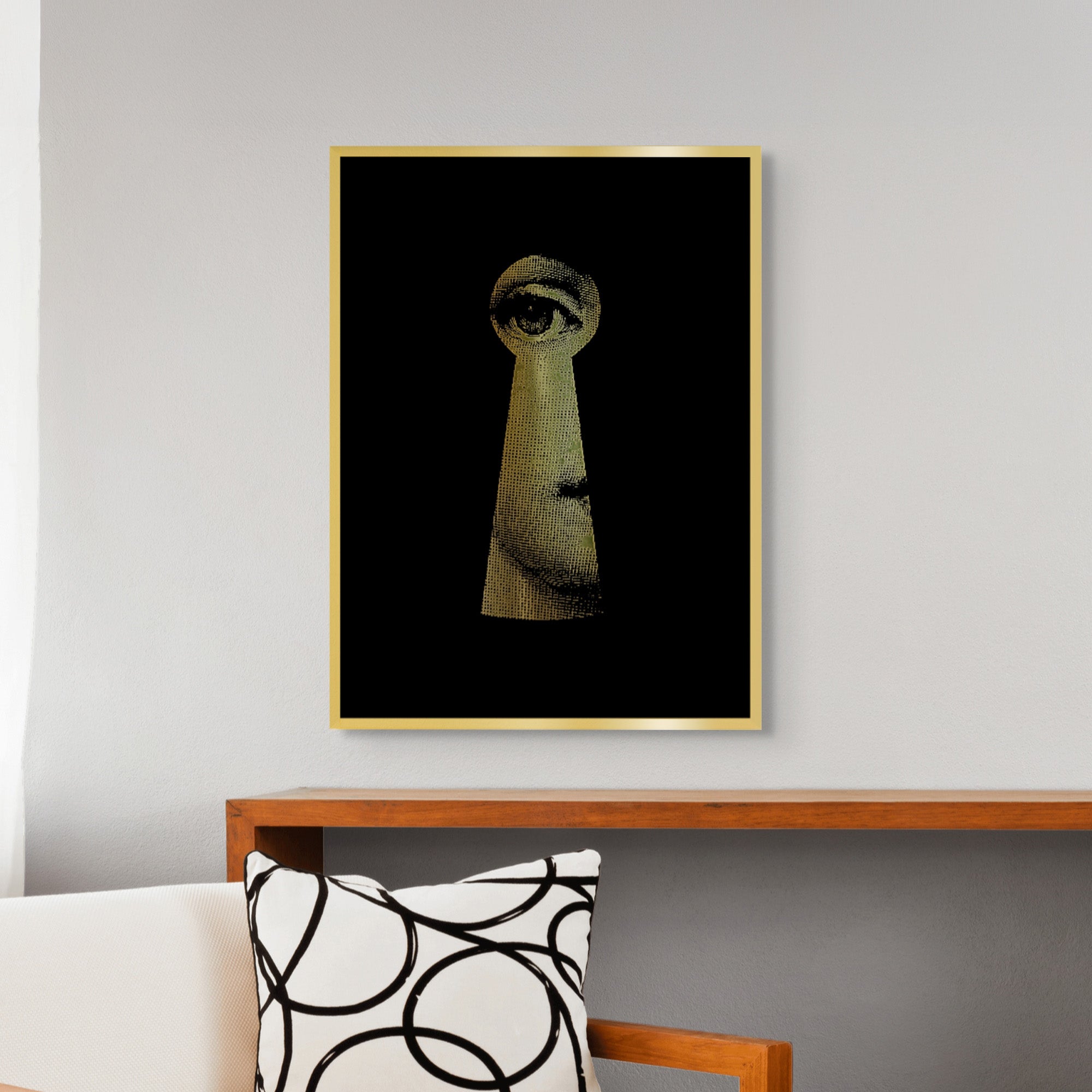 A nod to Fornasetti’s iconic muse, this gold-foiled piece invites quiet tension—part voyeur, part art icon. Ideal for collectors, bold gallery walls, or edgy interiors that lean toward surreal elegance and classic design heritage.