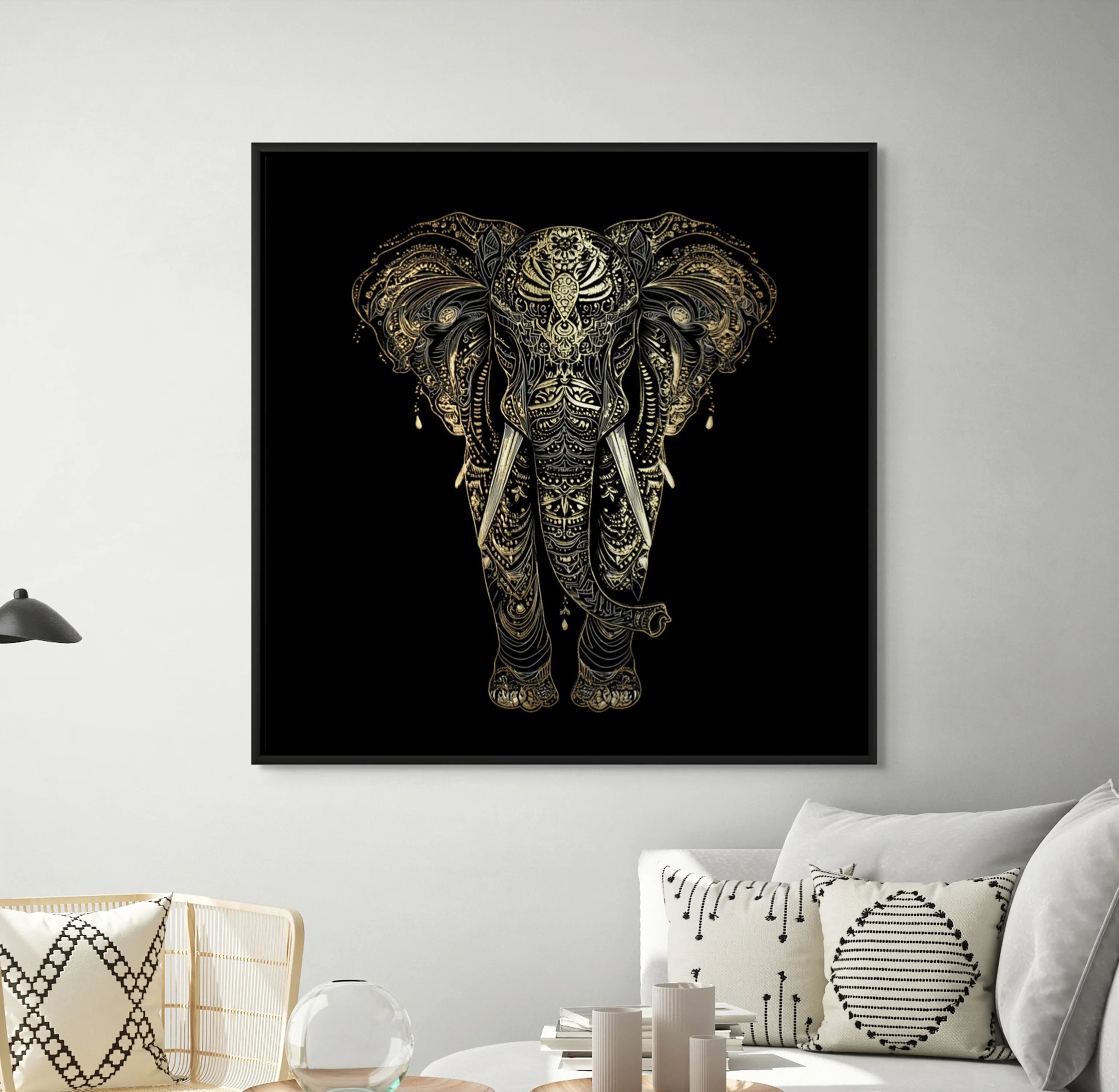 A powerful fusion of strength and artistry, this striking elephant design is adorned with intricate Indian patterns and real gold foiling. A bold statement for living rooms, entryways, or those who embrace culture, symbolism, and majestic energy.