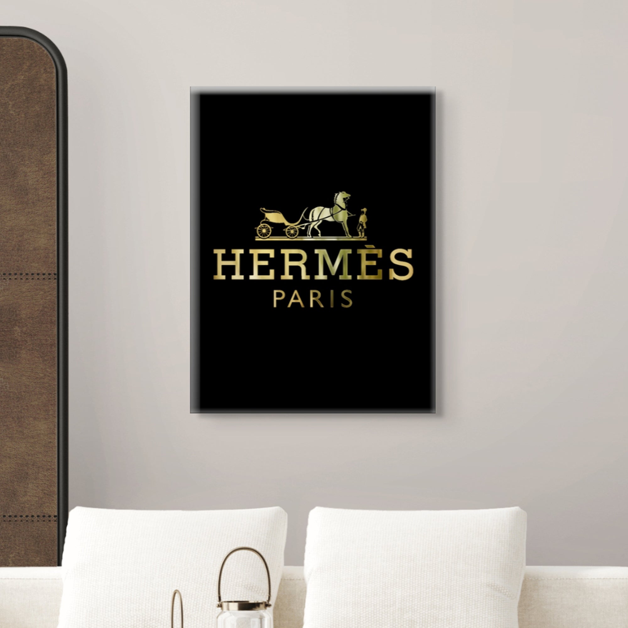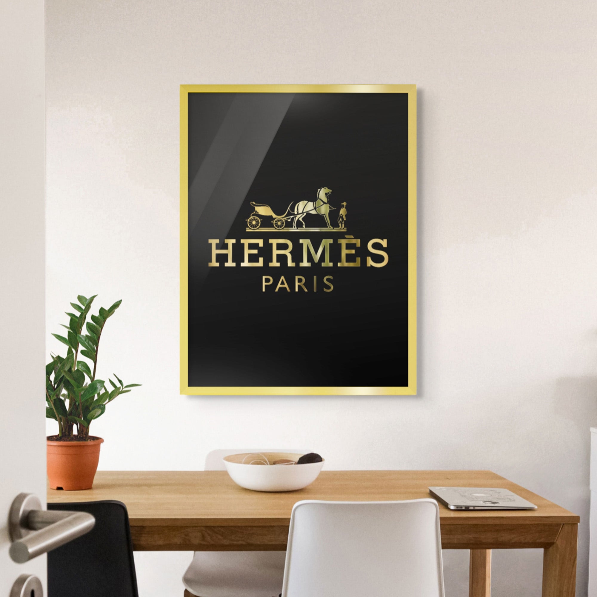 This gold-foiled Hermes Paris artwork channels pure sophistication and legacy. With its iconic branding and rich contrast, it makes a bold, elegant statement—perfect for elevating fashion-forward interiors with timeless Parisian charm and prestige.