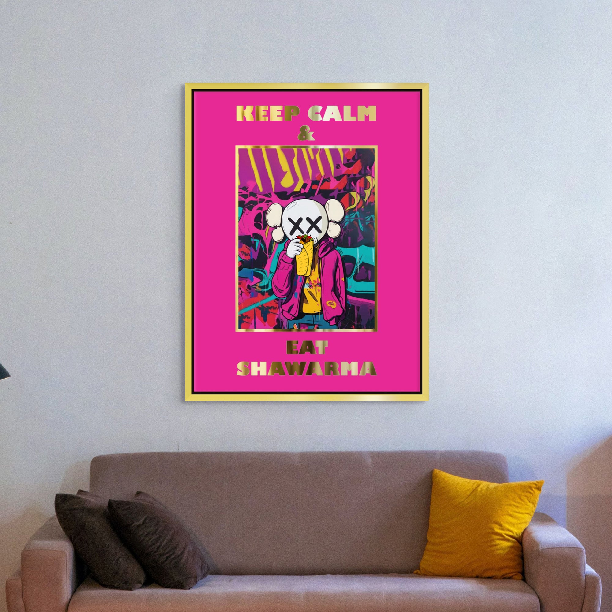 Get ready to level up your space with this KAWS-inspired wall art! Featuring KAWS munching on shawarma with bold gold leaf lettering, it's the ultimate statement piece for shawarma lovers in the UAE.