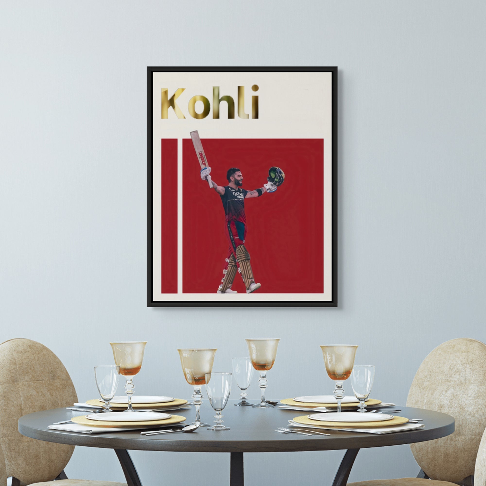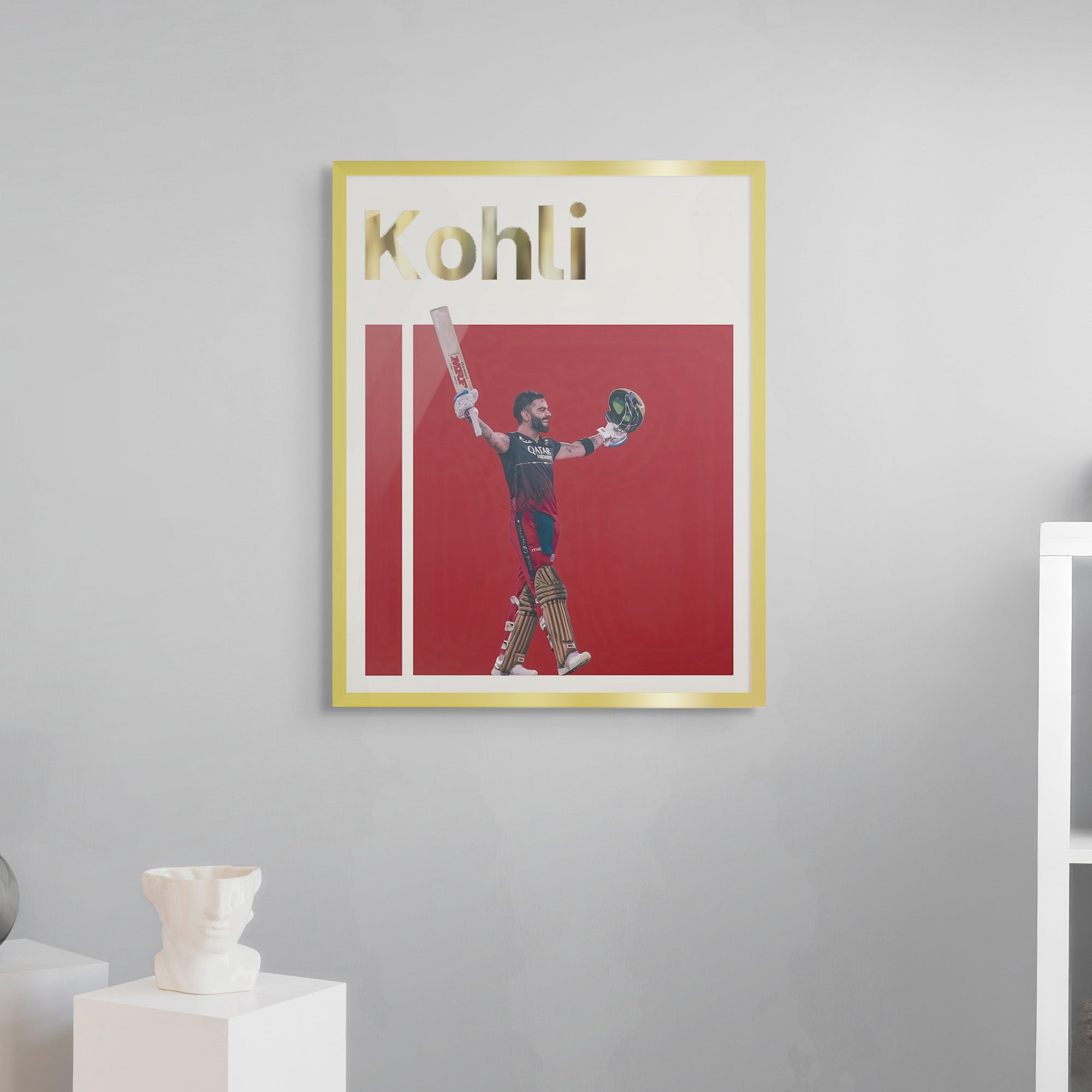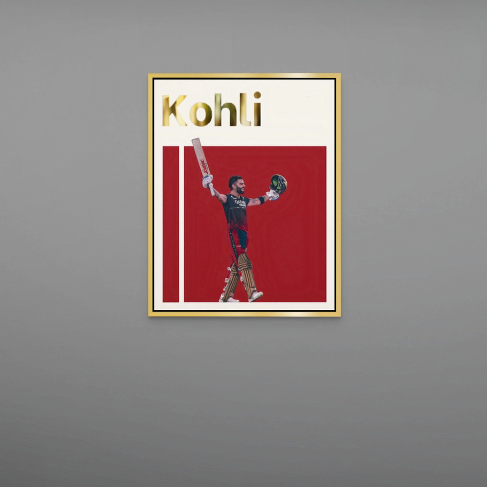 Virat Kohli celebrates with trademark intensity in this powerful artwork that captures his dominance and drive. Featuring premium gold foiling, it’s ideal for bedrooms, fan walls, or any space dedicated to cricket’s modern legend.
