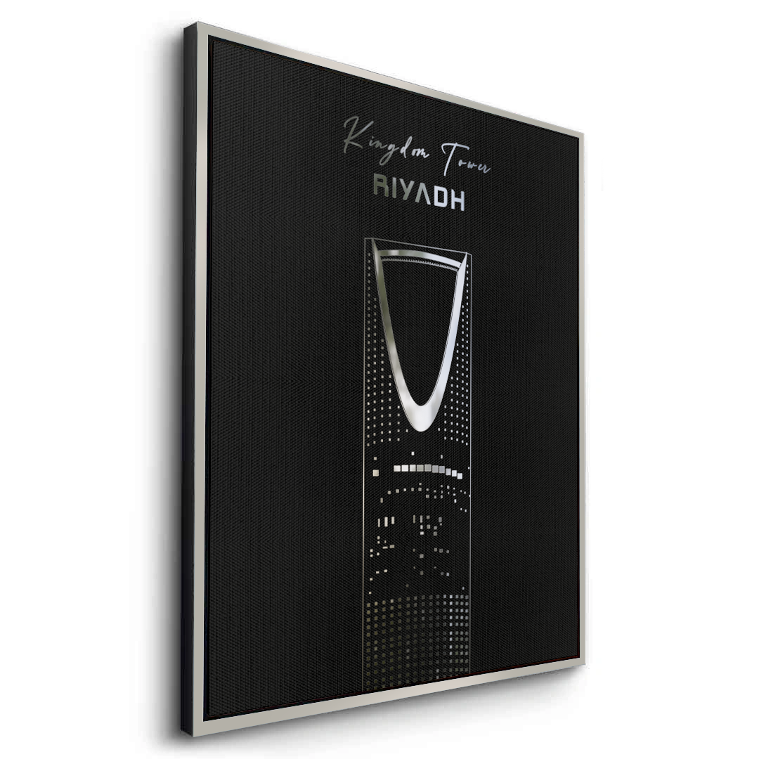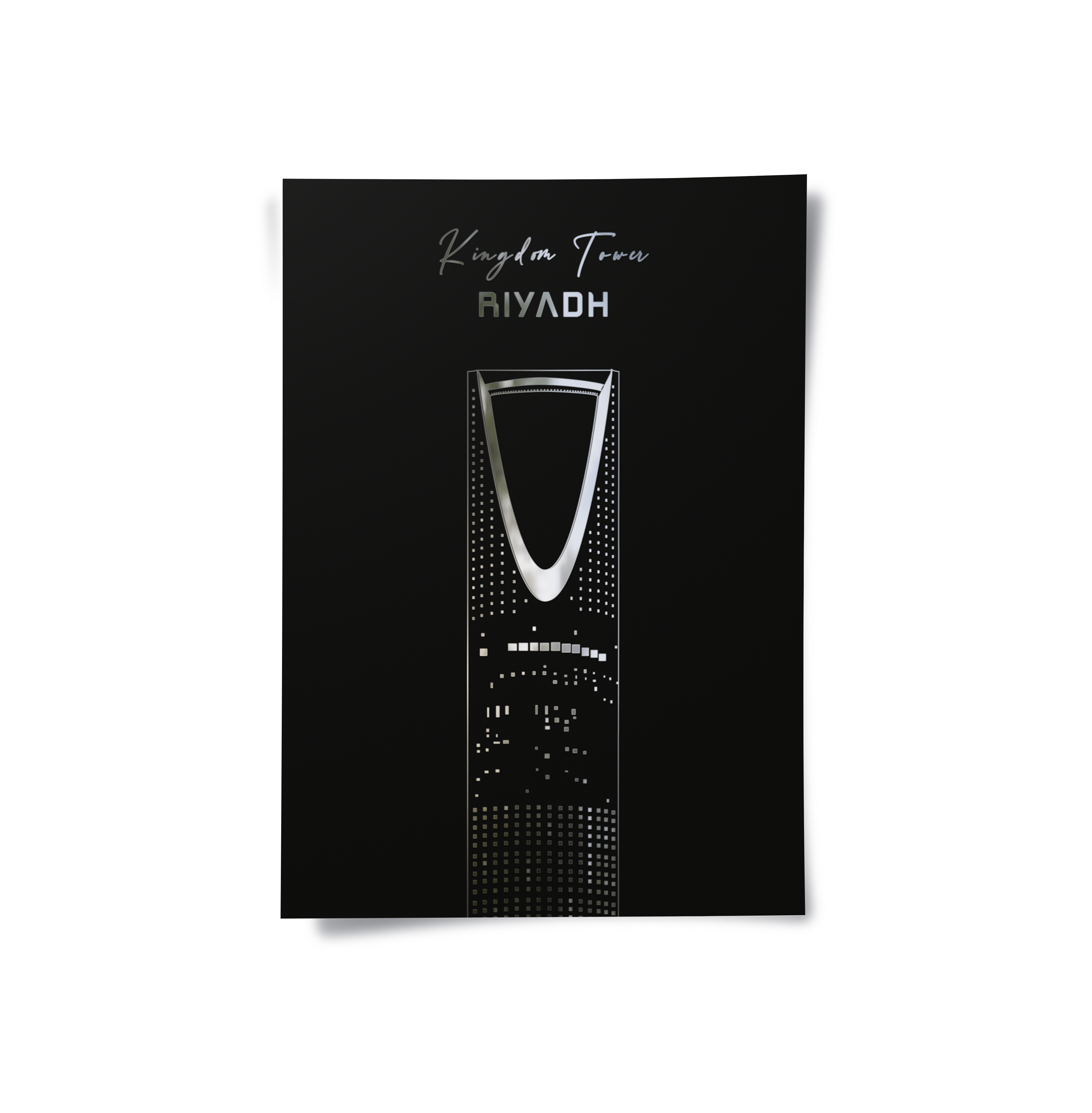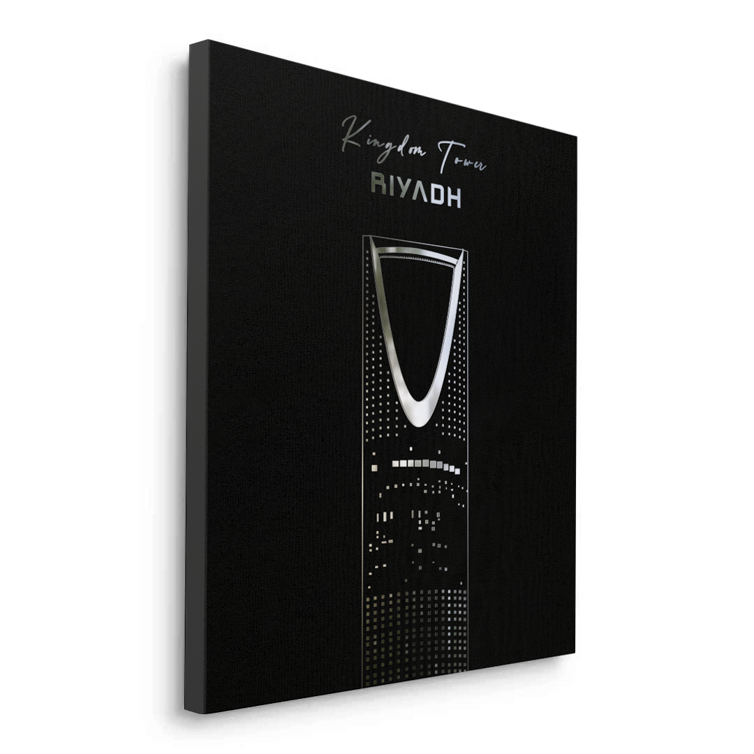 Featuring the renowned Kingdom Tower in silver foil, this artwork highlights Riyadh’s architectural brilliance. With its bold symmetry and luminous design, it enhances living rooms, offices, or contemporary spaces with a touch of Saudi sophistication.