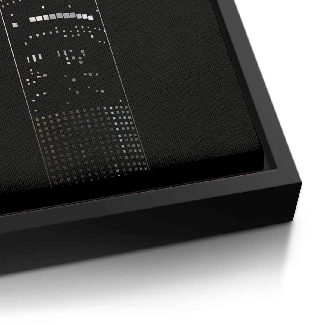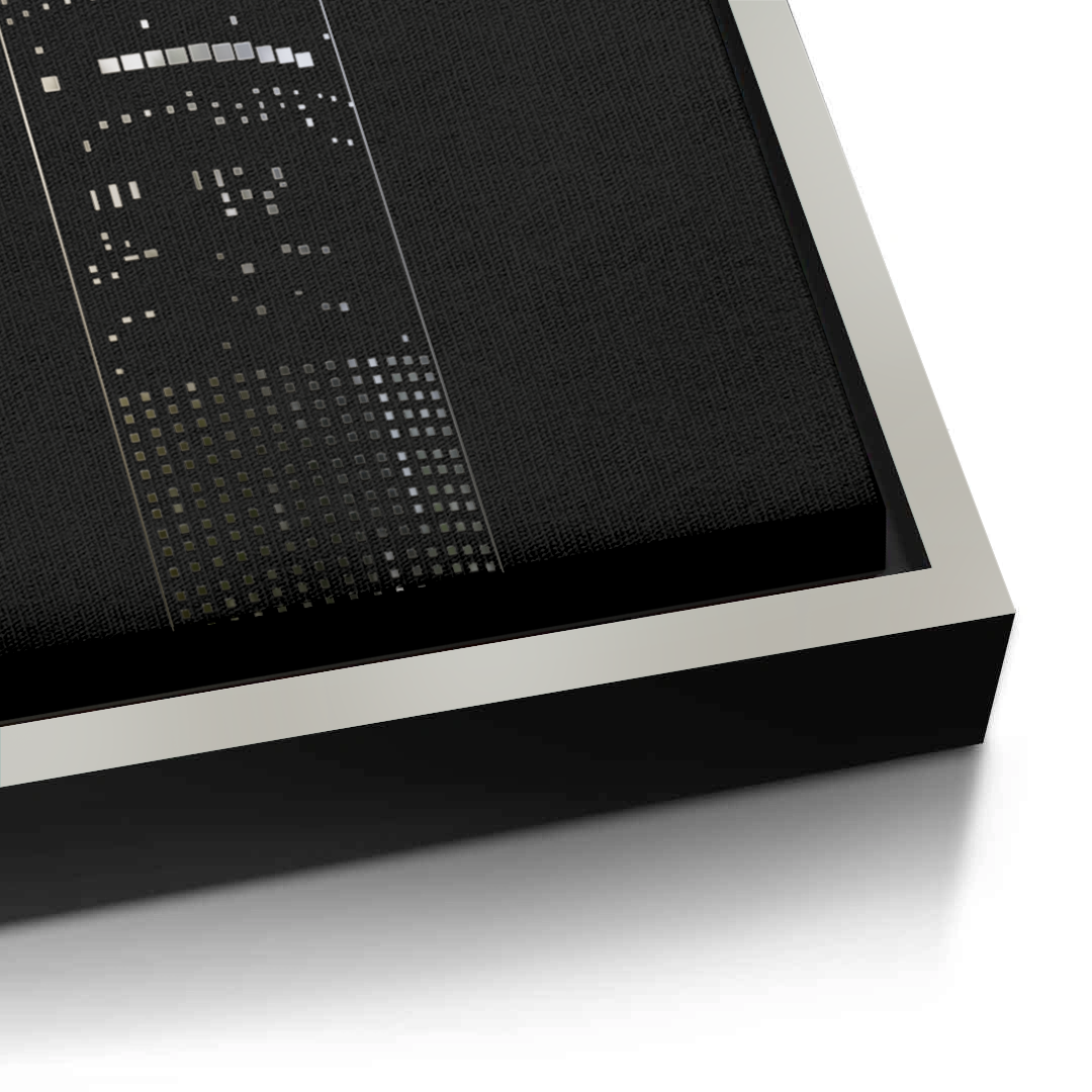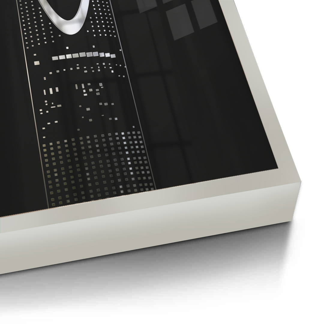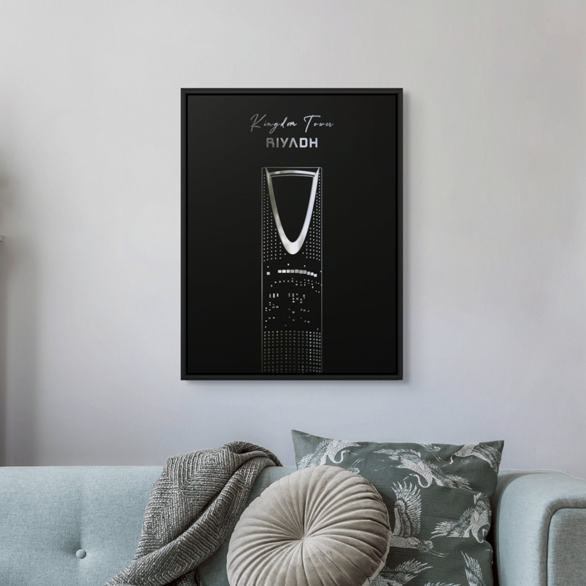 Featuring the renowned Kingdom Tower in silver foil, this artwork highlights Riyadh’s architectural brilliance. With its bold symmetry and luminous design, it enhances living rooms, offices, or contemporary spaces with a touch of Saudi sophistication.