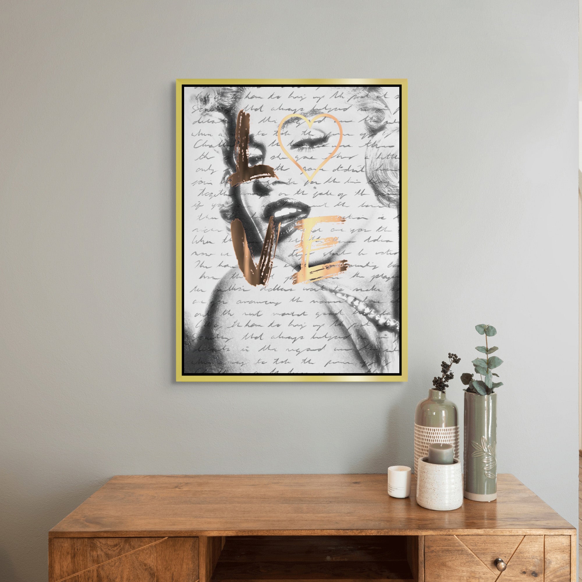Celebrate the charm of Marilyn Monroe with this vibrant pop art piece, detailed with metallic gold leaf foiling. Perfect for adding a playful, retro-inspired vibe to bedrooms, dressing rooms, or stylish living spaces.