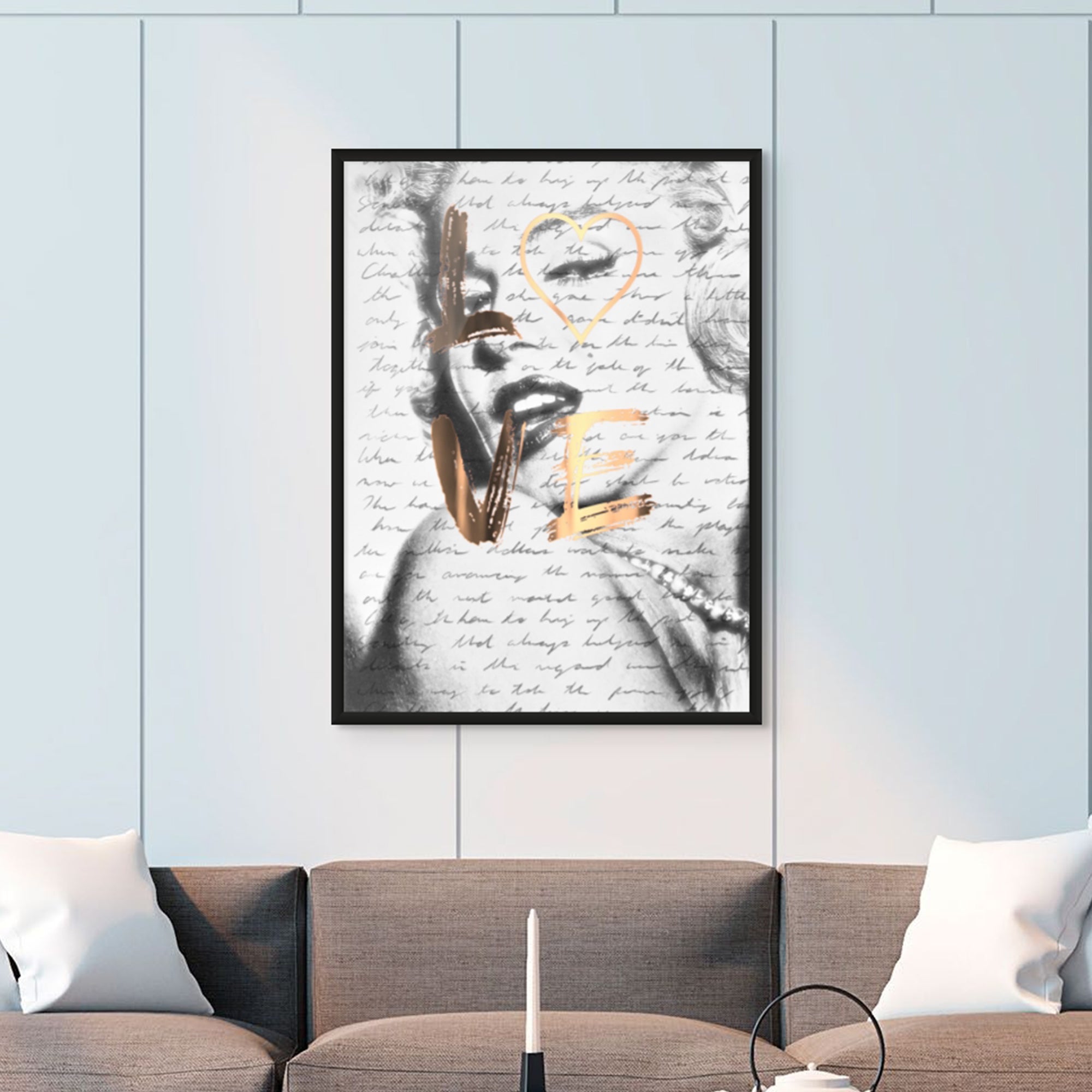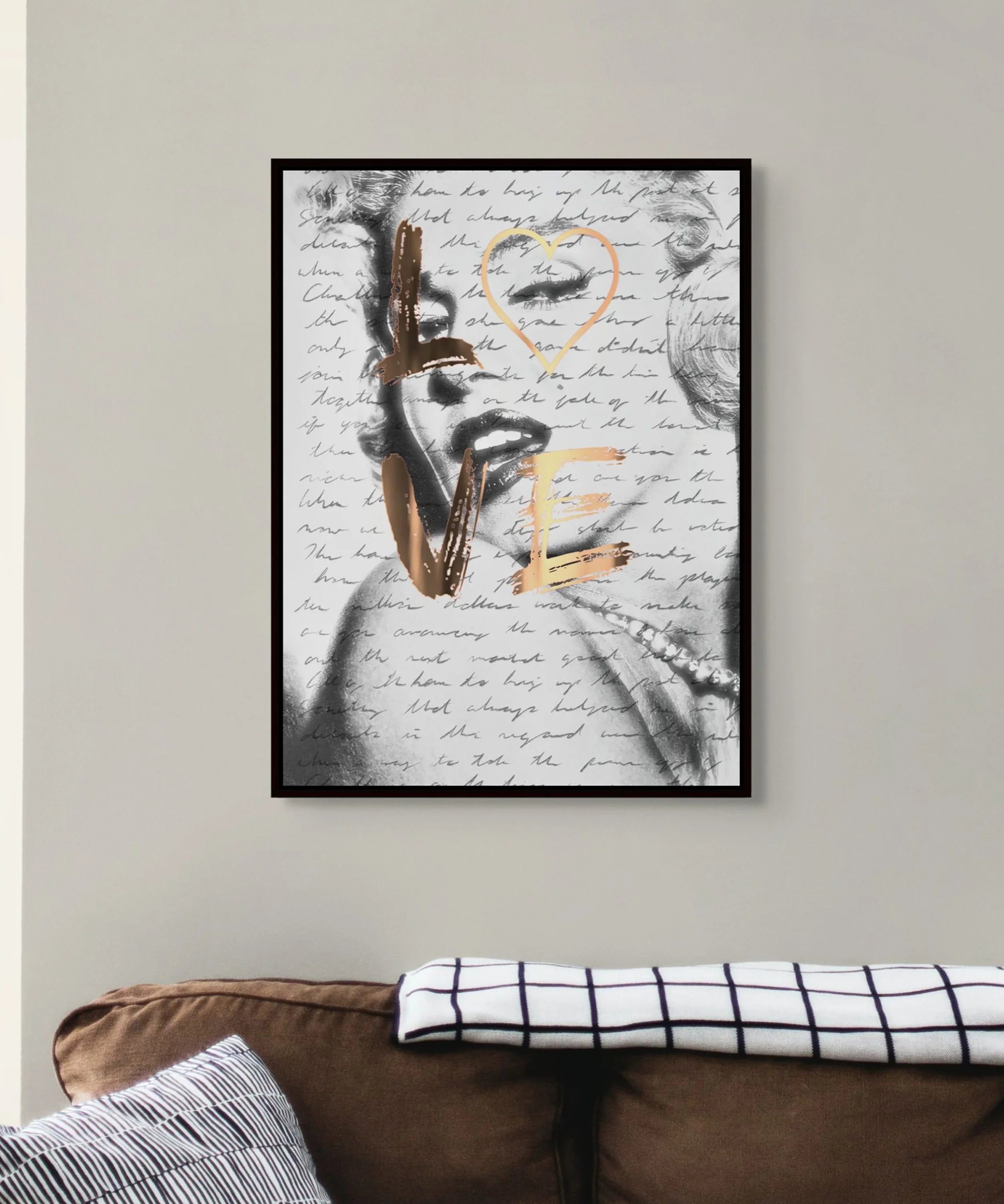 Celebrate the charm of Marilyn Monroe with this vibrant pop art piece, detailed with metallic gold leaf foiling. Perfect for adding a playful, retro-inspired vibe to bedrooms, dressing rooms, or stylish living spaces.