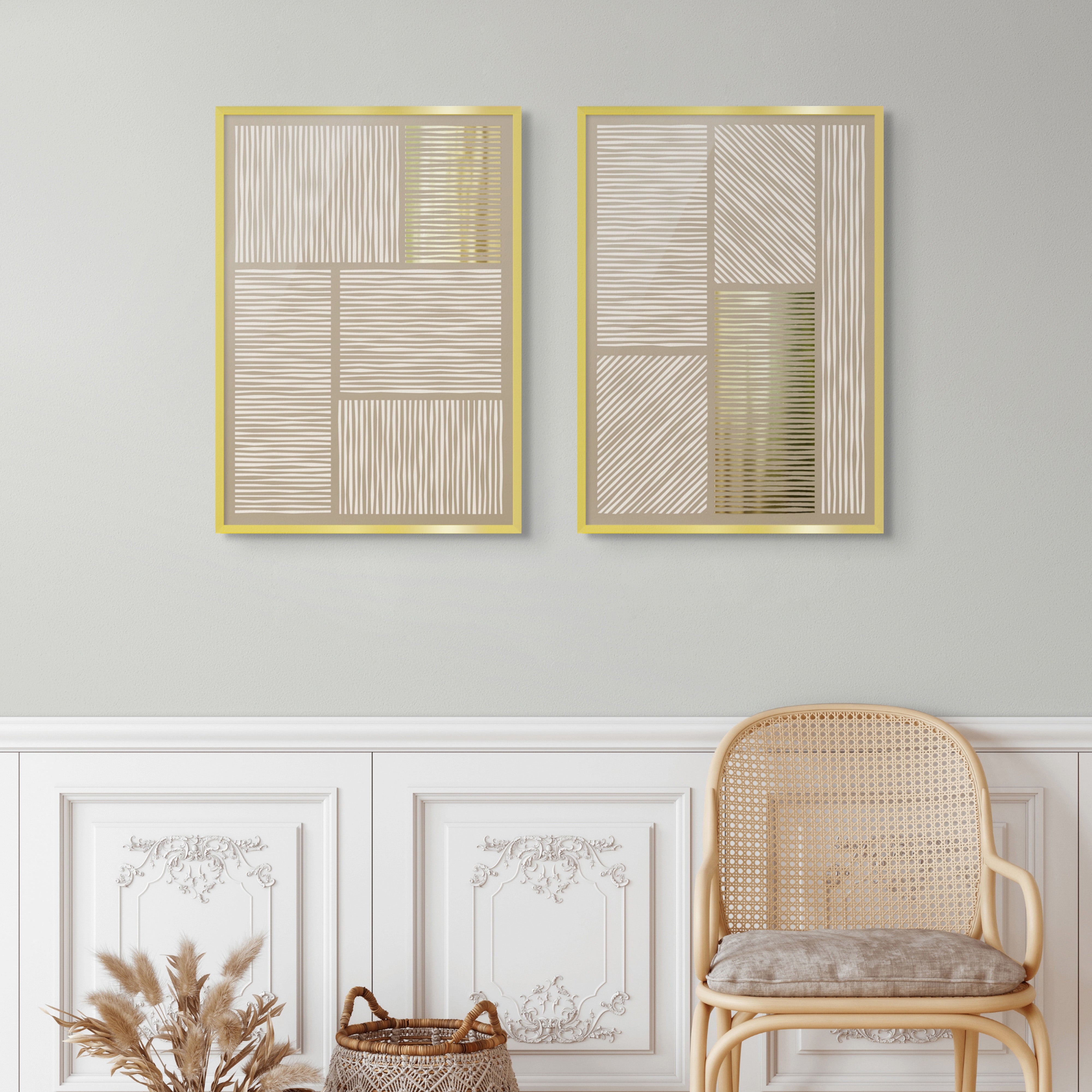 A sleek composition of hand-drawn linear textures paired with soft neutrals and subtle gold foiling. This modern duo brings depth and movement to minimalist interiors—ideal for calm corners, creative walls, or lovers of understated geometry.