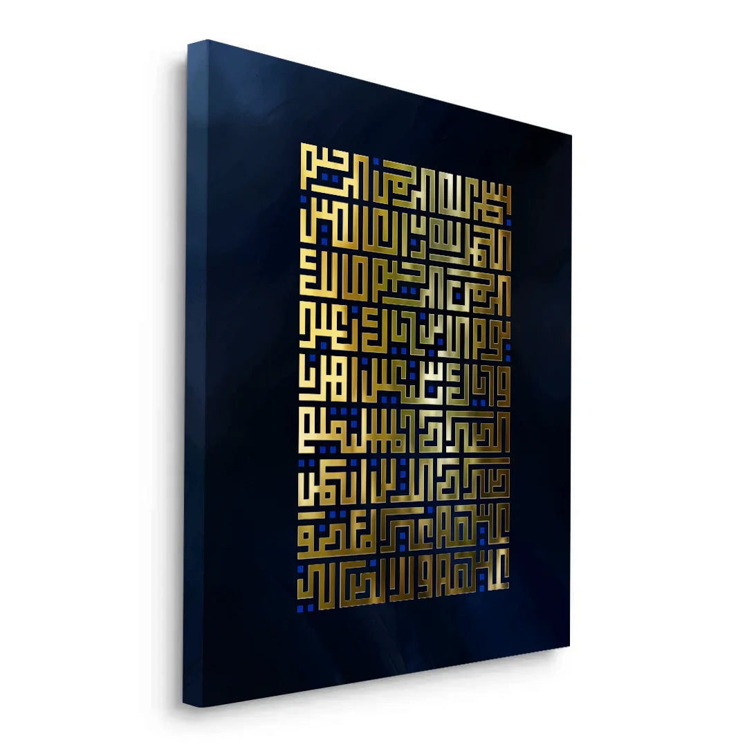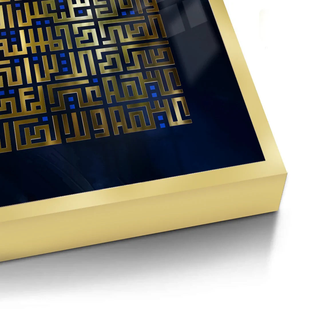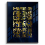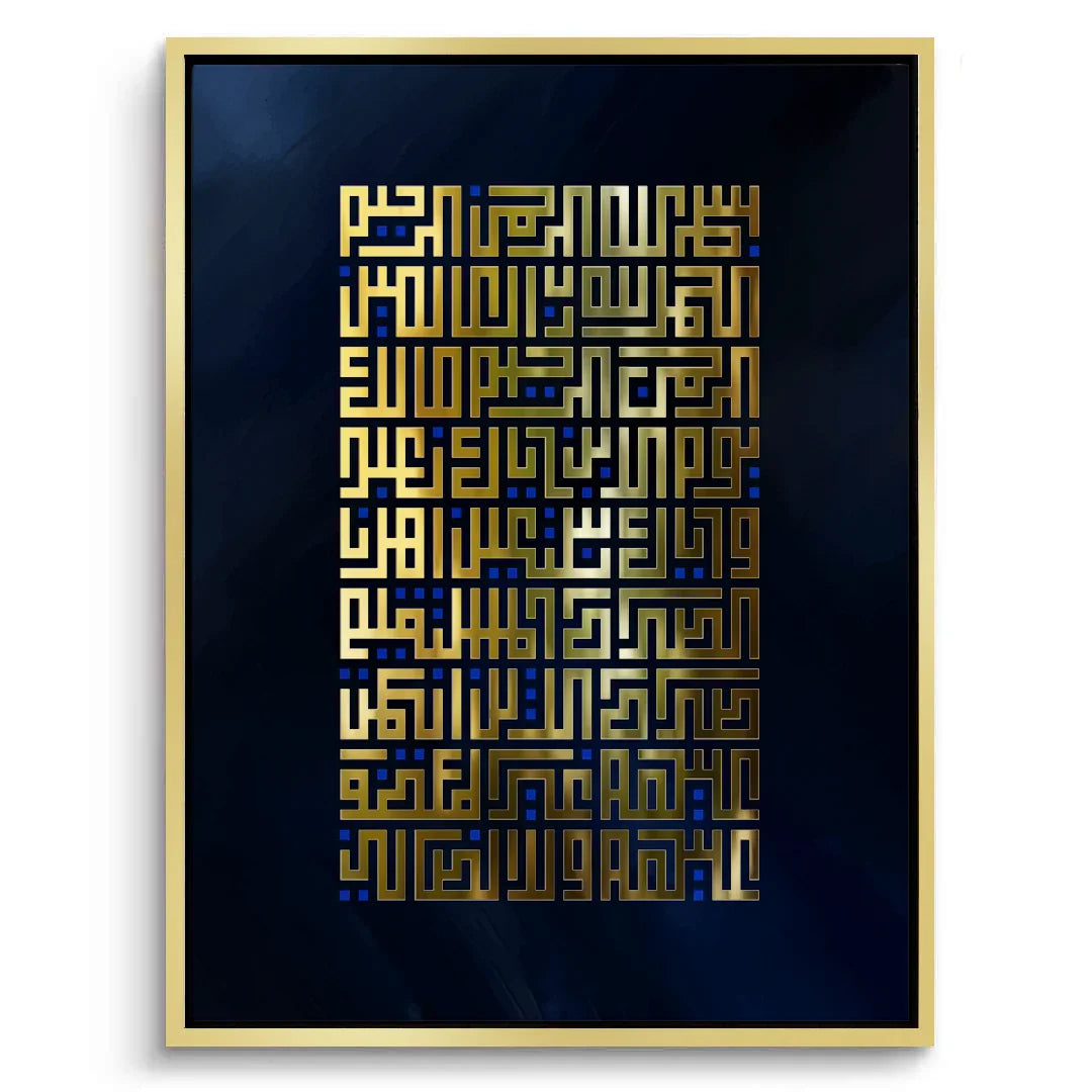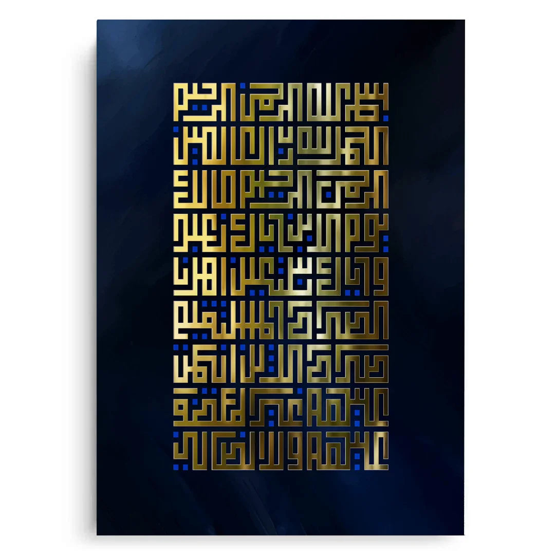 Add spiritual elegance to your space with this beautiful wall art featuring Surah Fatihah in Arabic Kufic calligraphy. Gold leaf foil elevates the design, making it an ideal piece for your home.