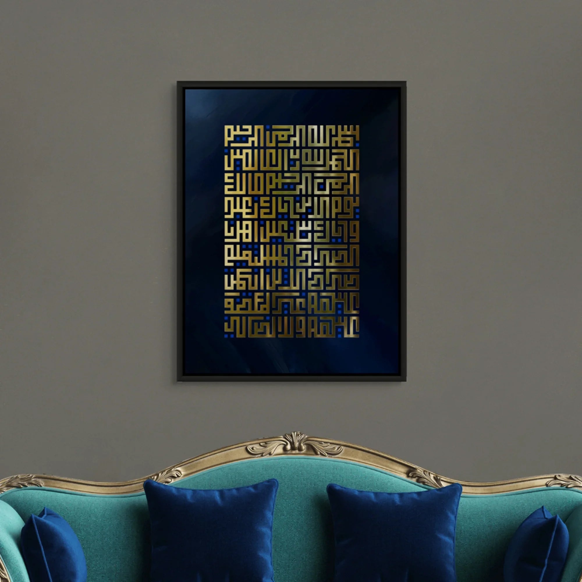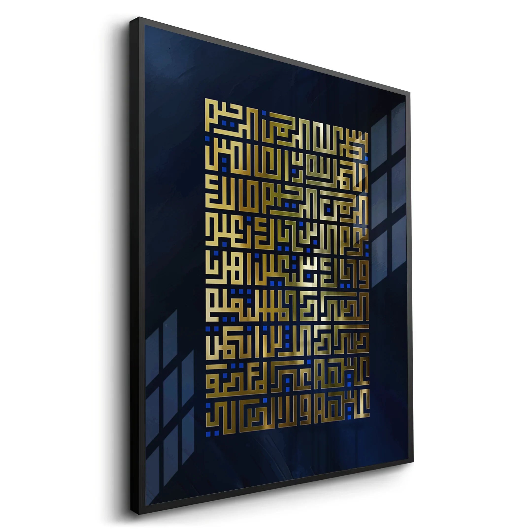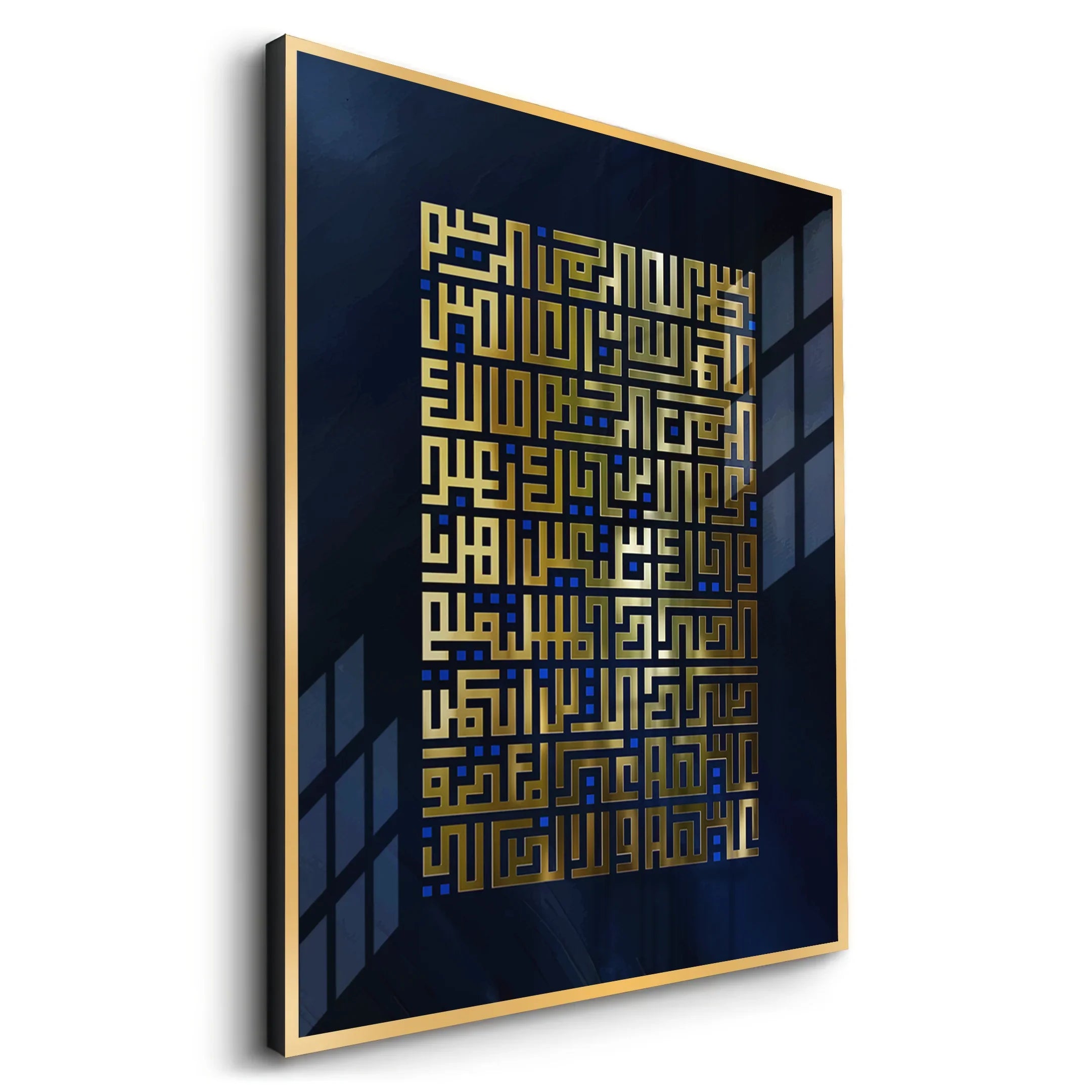 Add spiritual elegance to your space with this beautiful wall art featuring Surah Fatihah in Arabic Kufic calligraphy. Gold leaf foil elevates the design, making it an ideal piece for your home.
