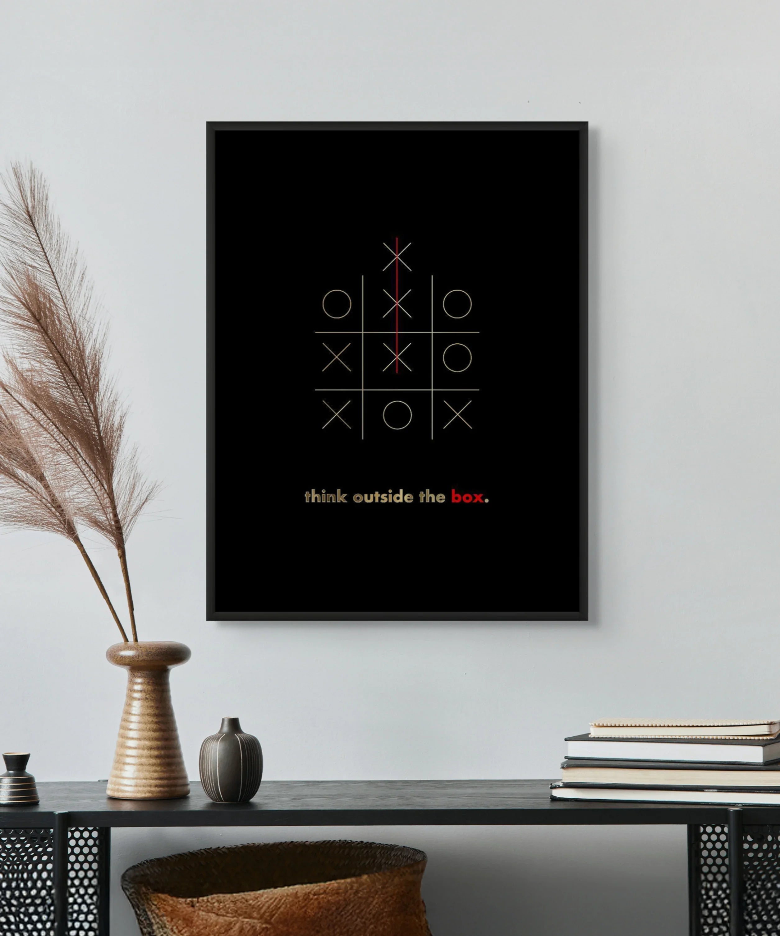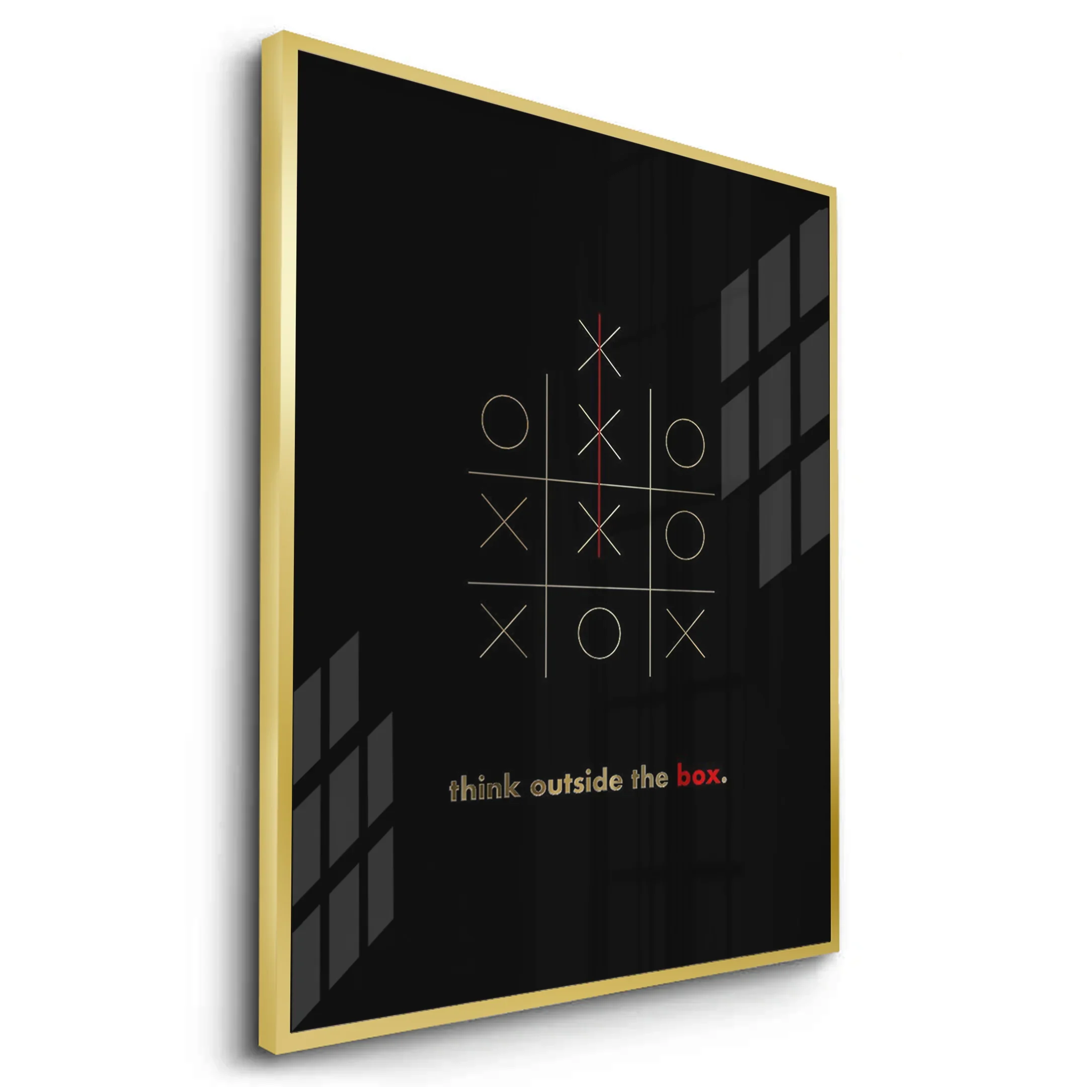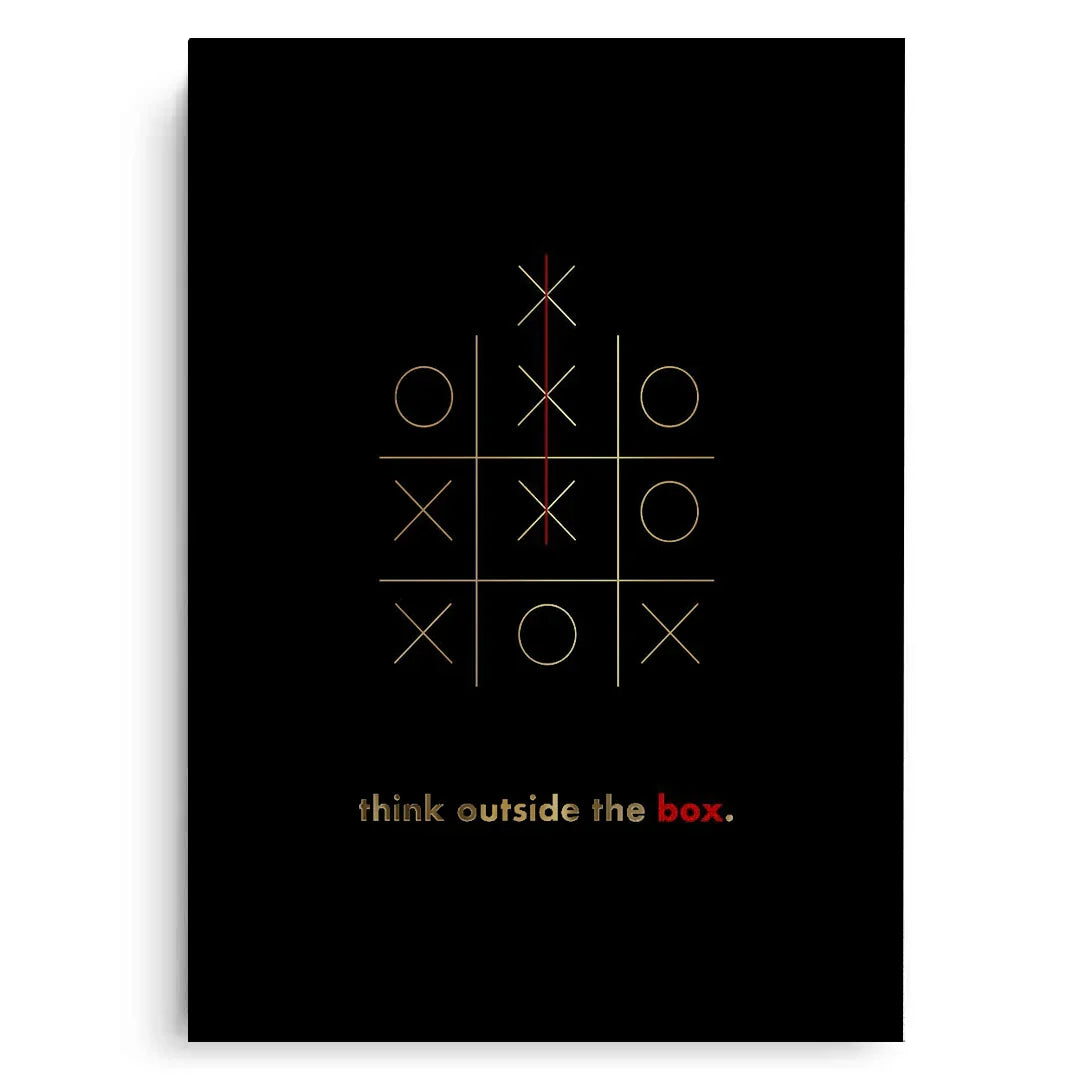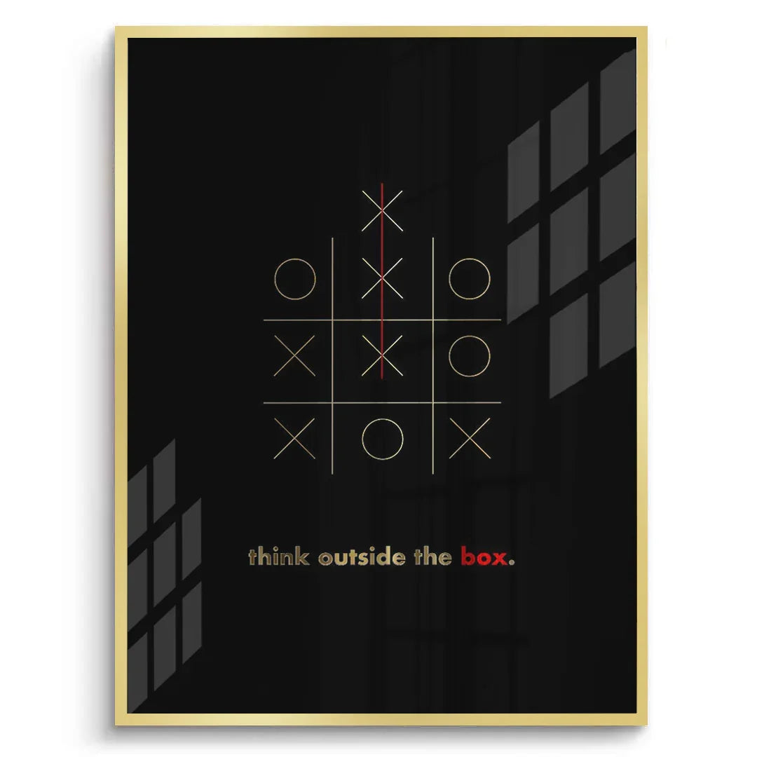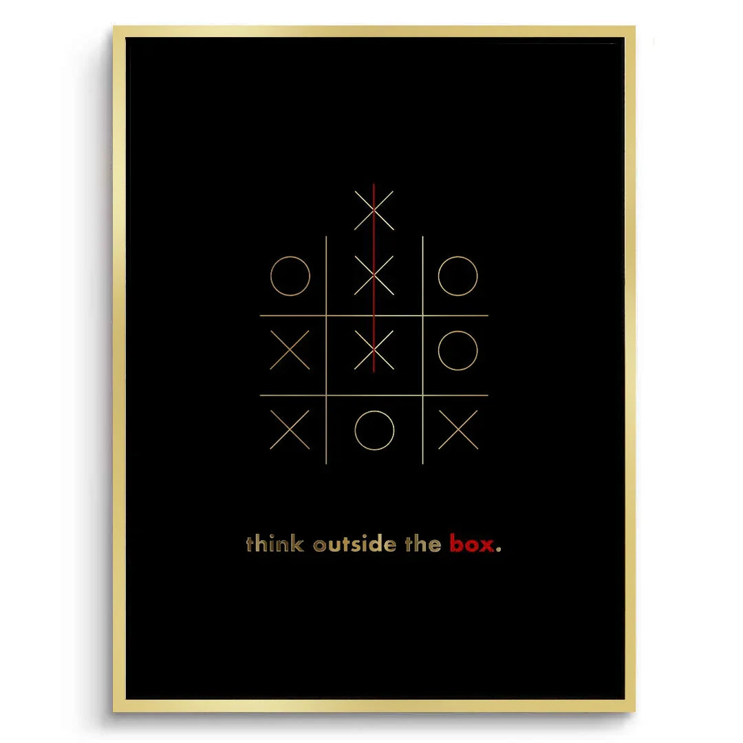 Ignite creativity with this inspiring wall art, crafted with genuine gold leaf foil and a powerful "think outside the box" message. Perfect for offices, bedrooms, studios, or any modern space seeking bold, uplifting energy.
