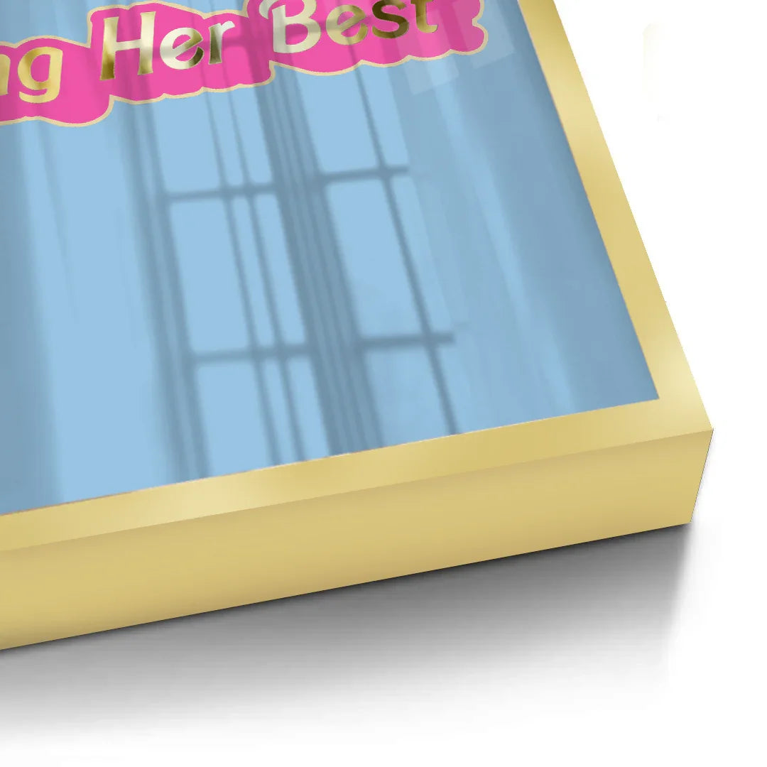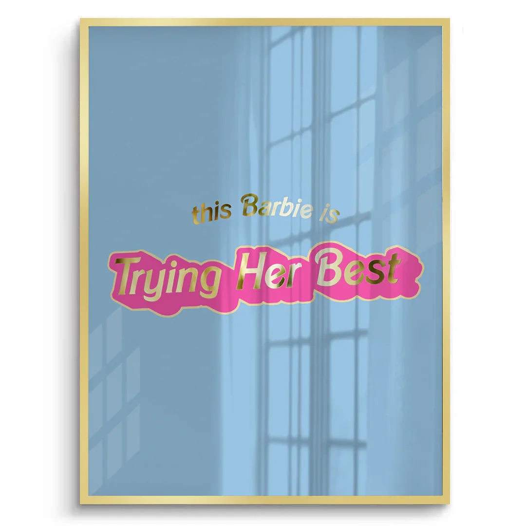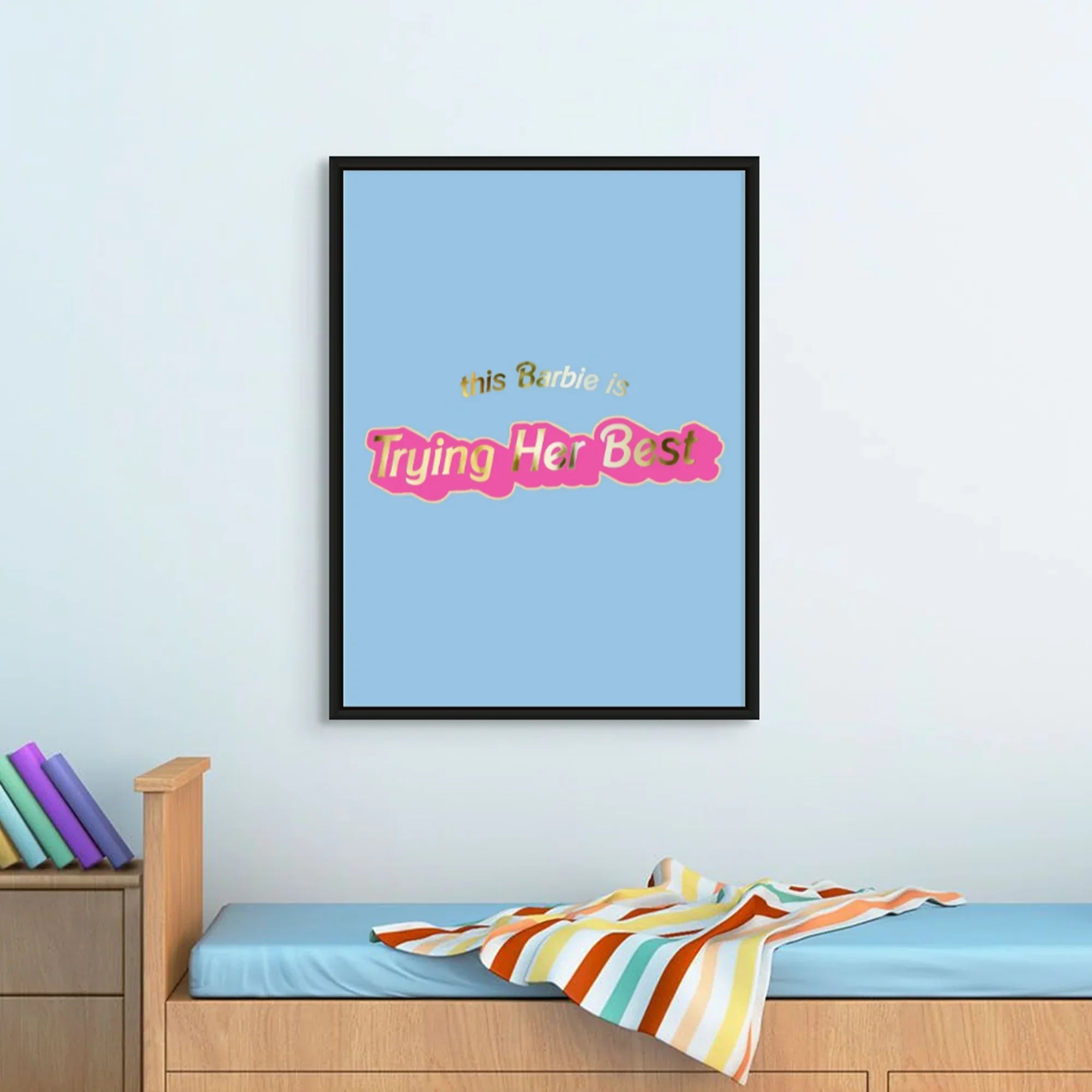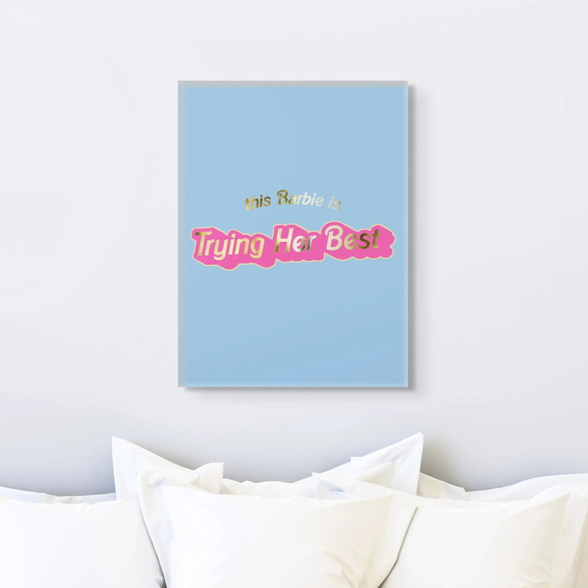 This artwork is for the girls doing their best — one imperfect day at a time. With gold foiled detail and playful Barbie-inspired typography, it brings warmth to vanities, dressing rooms, dorms, or self-love corners.