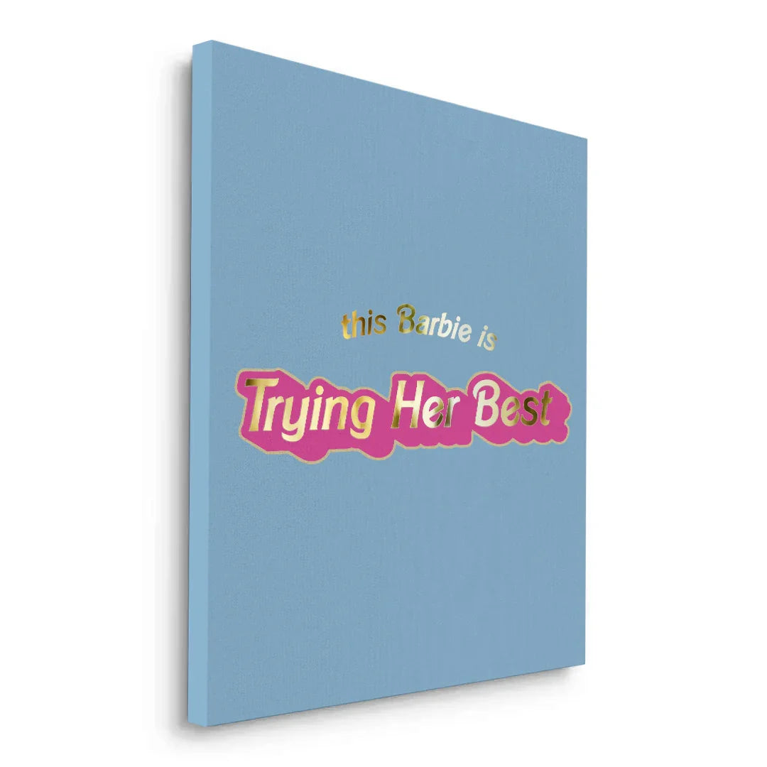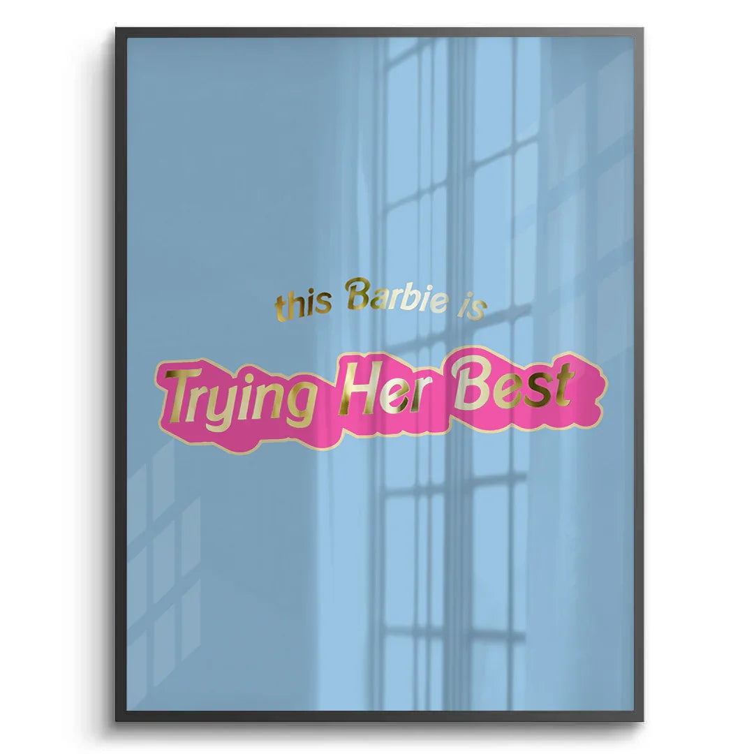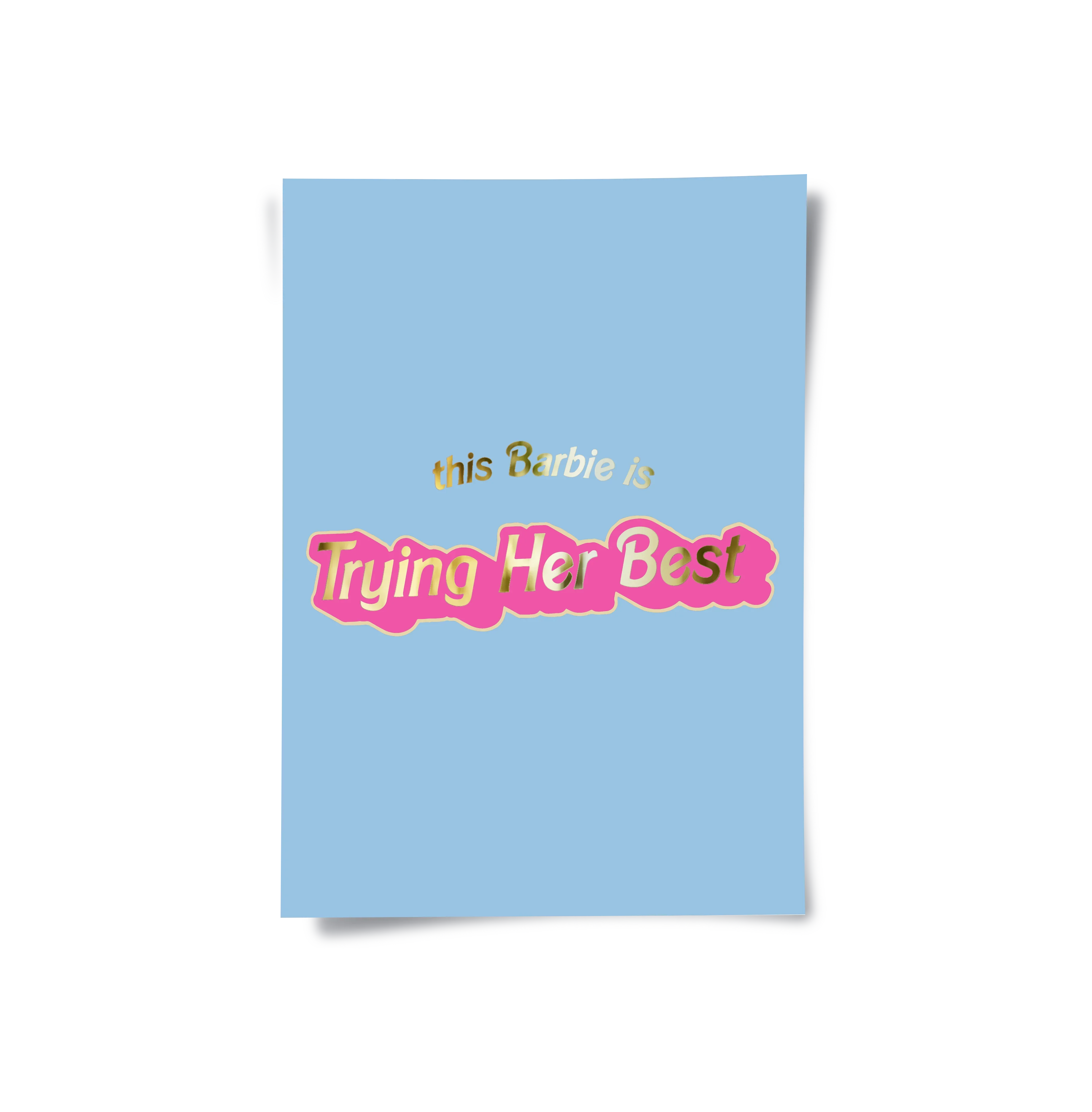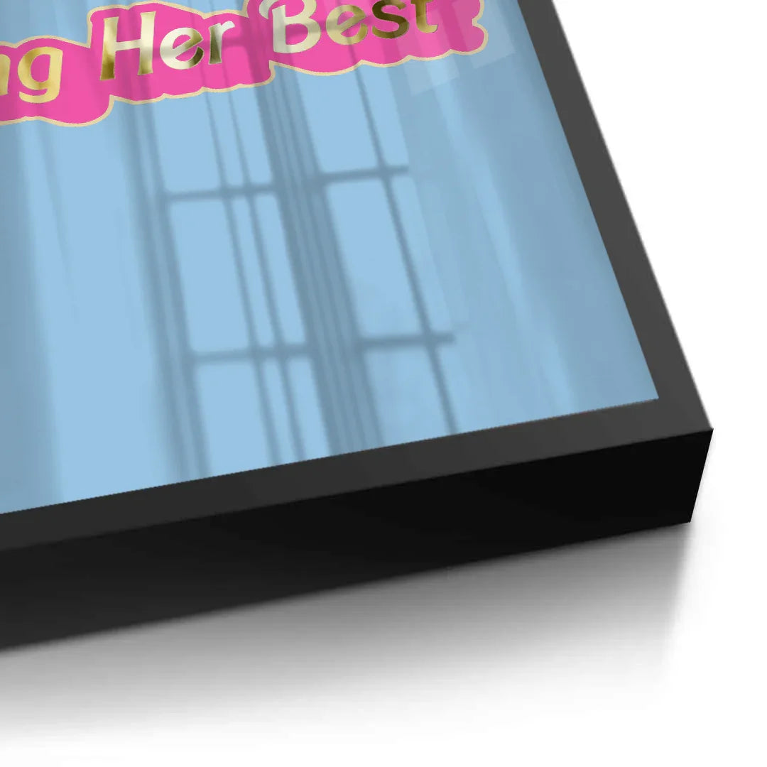 This artwork is for the girls doing their best — one imperfect day at a time. With gold foiled detail and playful Barbie-inspired typography, it brings warmth to vanities, dressing rooms, dorms, or self-love corners.