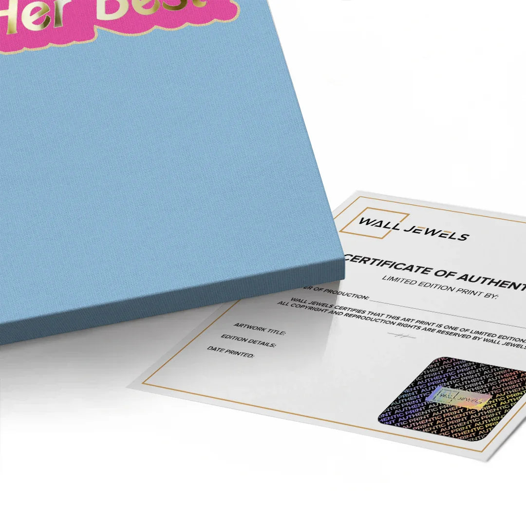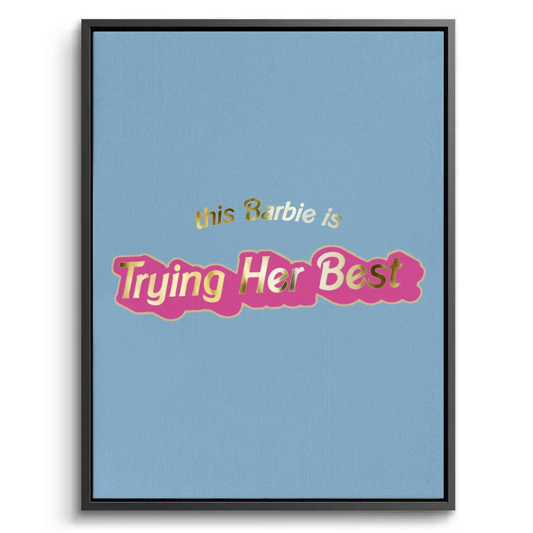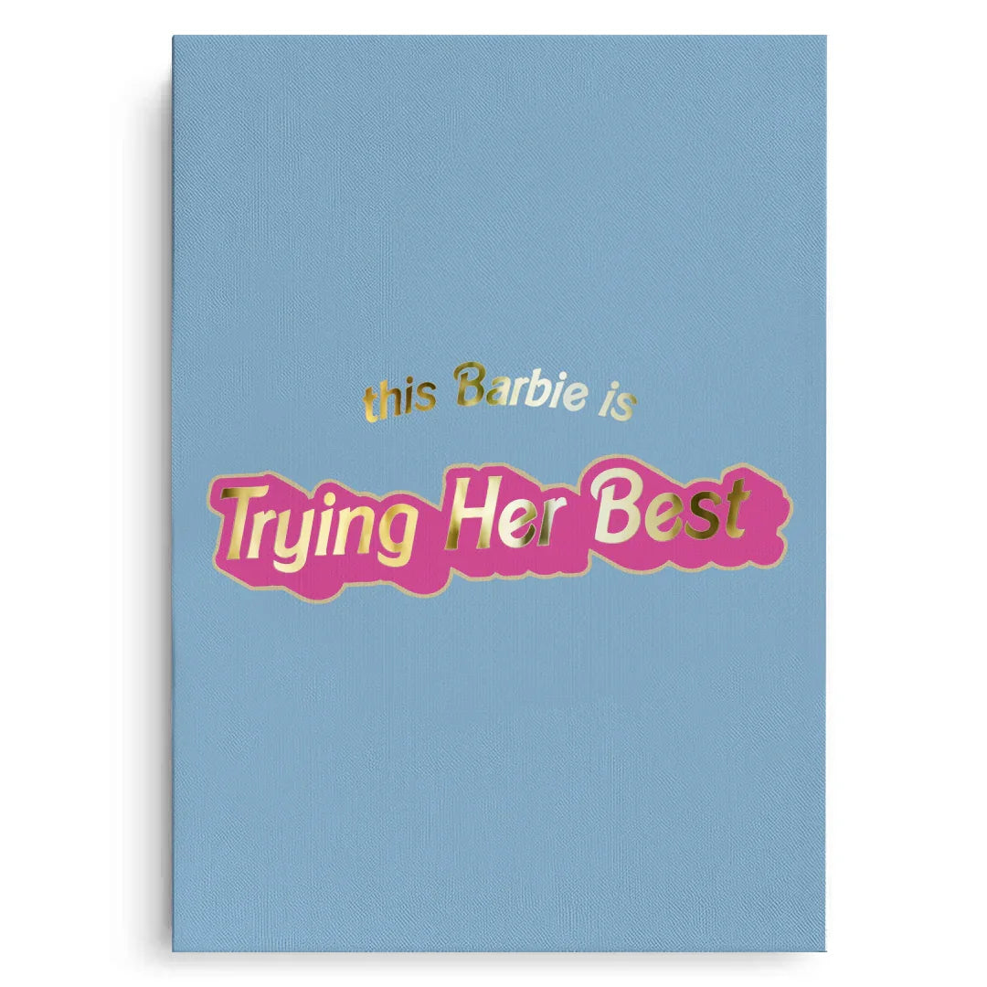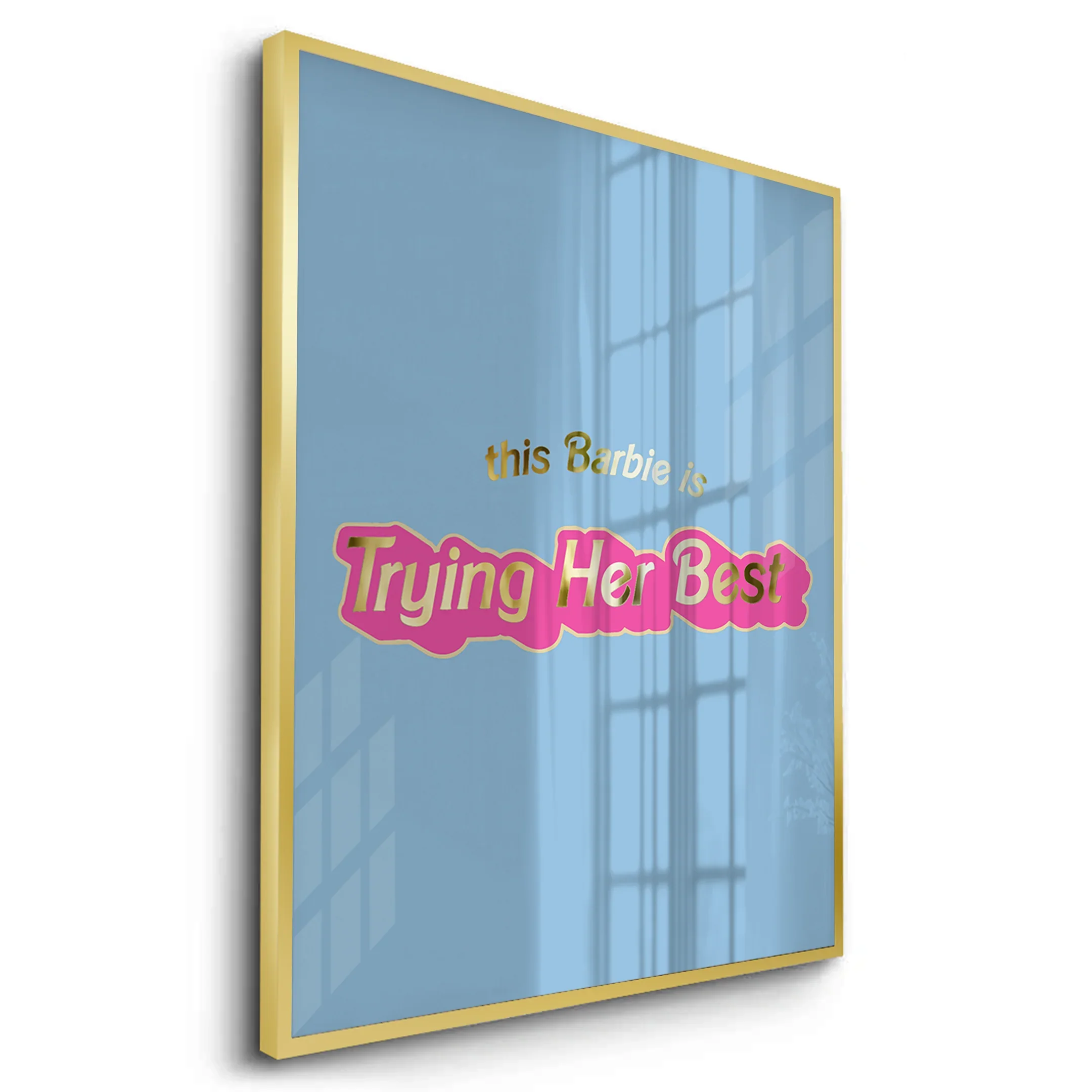 This artwork is for the girls doing their best — one imperfect day at a time. With gold foiled detail and playful Barbie-inspired typography, it brings warmth to vanities, dressing rooms, dorms, or self-love corners.