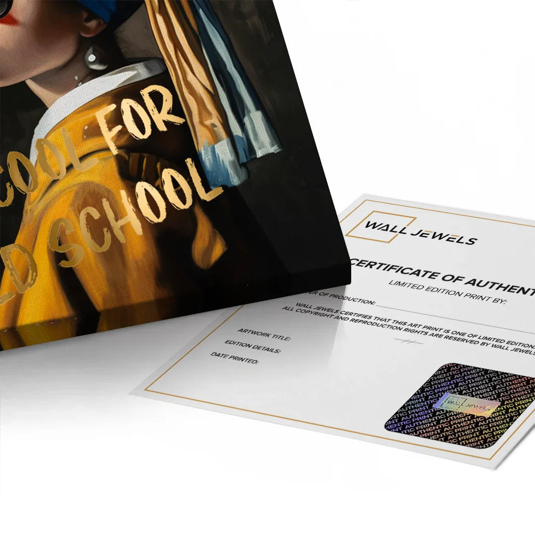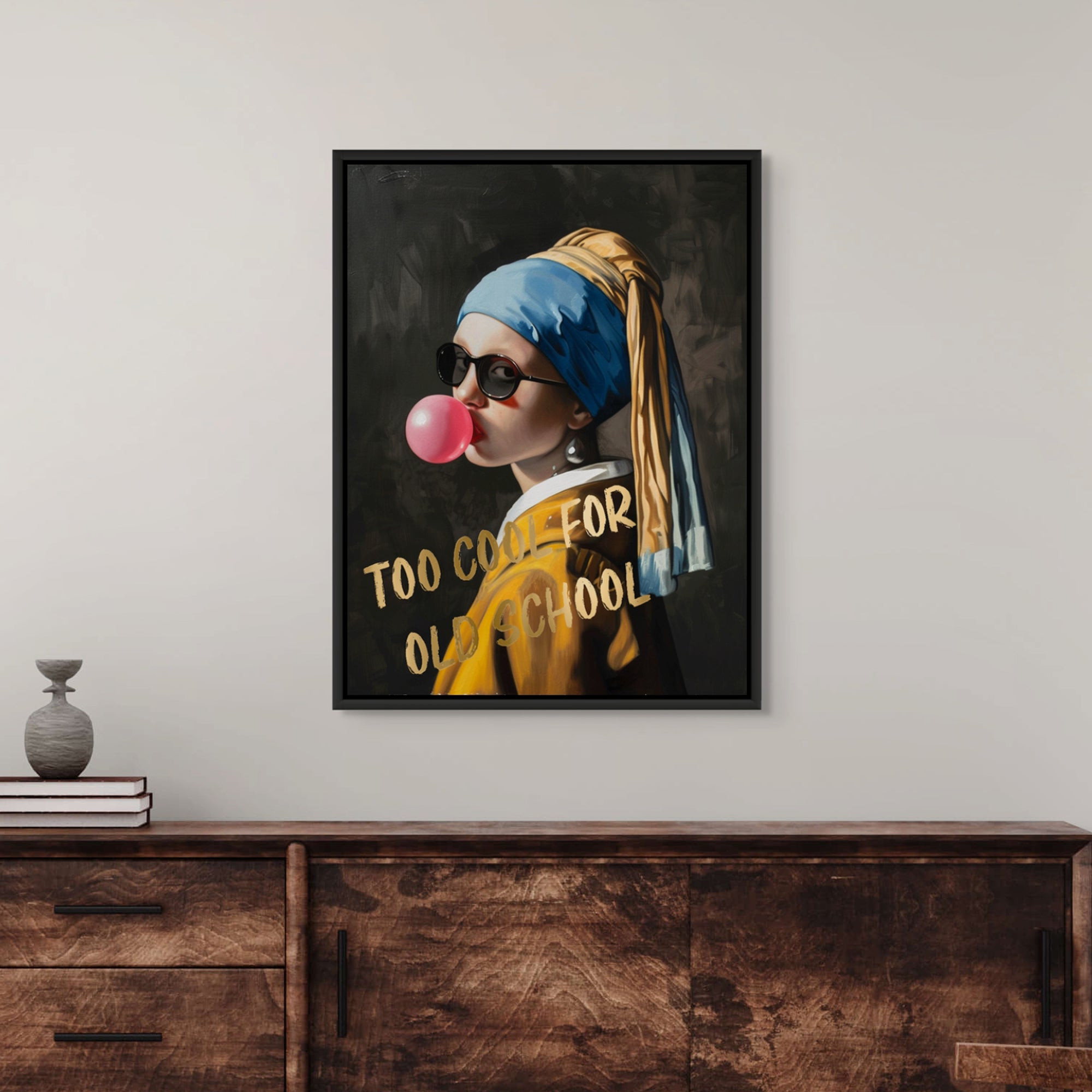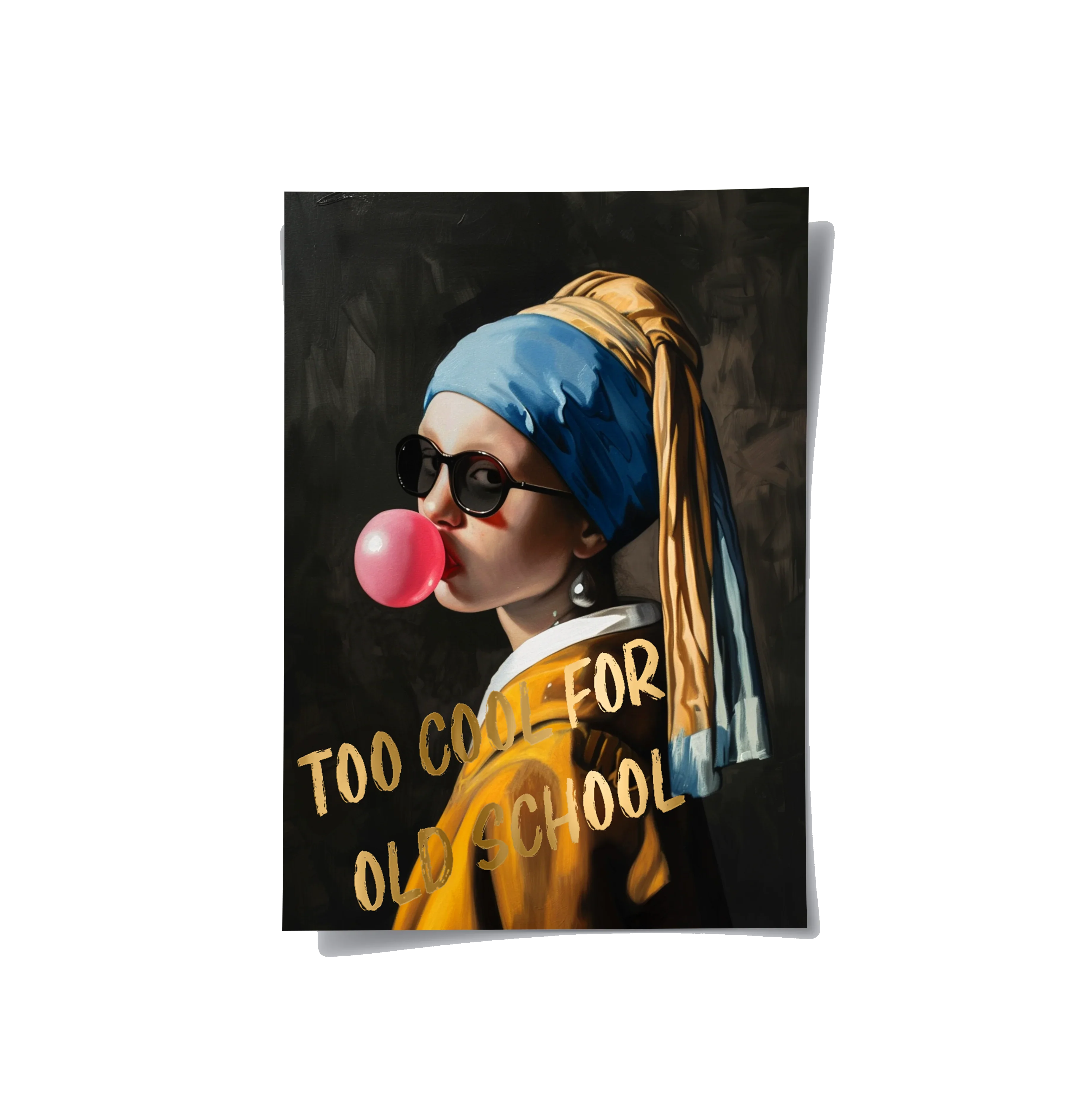 Reimagine a classic with this playful pop art featuring the iconic "Girl with the Pearl Earring" in a modern twist with metallic gold leaf foil. A cool, contemporary interpretation of a timeless masterpiece.