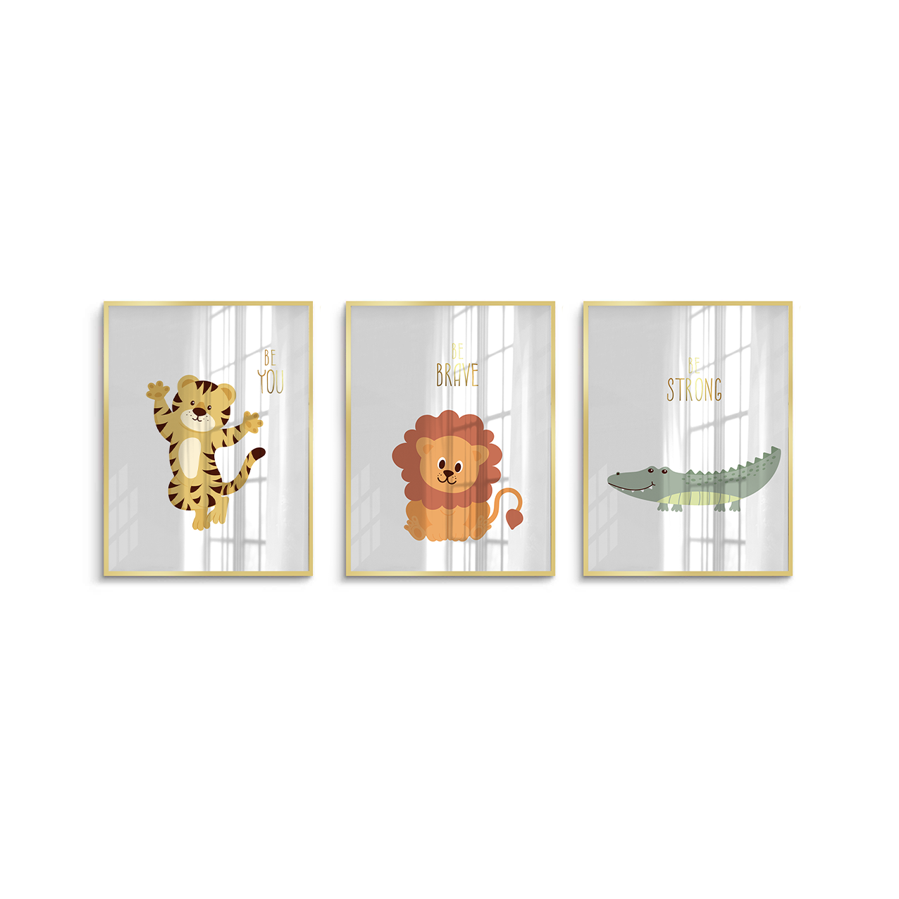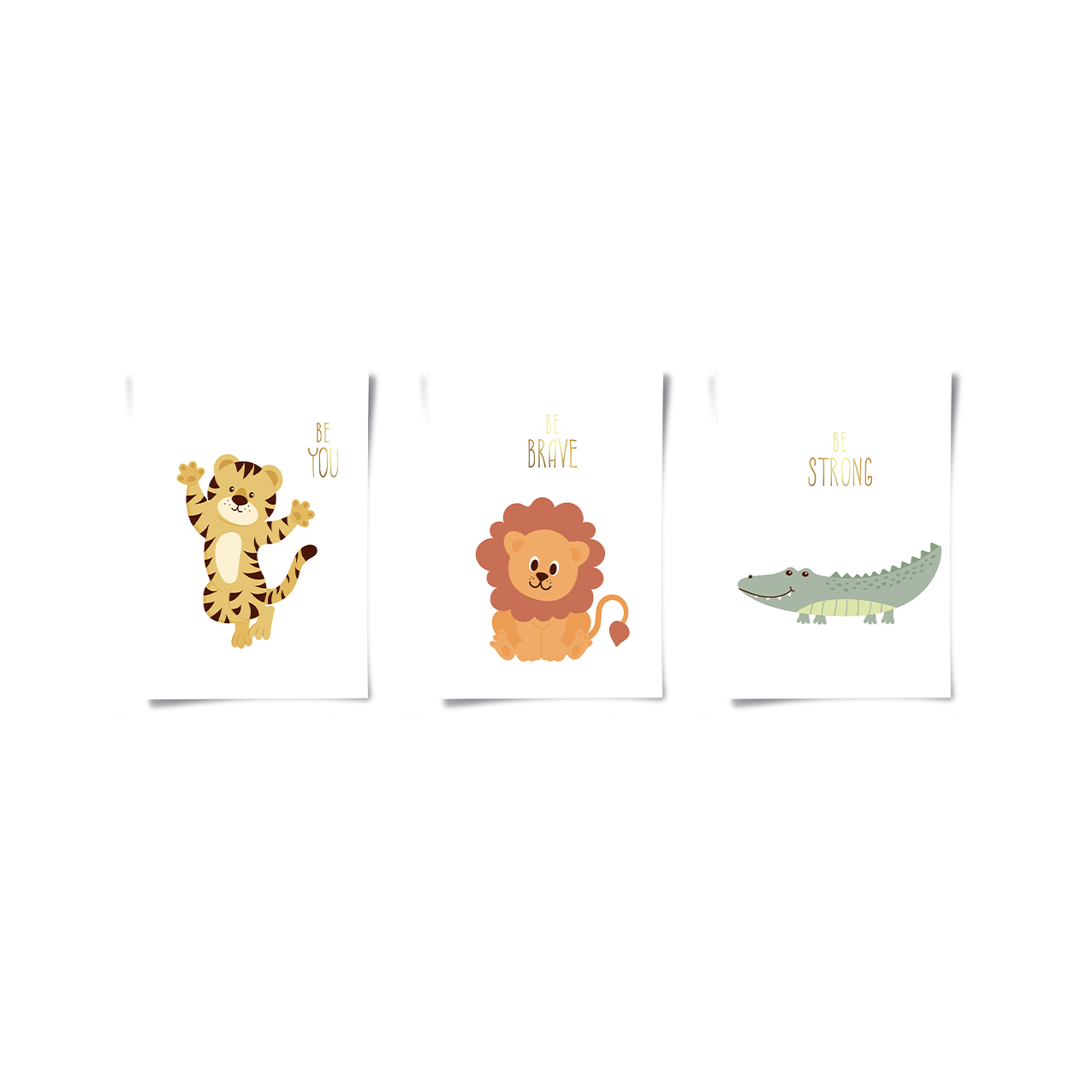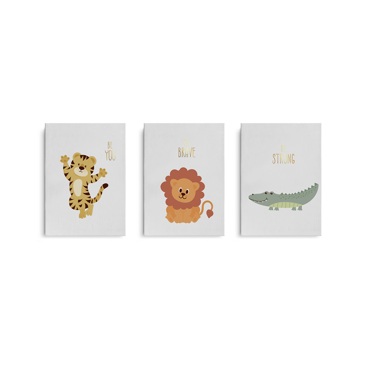 This empowering gold foiled kids’ art set features playful jungle animals paired with affirmations — Be You, Be Brave, Be Strong. The shimmering gold foil details add positivity and courage, making it perfect for nurseries, playrooms, or children’s bedrooms.