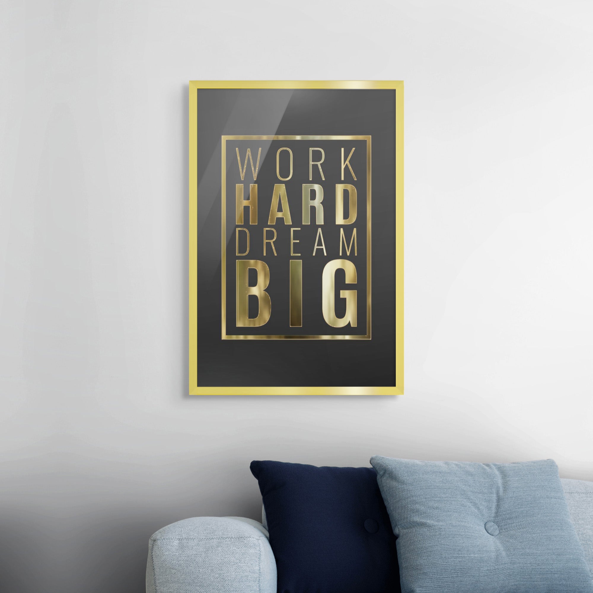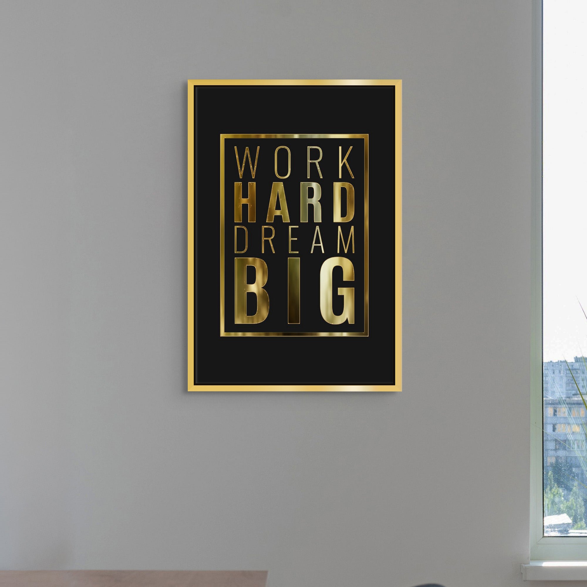 Bold and empowering, this gold-foiled artwork delivers a timeless message—“Work Hard, Dream Big.” Perfect for home offices, studios, or creative workspaces, it inspires ambition and perseverance with luxe flair and motivational elegance.