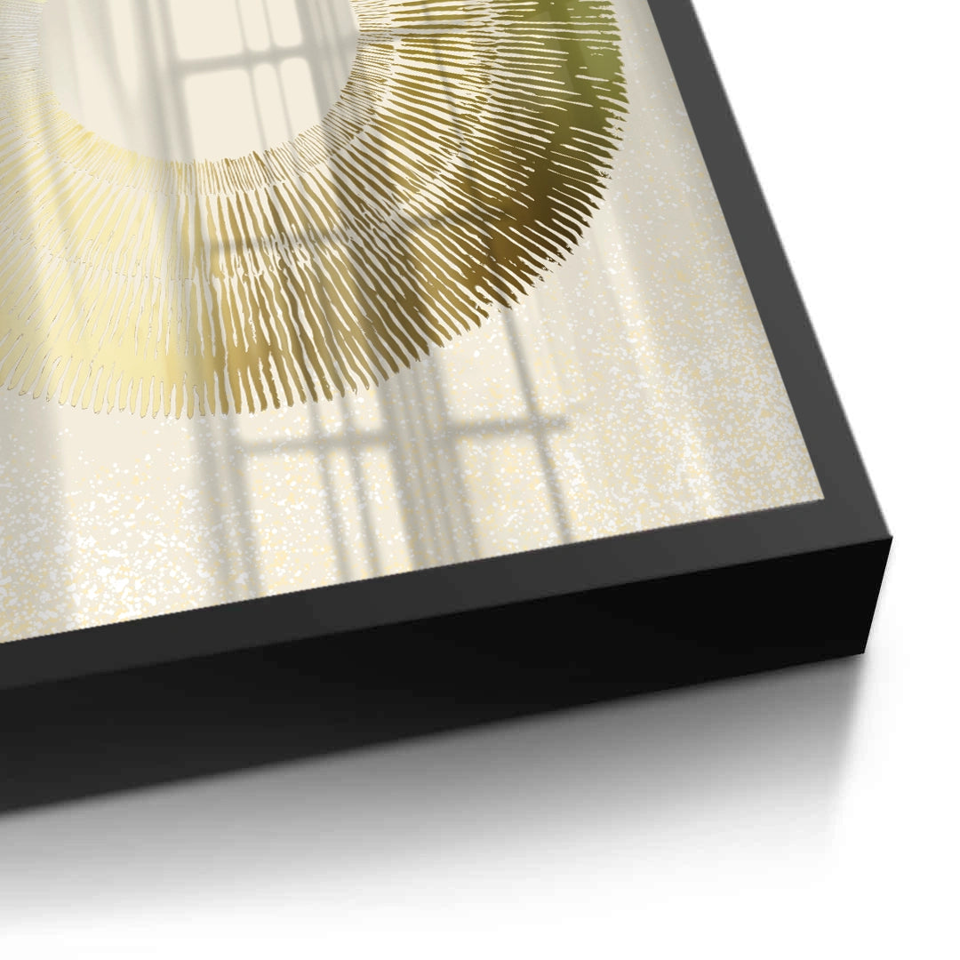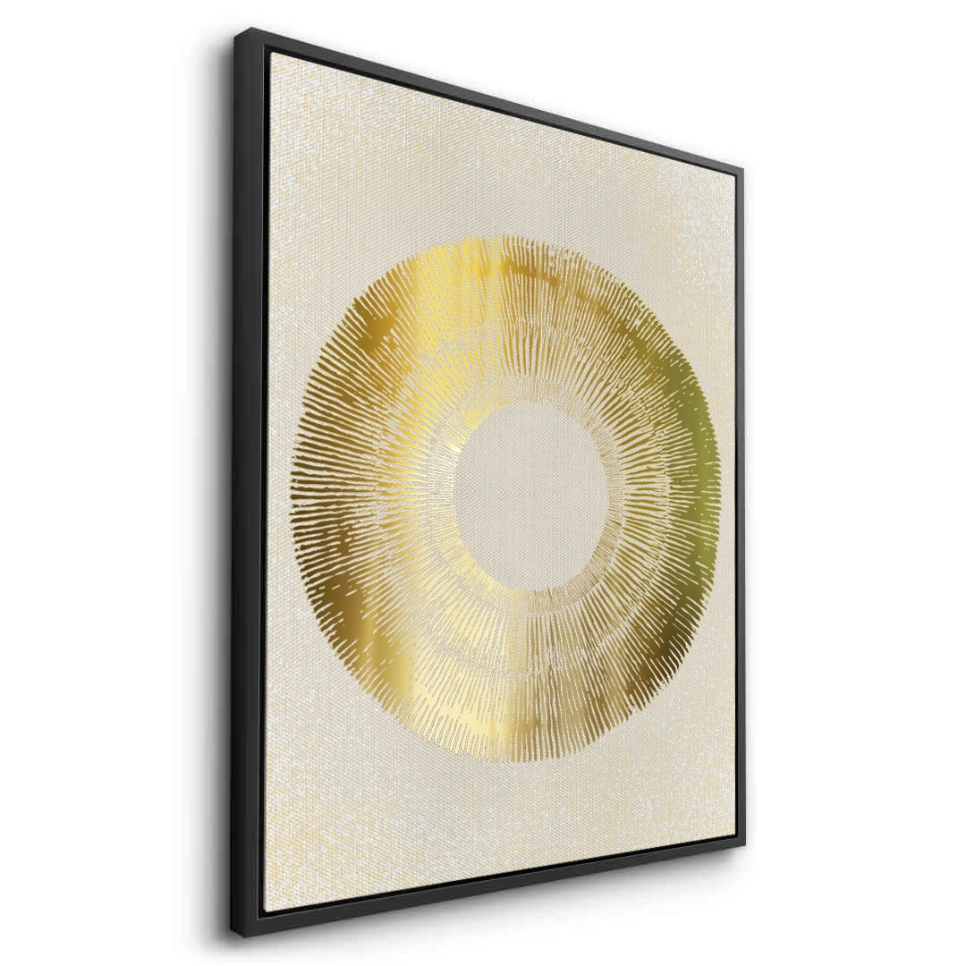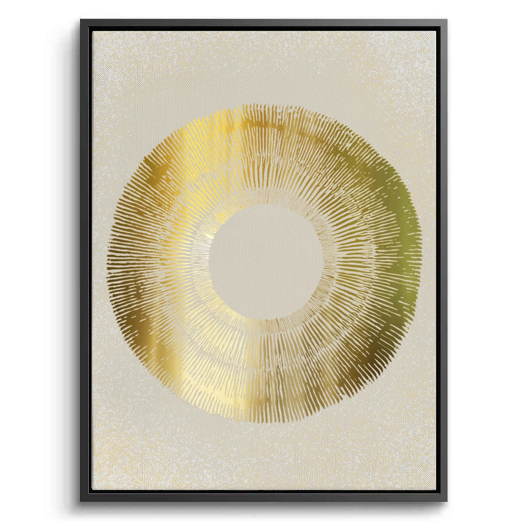 Halo features a radiant circular form built from fine gold foiled strokes, creating a sense of quiet energy and focus. Its luminous simplicity makes it well suited for living rooms, bedrooms, meditation spaces, and modern interiors.
