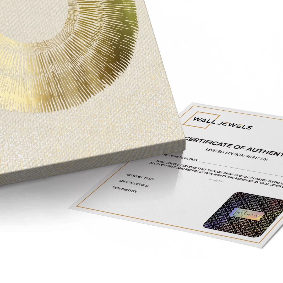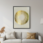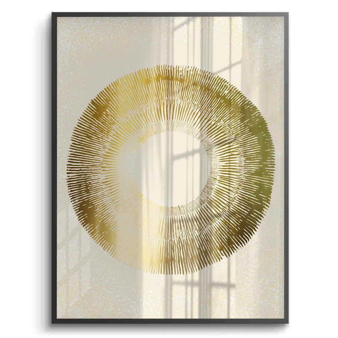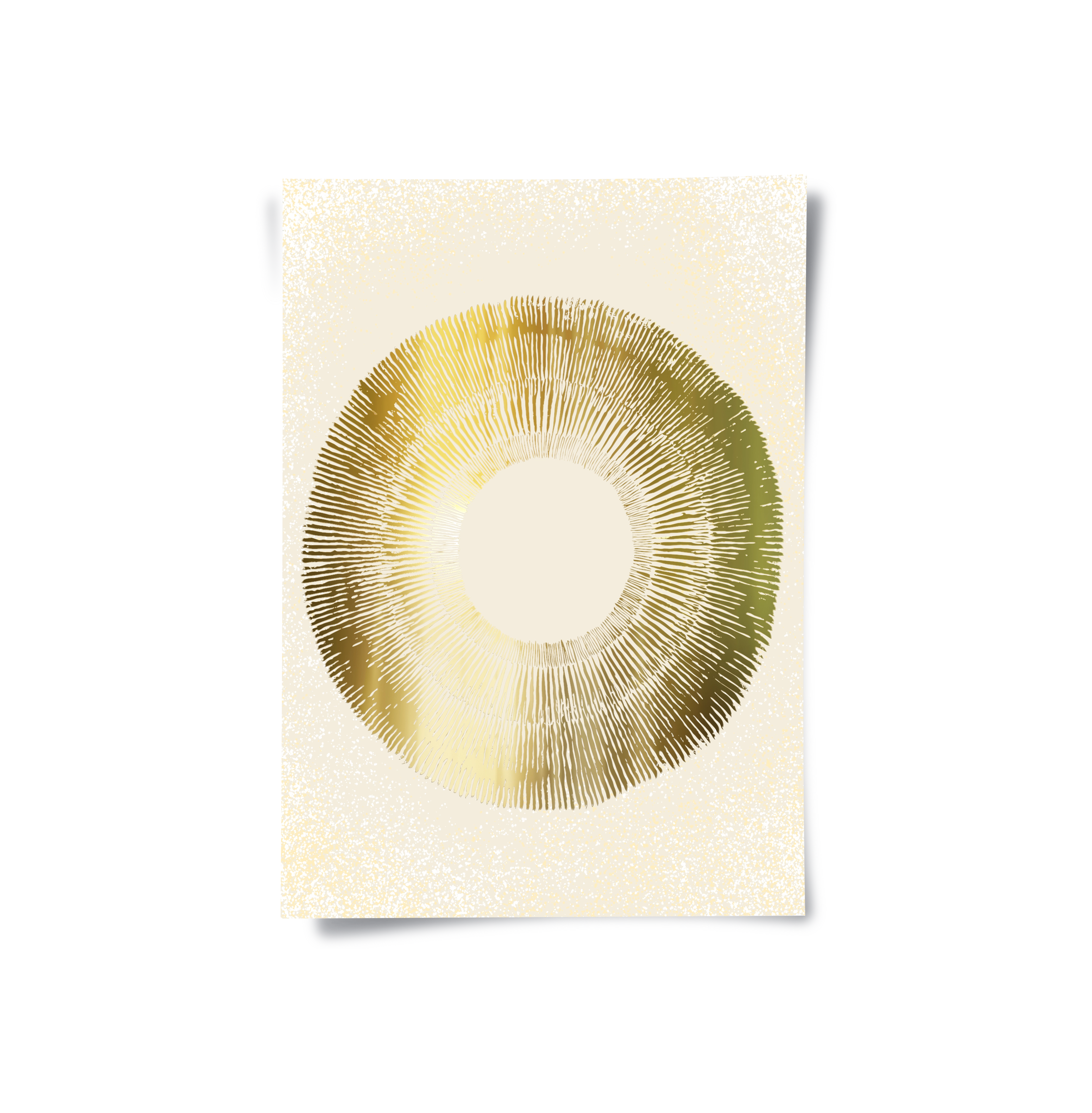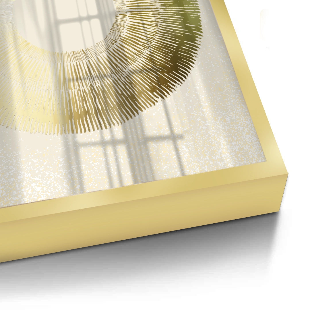 Halo features a radiant circular form built from fine gold foiled strokes, creating a sense of quiet energy and focus. Its luminous simplicity makes it well suited for living rooms, bedrooms, meditation spaces, and modern interiors.