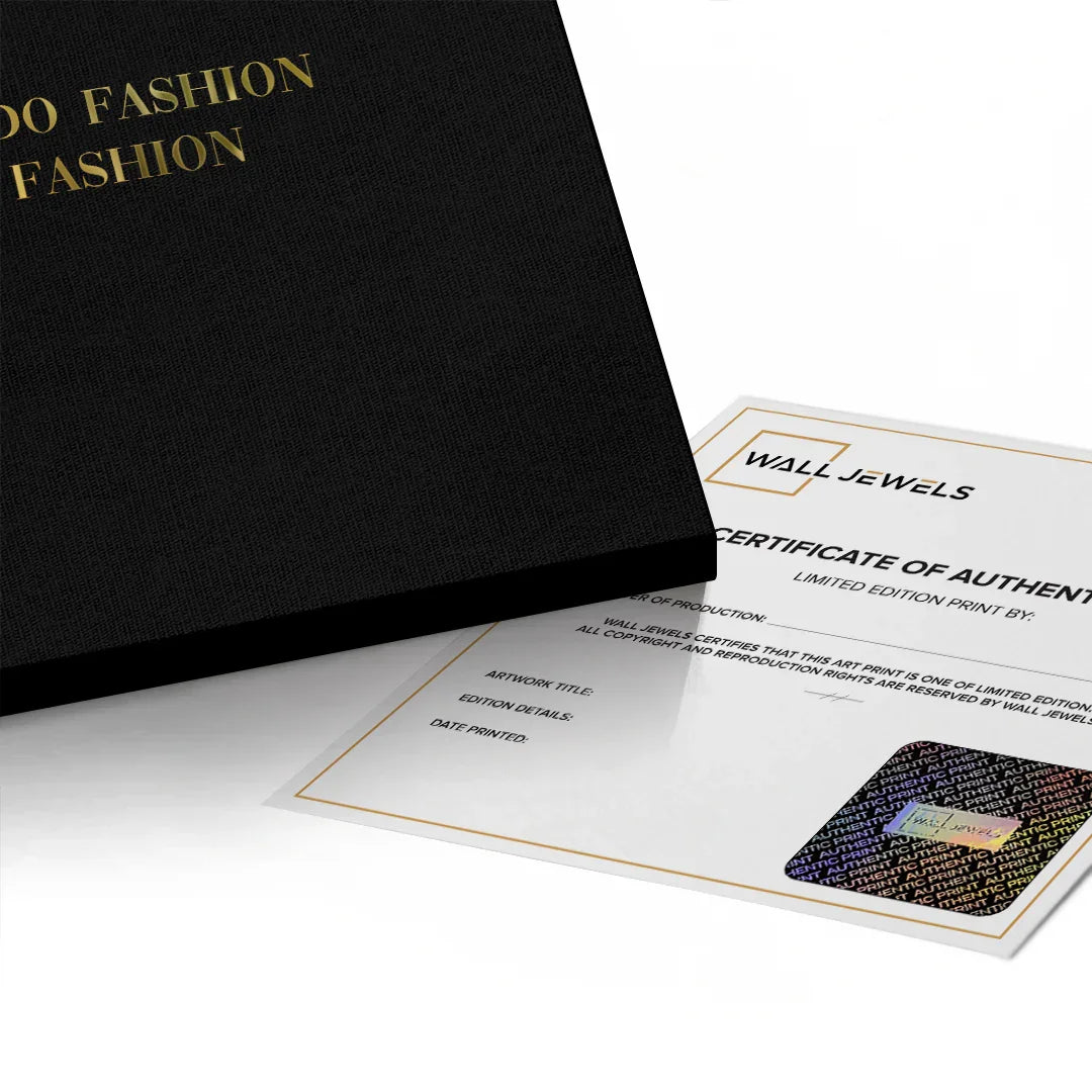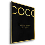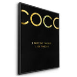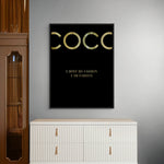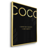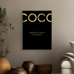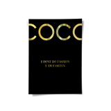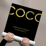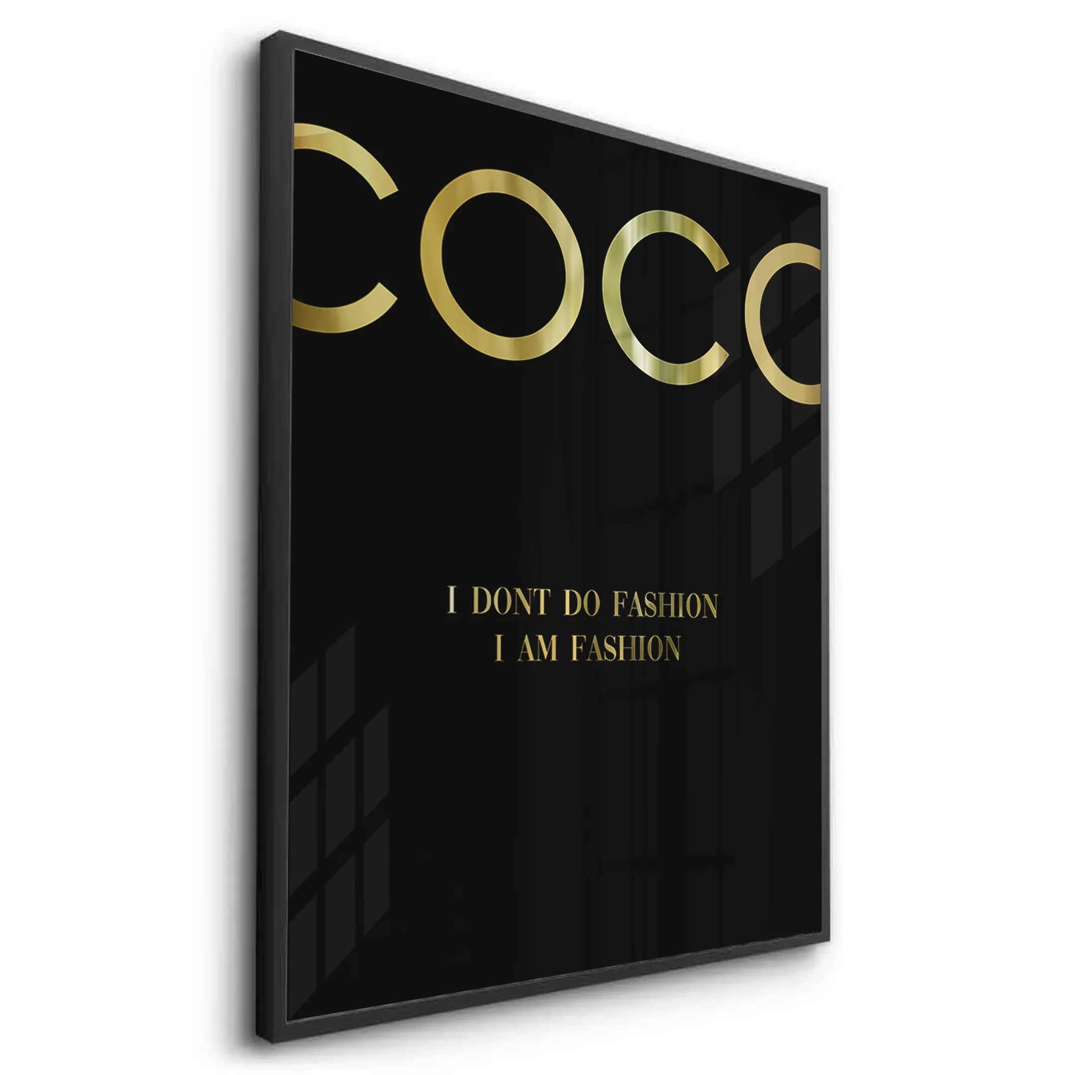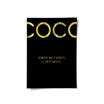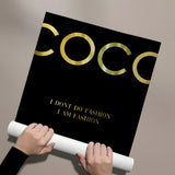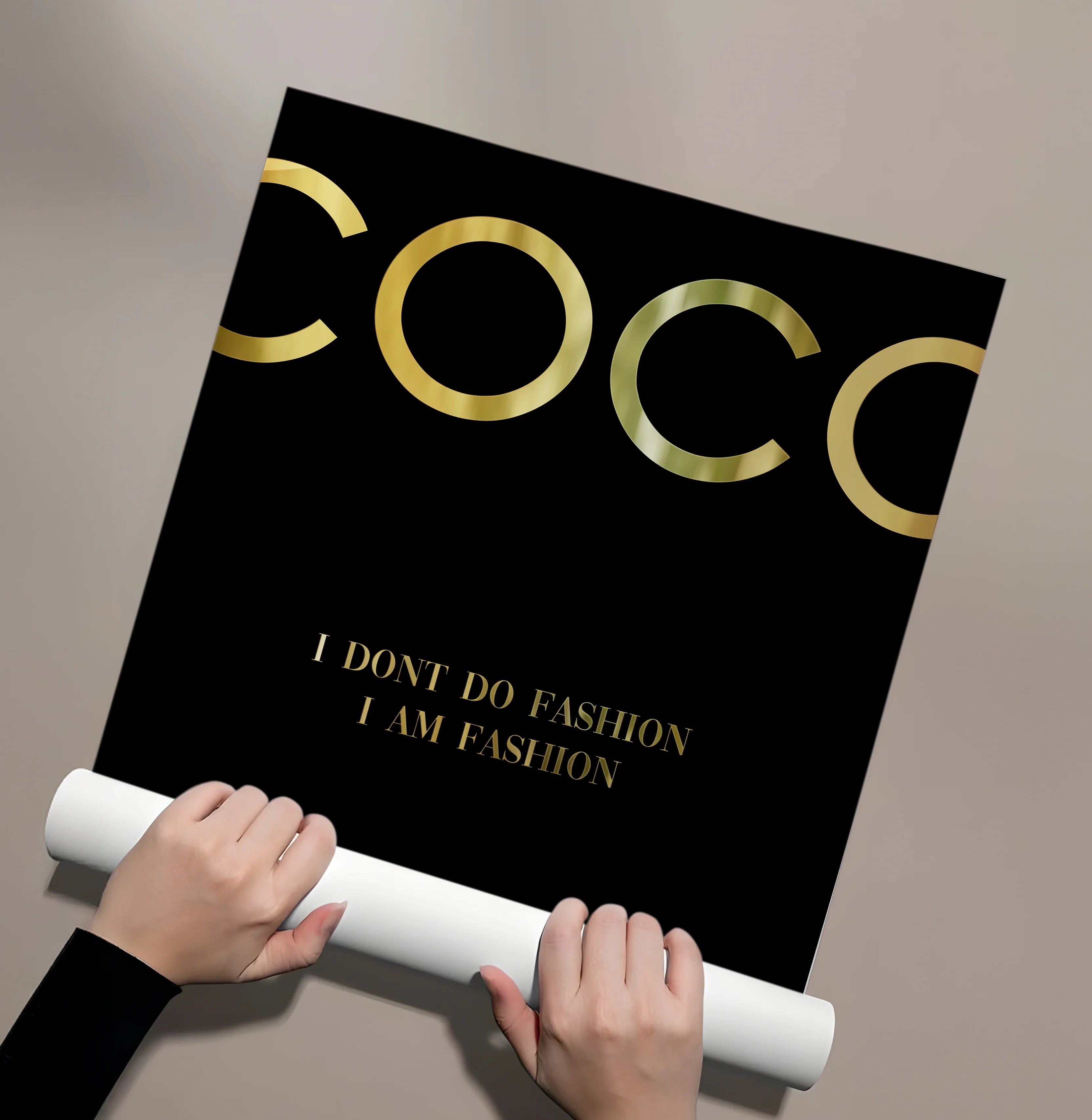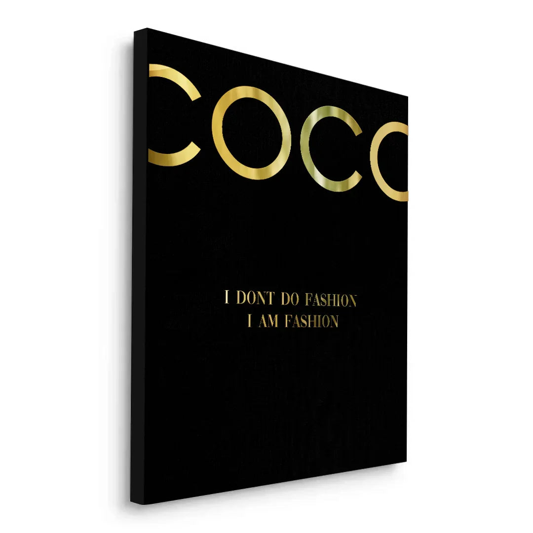 A bold and empowering artwork showcasing the iconic quote “I don’t do fashion, I am fashion” in gold foil against a deep black backdrop. Ideal for fashion lovers who live, breathe, and embody timeless style.