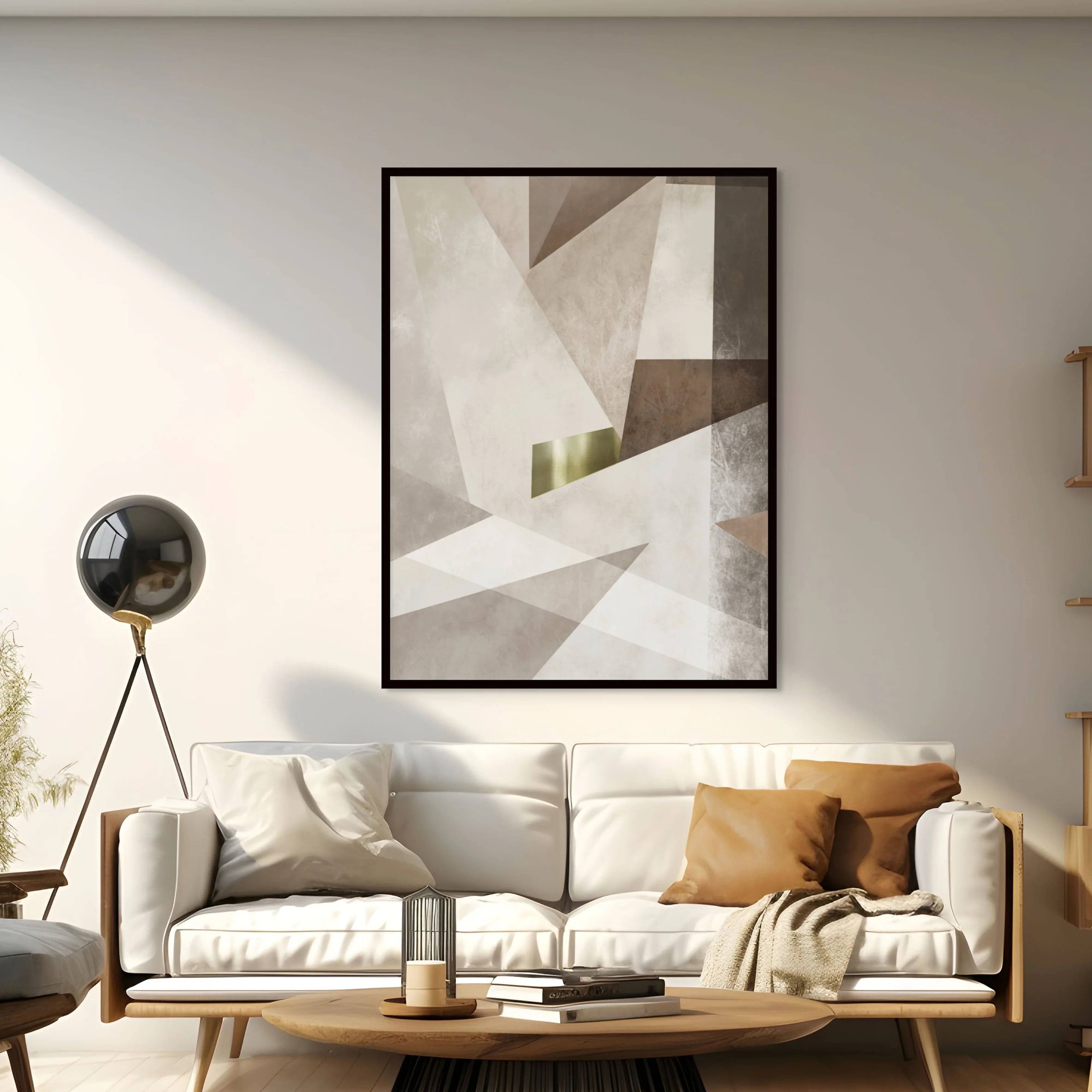 An abstract study in earth tones, Clay Fragments layers shades of beige, taupe, and brown with a gold-foiled highlight. Inspired by weathered surfaces and broken forms, it adds grounded warmth to modern, neutral-toned interiors.