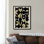 Celebrate form and structure with Golden Bauhaus, a bold geometric composition brought to life with real gold foiling. This striking artwork channels Bauhaus minimalism through sharp contrasts, clean shapes, and luxe metallic accents—perfect for contemporary, design-forward interiors.