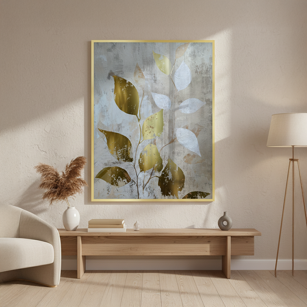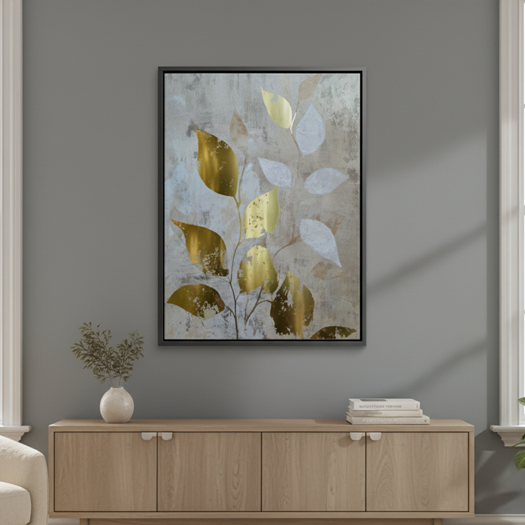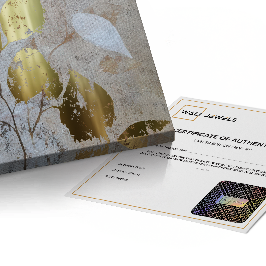 Kin no Ha, meaning Golden Leaves in Japanese, embodies nature’s quiet grace. Textured layers meet luminous gold foiling, creating an elegant balance of light and earth—perfect for serene, modern spaces inspired by wabi-sabi harmony and organic beauty.
