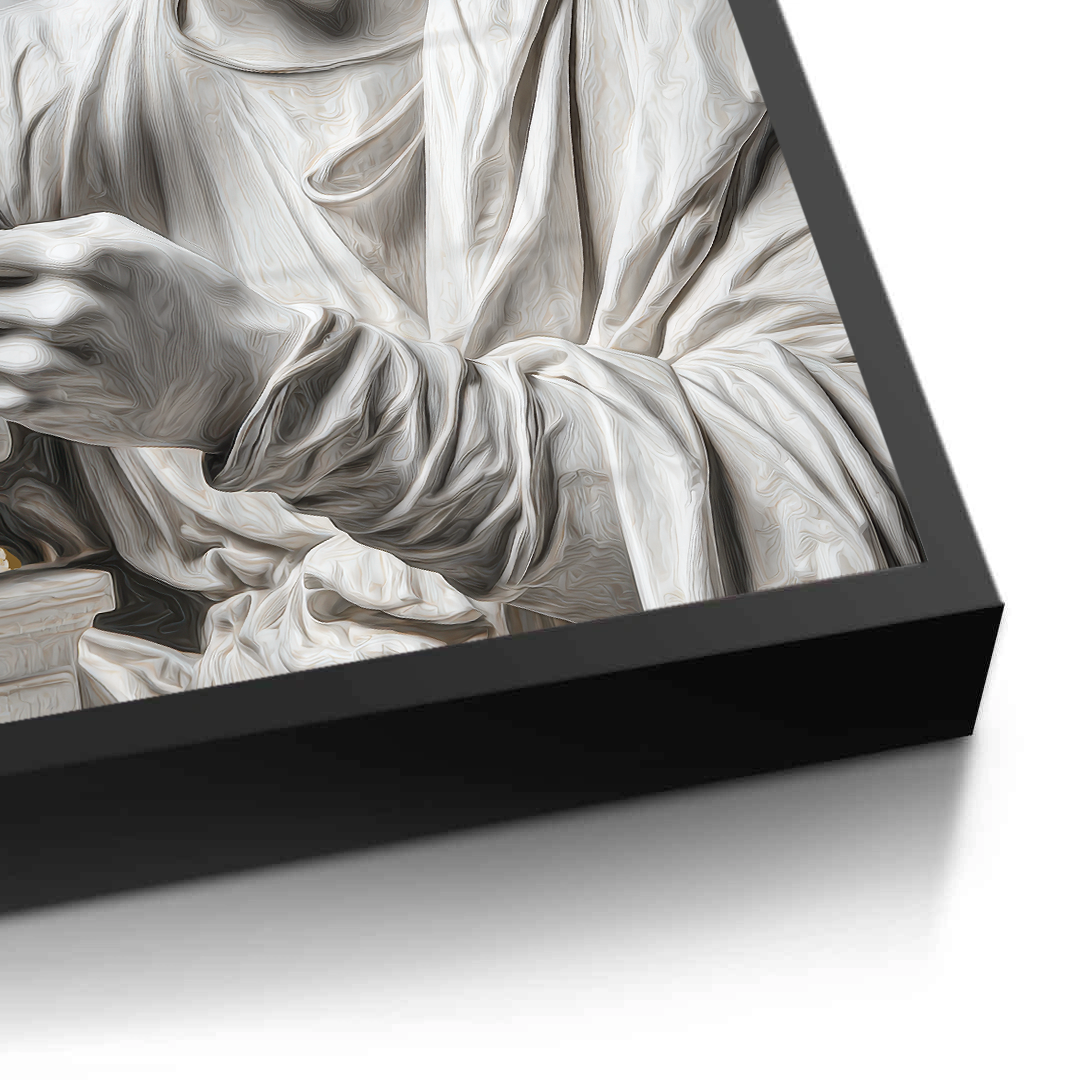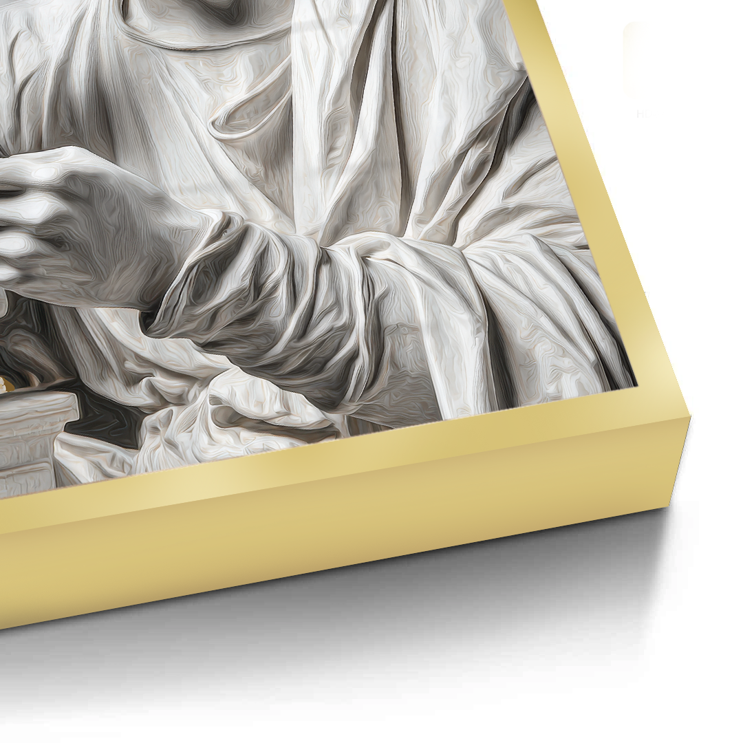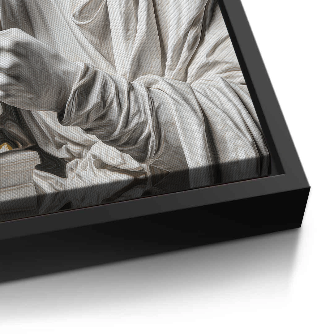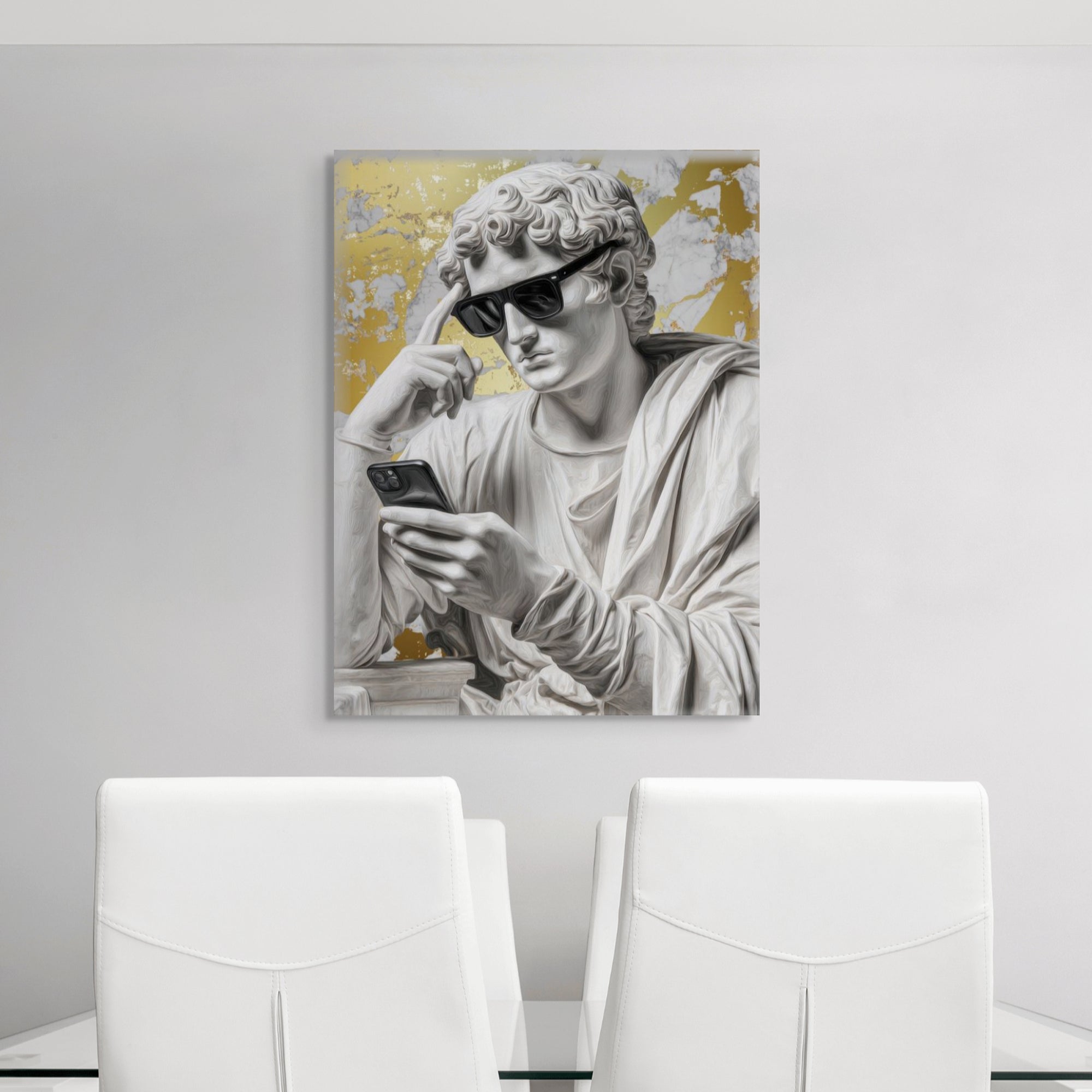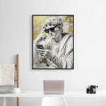 A contemporary reimagining of David, this artwork places the classical icon firmly in the digital age. Gold foiling highlights modern contrasts, creating a bold statement piece for interiors shaped by technology, culture, and the new era.